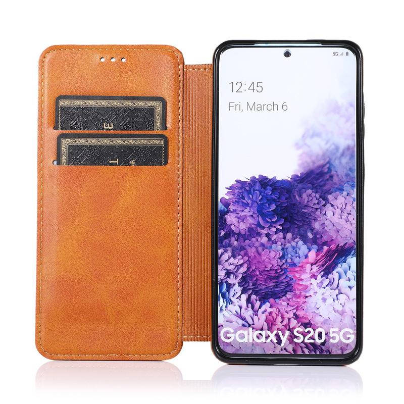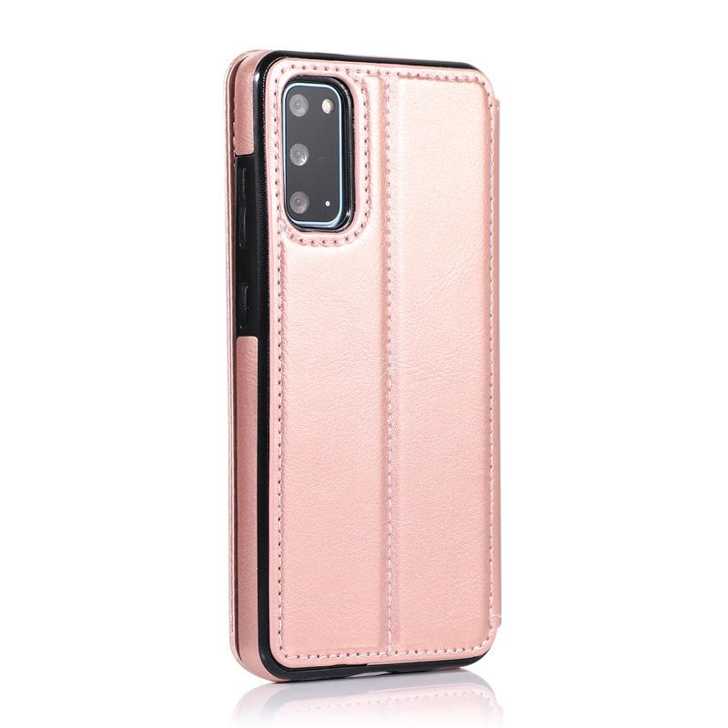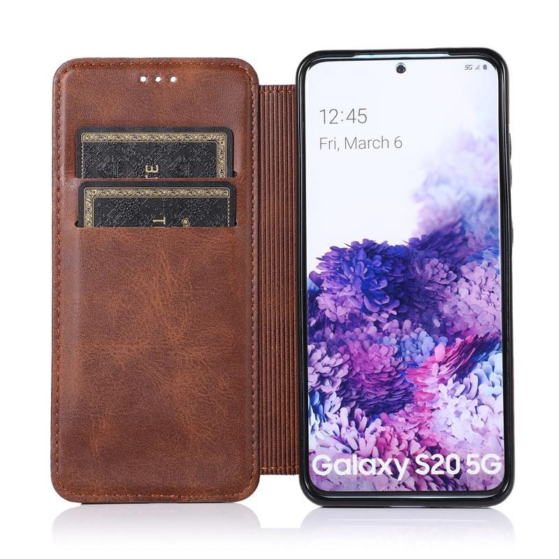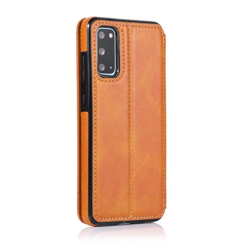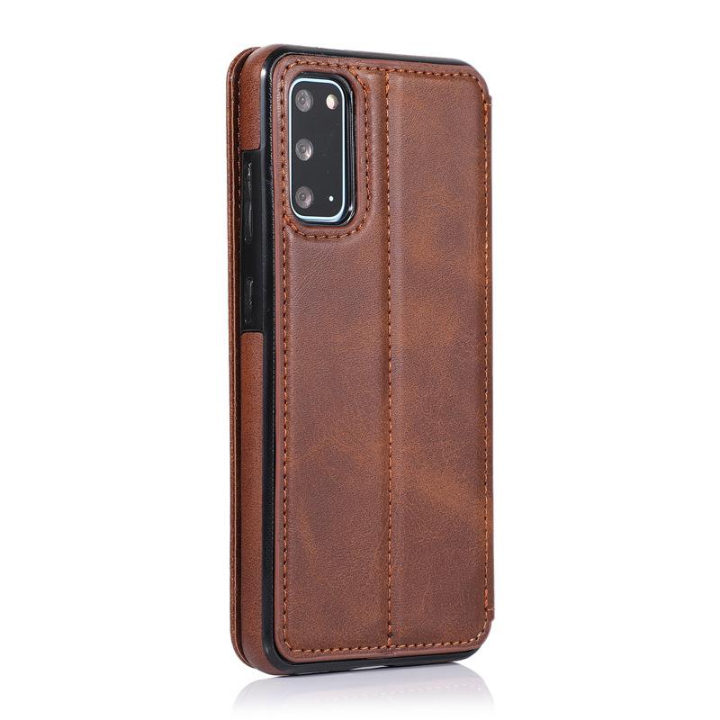 Funda para teléfono móvil Samsung S20 con ventosa magnética de piel de vaca pequeña, funda protectora con soporte para tarjeta abatible simple S20 Plus