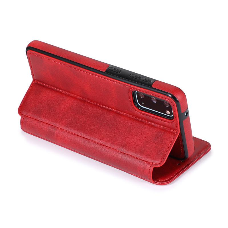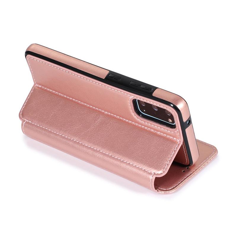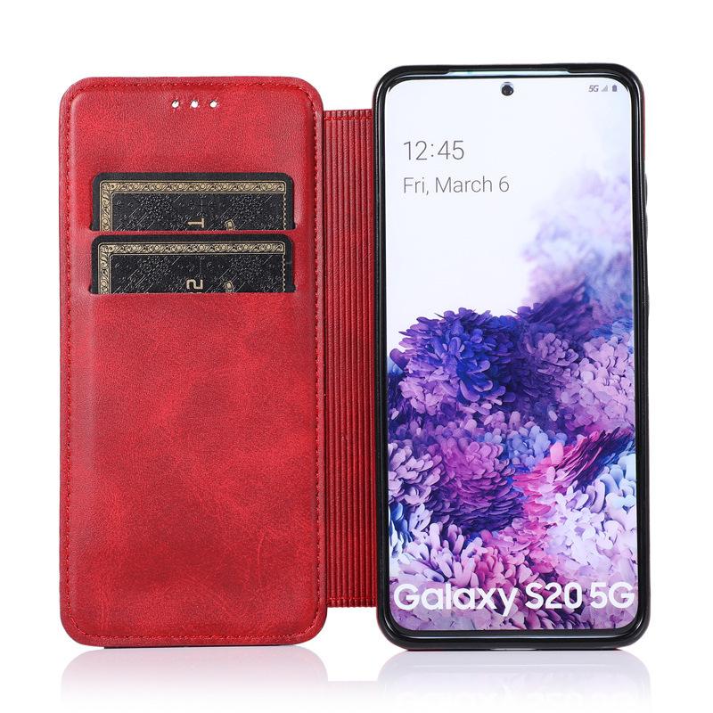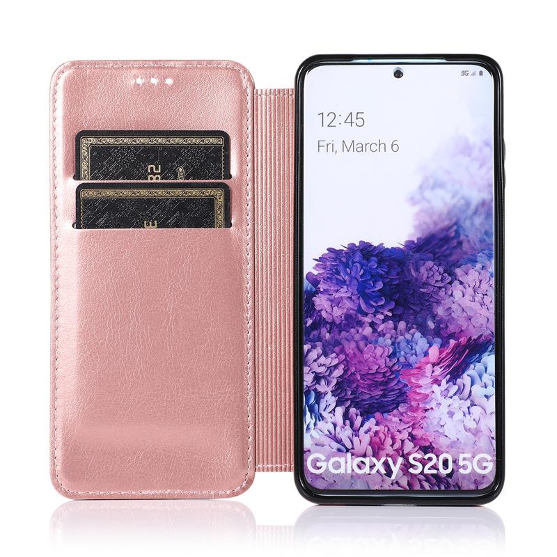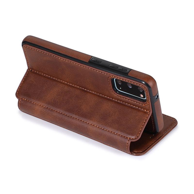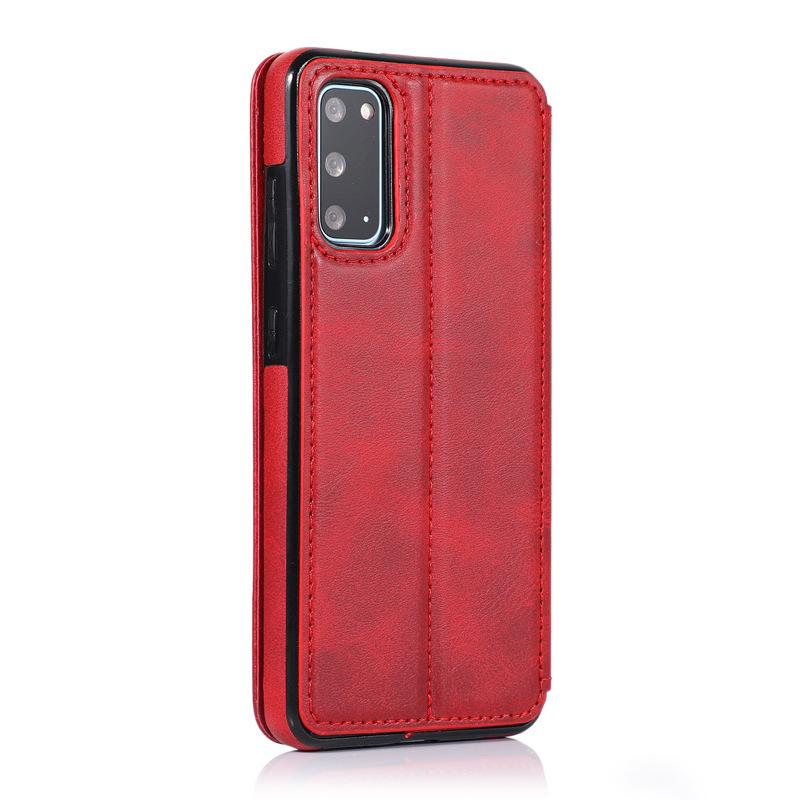 Funda para teléfono móvil Samsung S20 con ventosa magnética de piel de vaca pequeña, funda protectora con soporte para tarjeta abatible simple S20 Plus