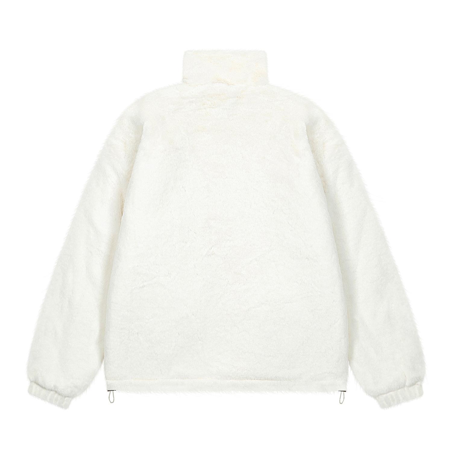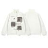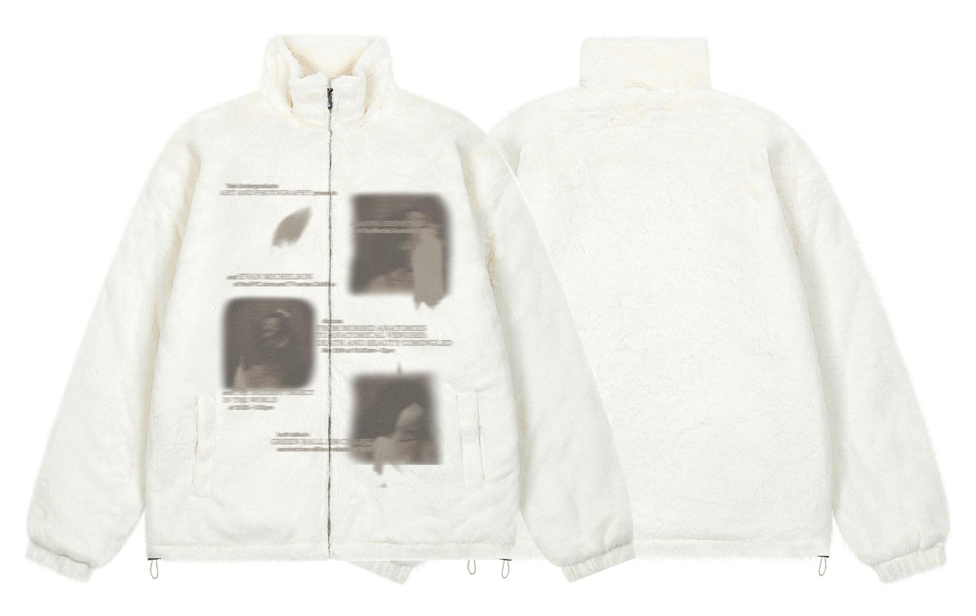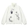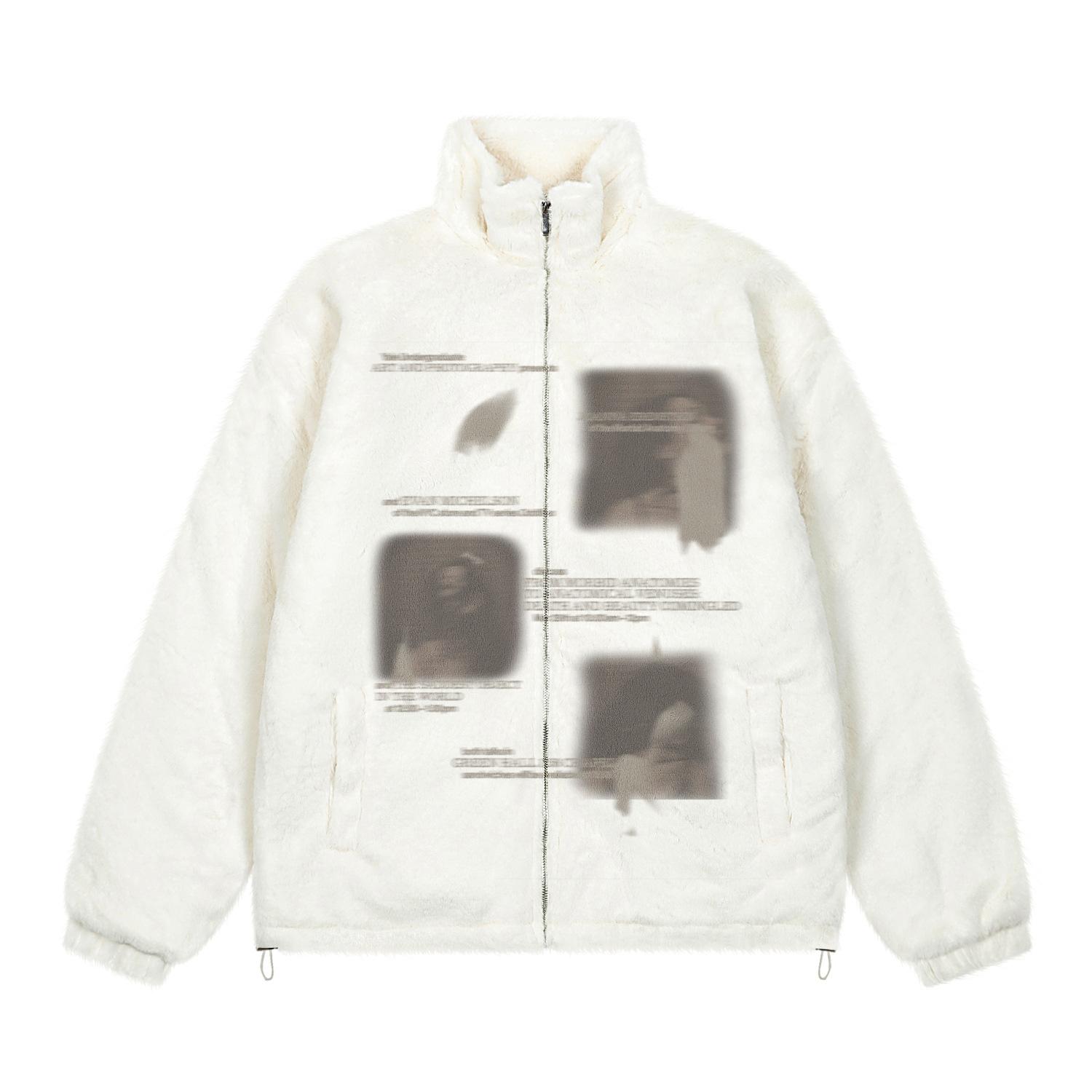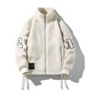 Chaqueta de lana de cordero con eslogan de silueta retro estilo americano para hombre y mujer, de invierno, holgada, combinable, con cuello vertical grueso, cálida y acolchada de algodón, a la moda.