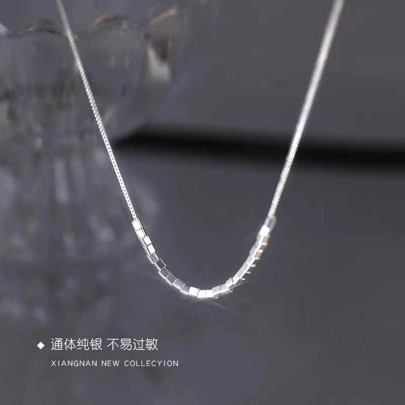 Collar cuadrado pequeño de plata esterlina s990 para mujer, diseño de nicho de verano, cadena de clavícula de plata rota geométrica de estilo frío simple.
