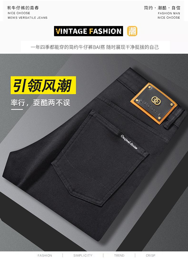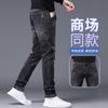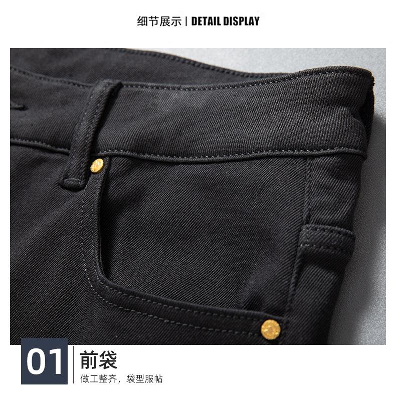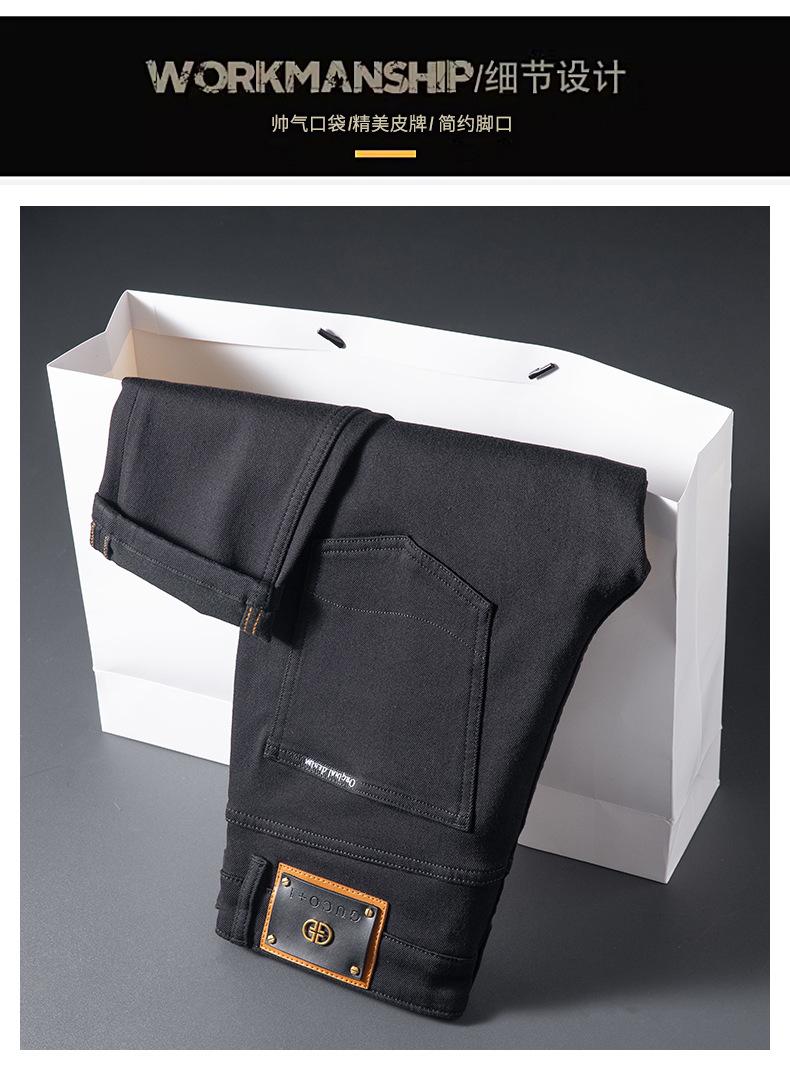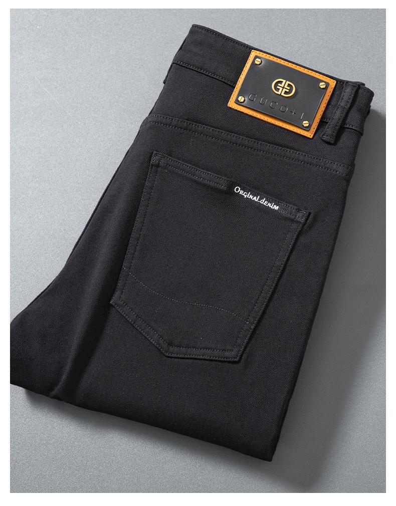 Jeans de Hombre Otoño e Invierno Nuevo Elástico Slim Pantalones Negros Slim Versión Europea Lujo Ligero Pequeño Recto Denim Suave