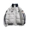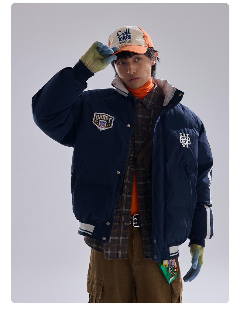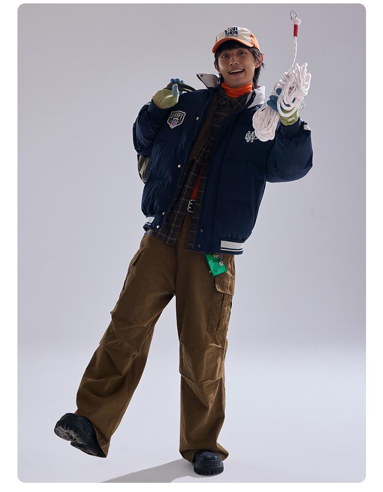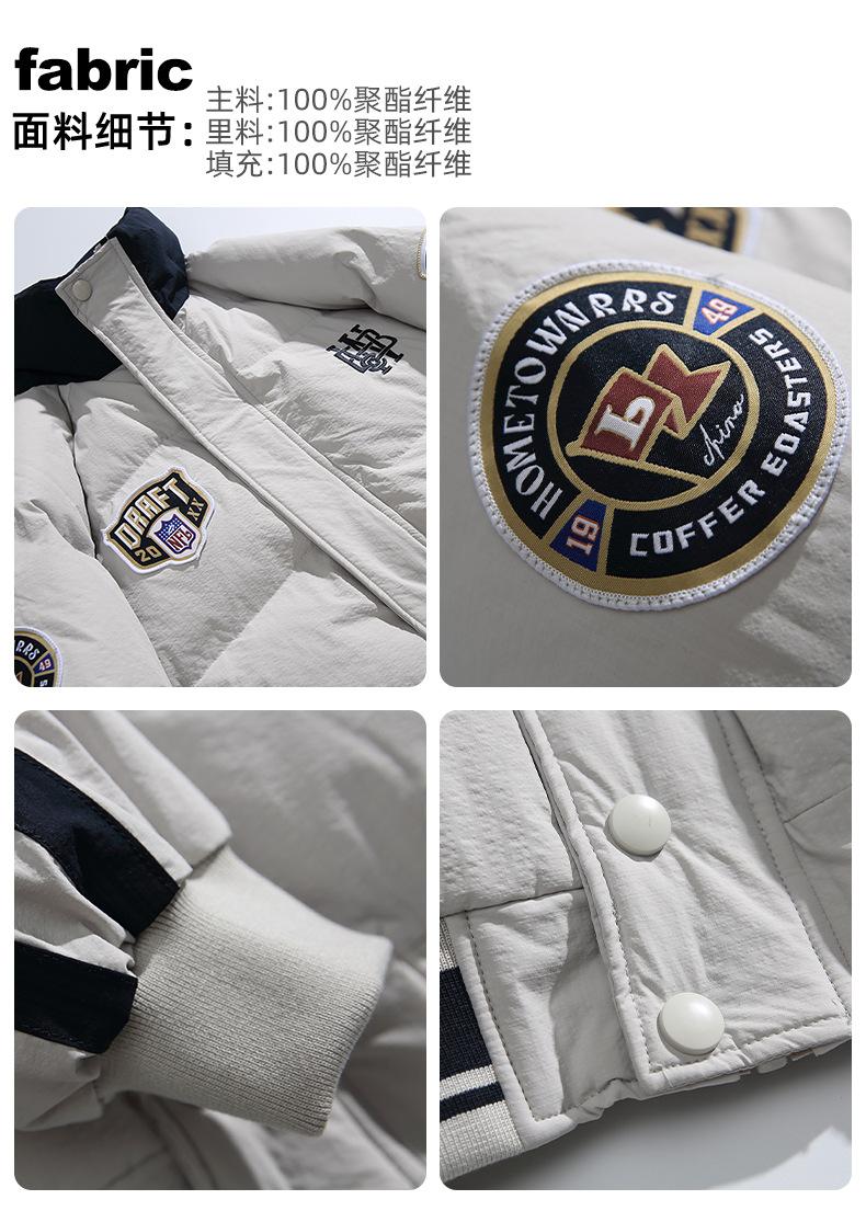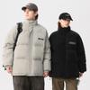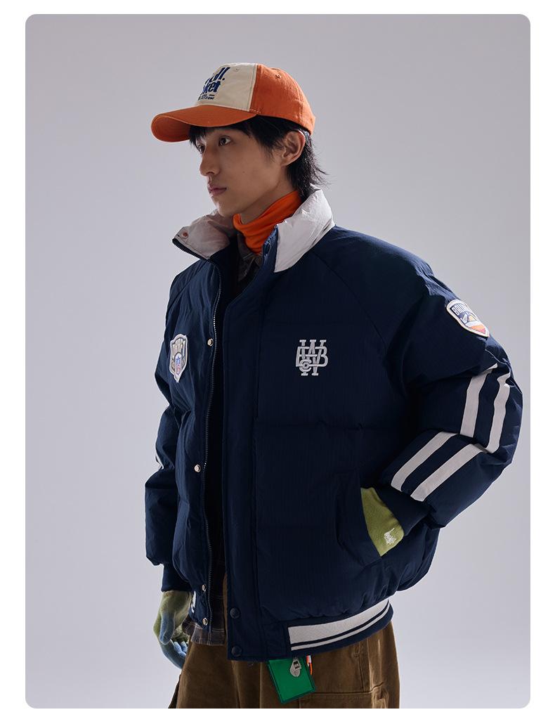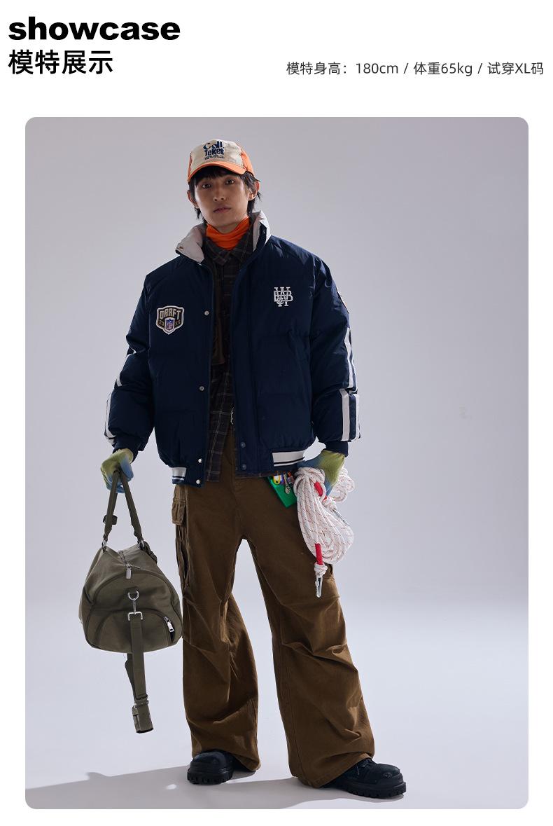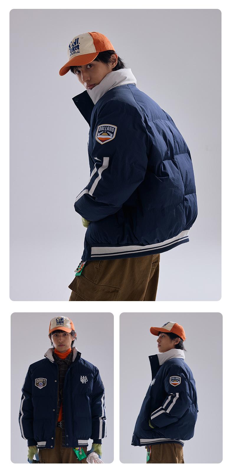 Chaqueta gruesa para hombre y mujer, de la marca japonesa Chaozhou, con diseño de calle principal, etiquetado con sentido del estilo y costuras verticales en el cuello, en colores contrastantes.