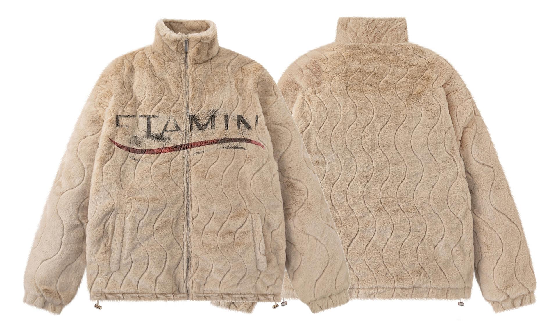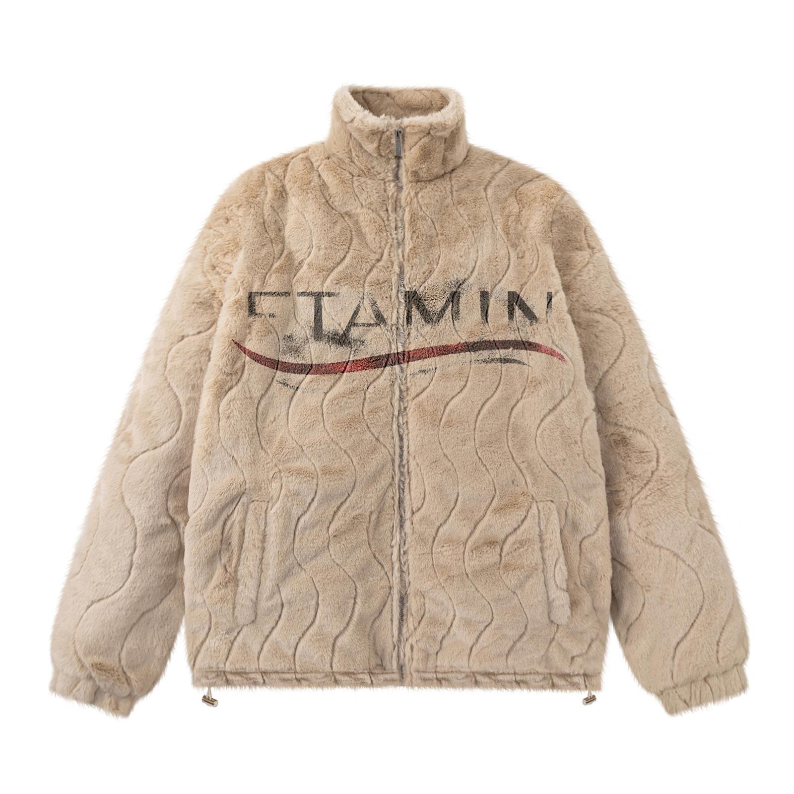 Chaqueta de Borreguito Estilo Americano de Marca Trendy con Estampado de Letras para Hombre y Mujer Otoño e Invierno 2024 oversize Combinable Ropa Acolchada de Algodón Cálida