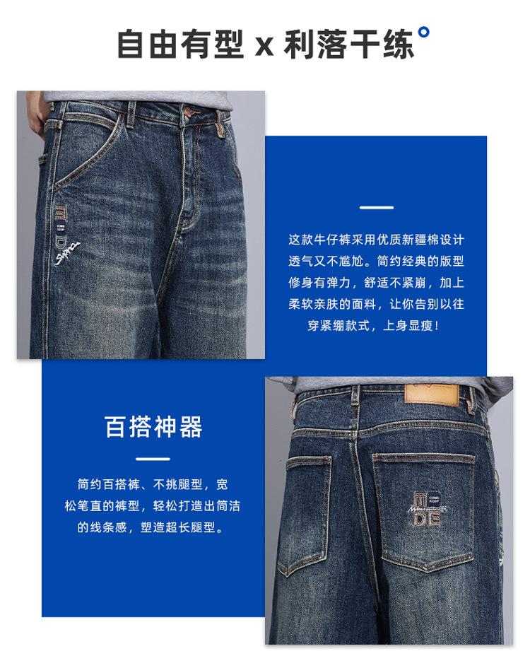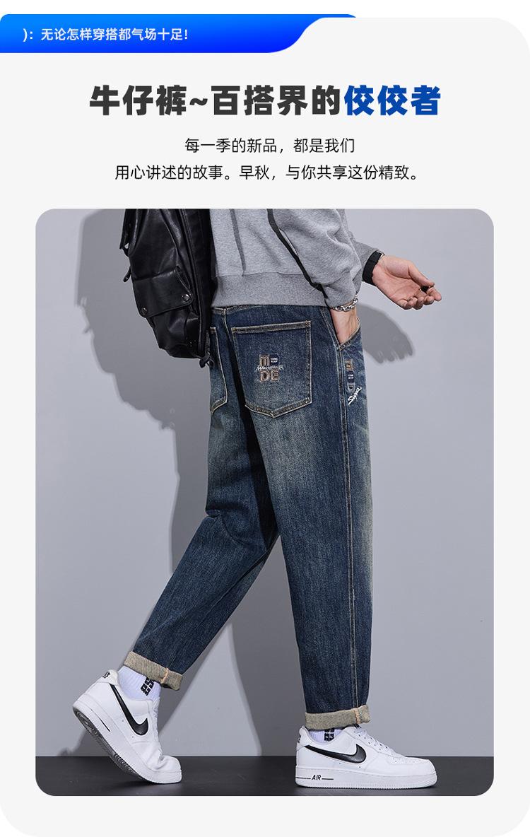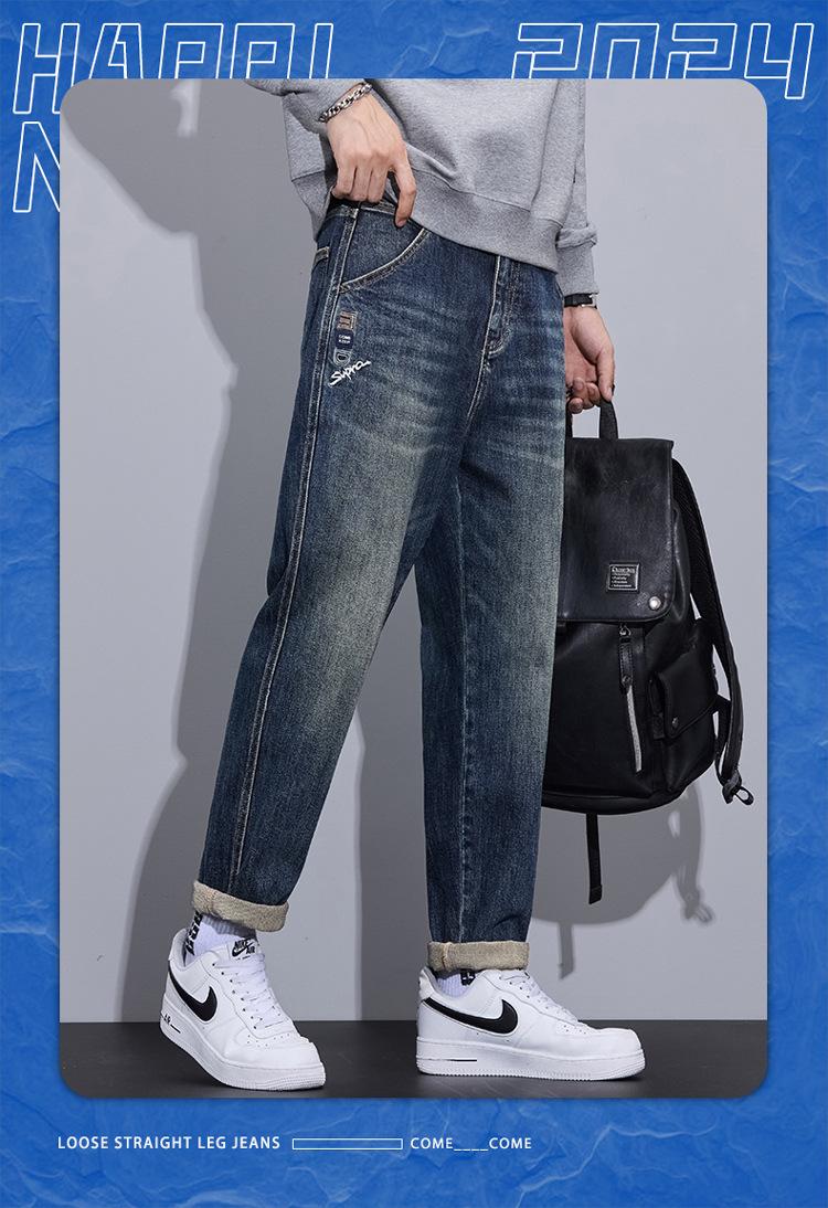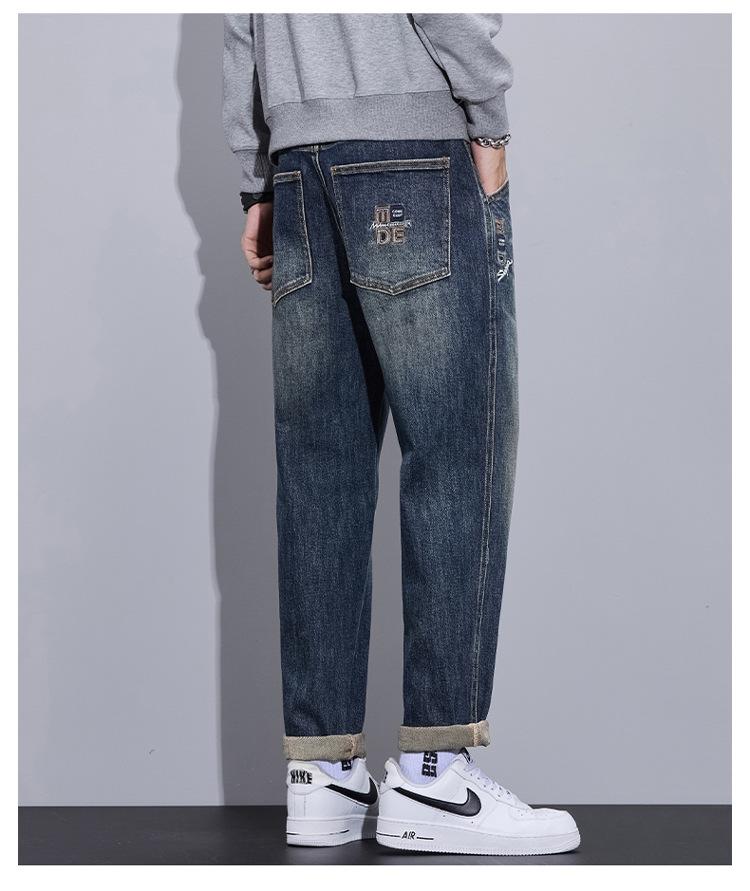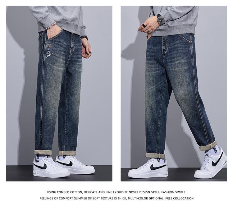 Pantalones vaqueros retro de alta gama para otoño e invierno, pantalones harén elásticos ajustados y rectos para hombre, pantalones de moda para adolescentes.