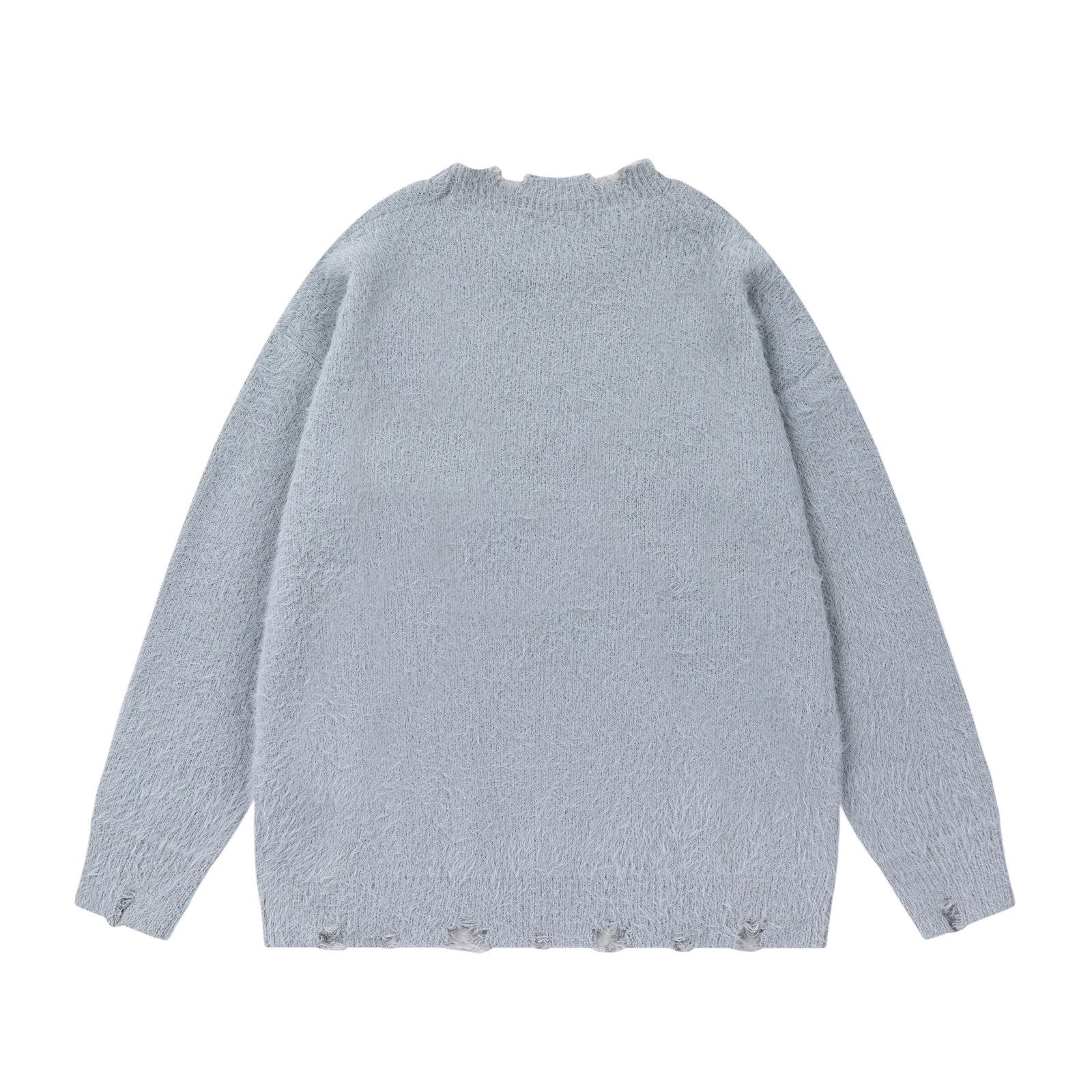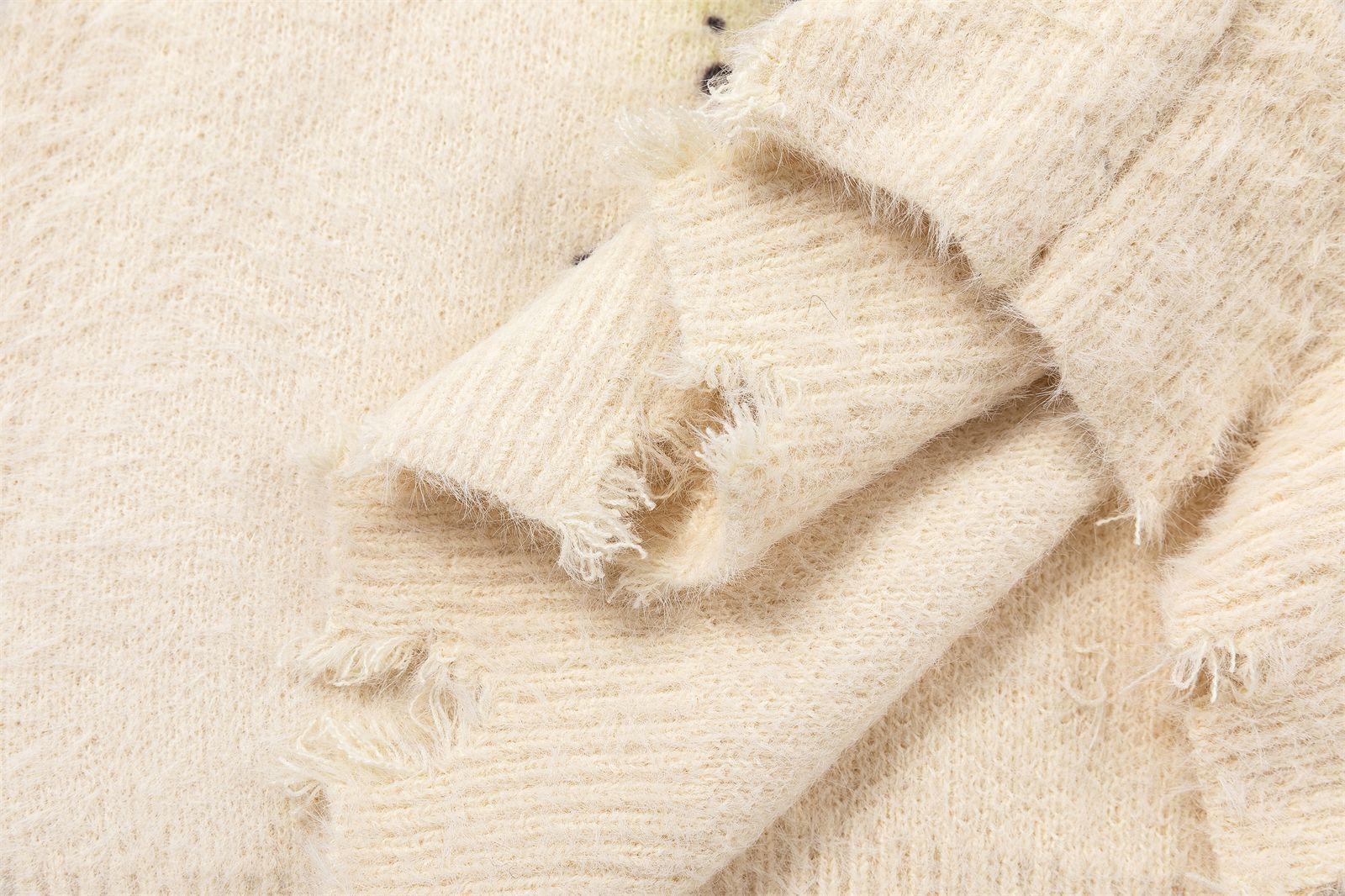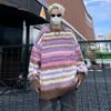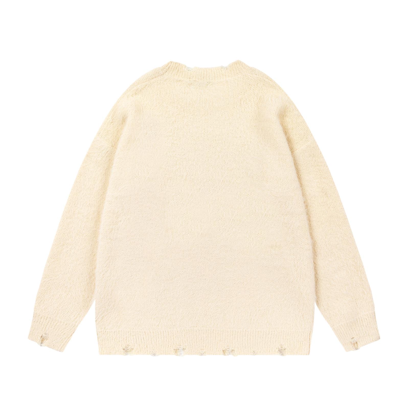 Suéter de cuello redondo con grafiti de dibujos animados, estilo retro y divertido, de marca de moda estadounidense, para hombre y mujer. Diseño de punto de estilo relajado y nicho.