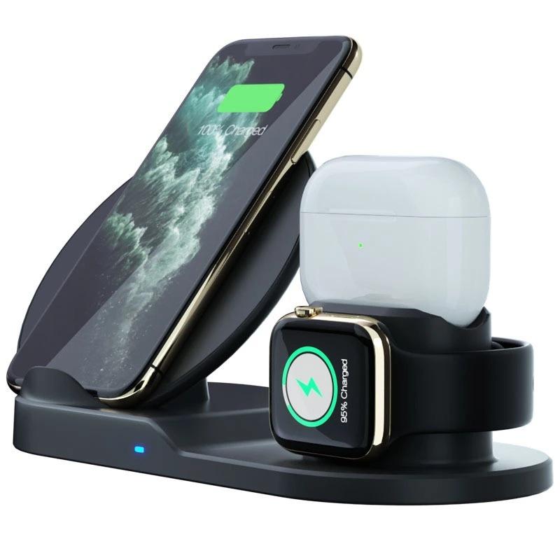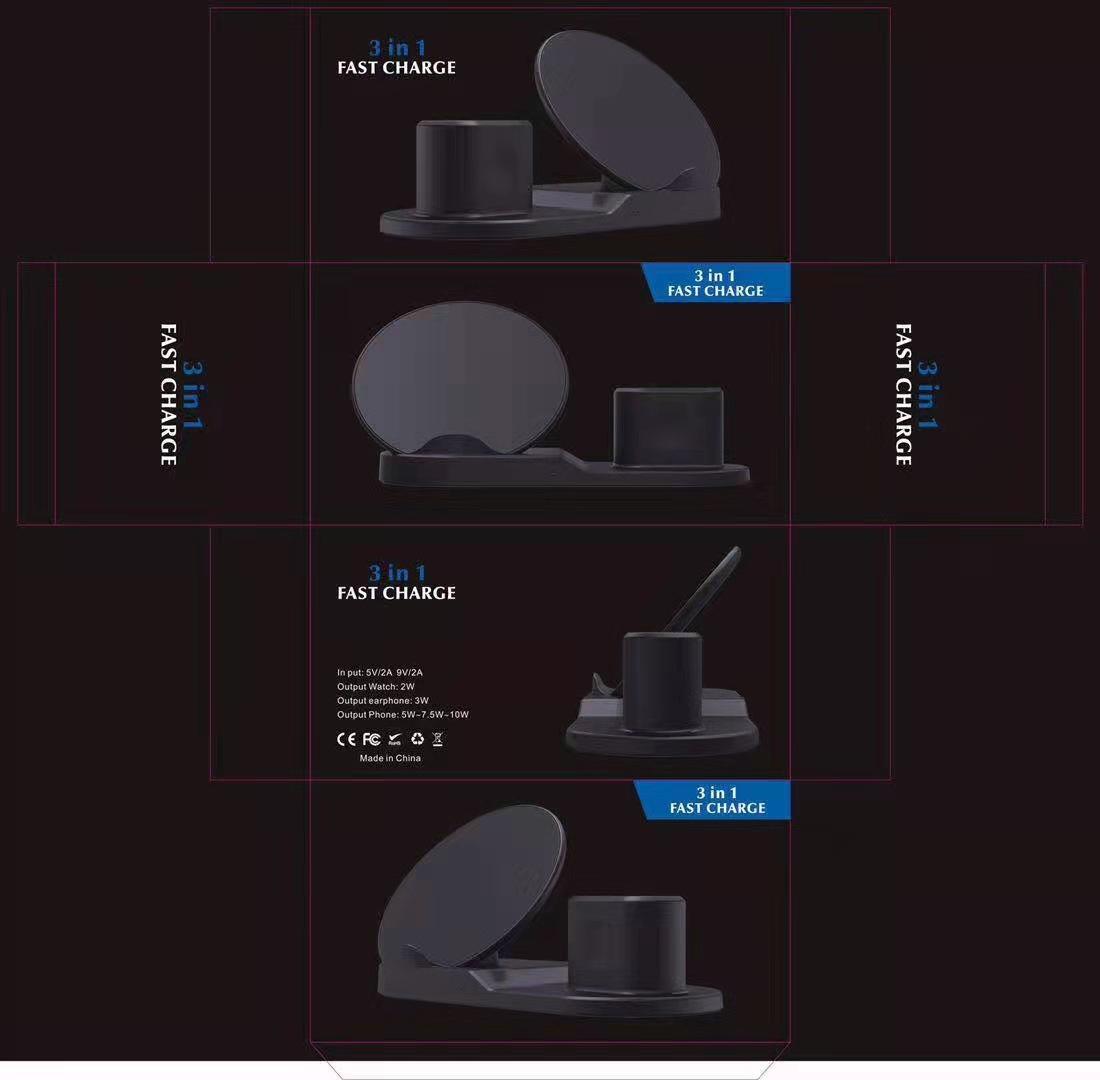 4. Distancia de transmisión: distancia óptima de carga ≤8mm 5. Tamaño del producto (mm): 205*80*95 6. Peso neto del producto (g): 152 7. Color del producto: blanco/negro 8. Material del producto: ABS Características del producto: protección contra sobrecorriente/sobretemperatura, certificación especial de tren de apariencia, carga simultánea de reloj/teléfono móvil/auriculares, soporte vertical