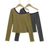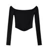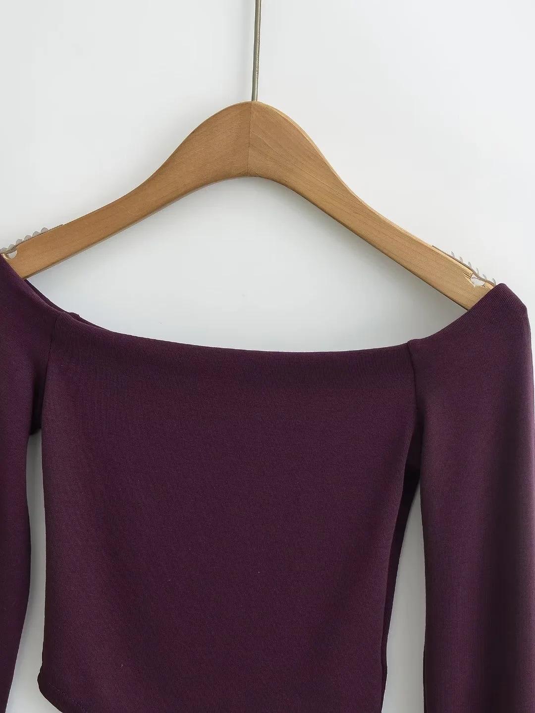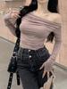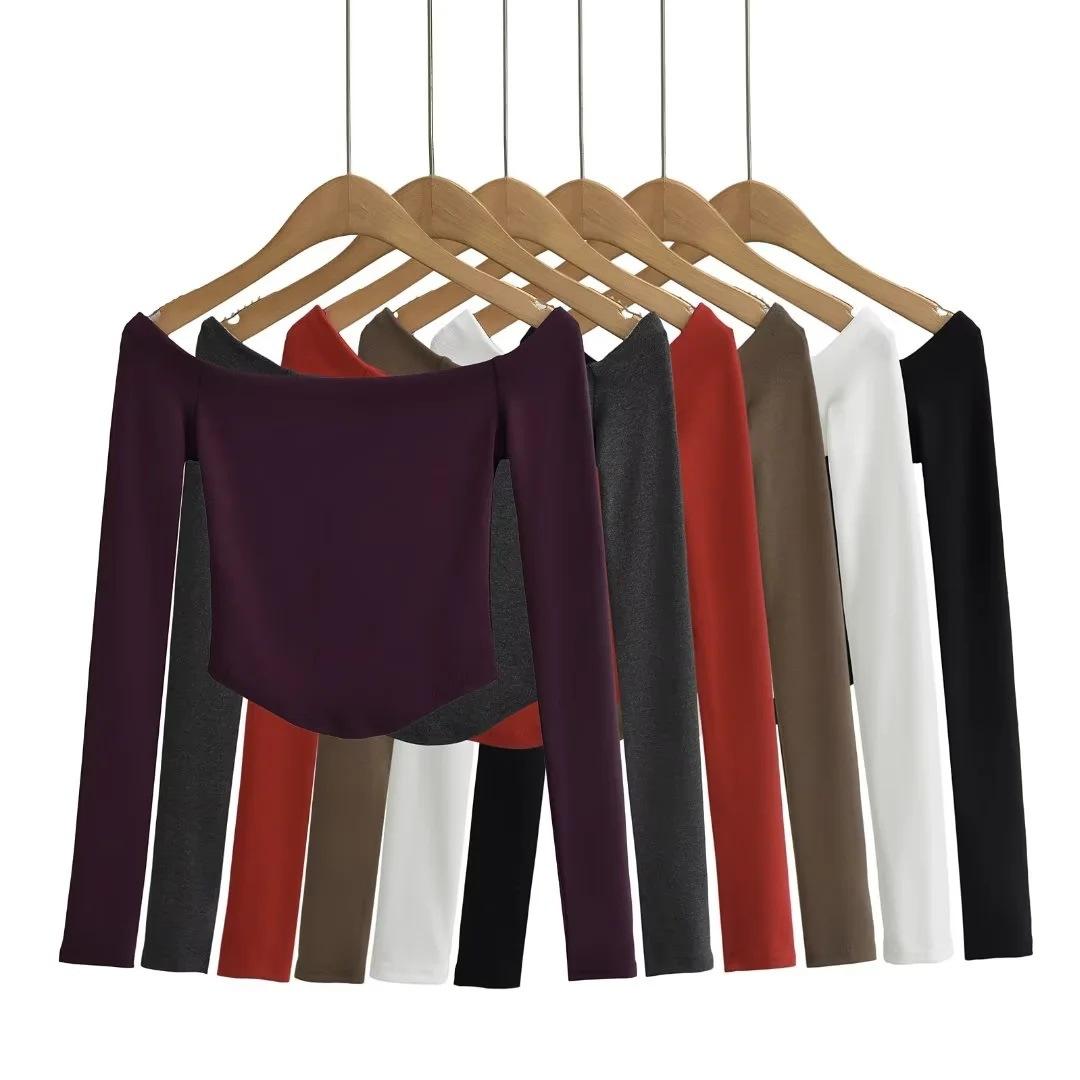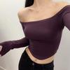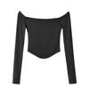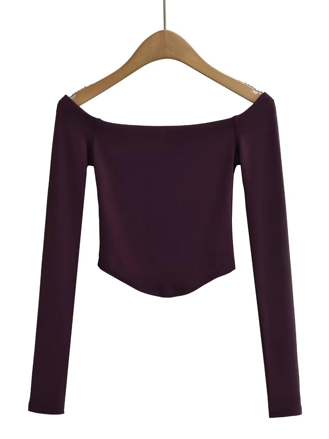 Camiseta sexy de alta sociedad con escote descubierto y hombros descubiertos para mujer, nueva camiseta de primavera para chica sexy, ajustada, de manga larga, camiseta con hombros descubiertos, moda