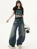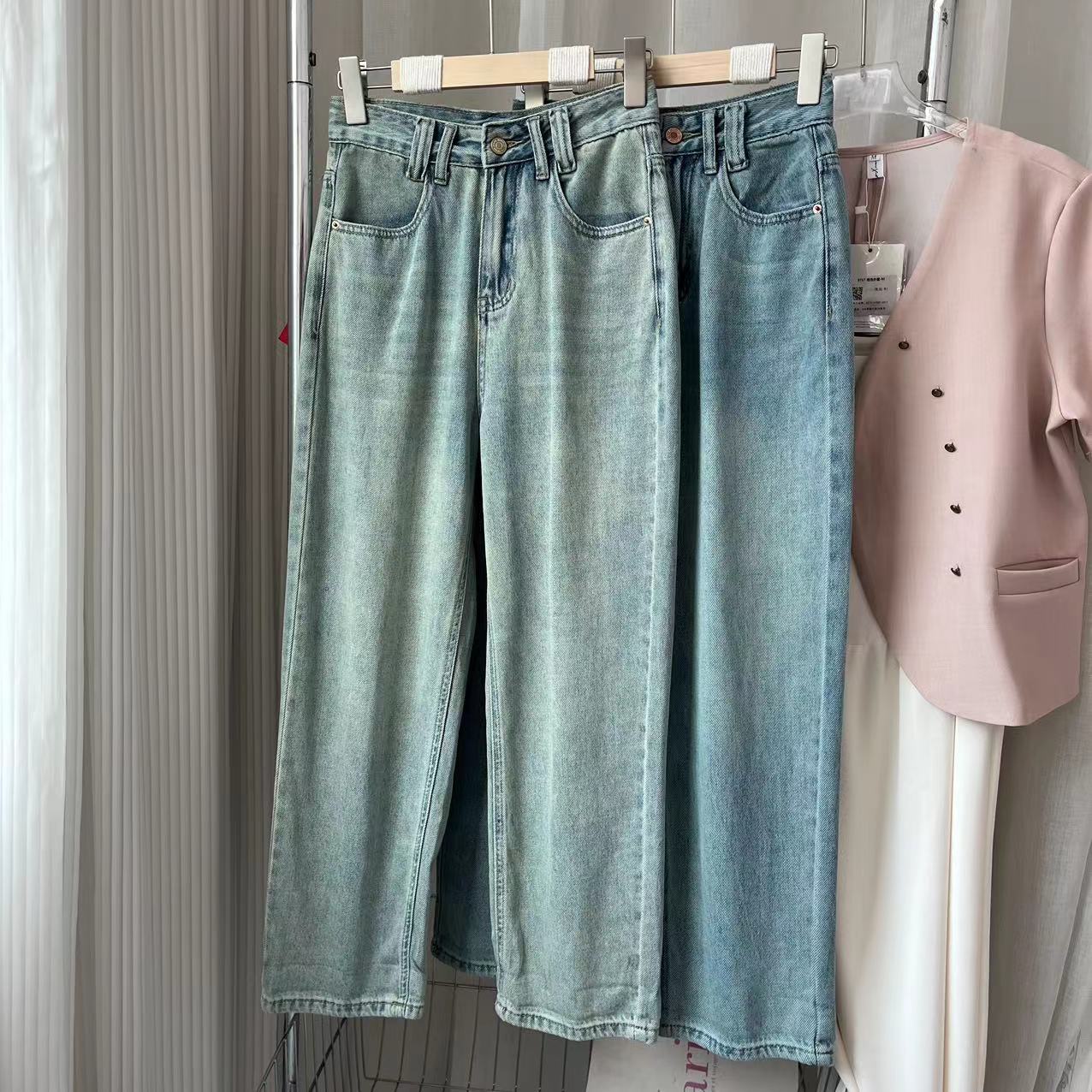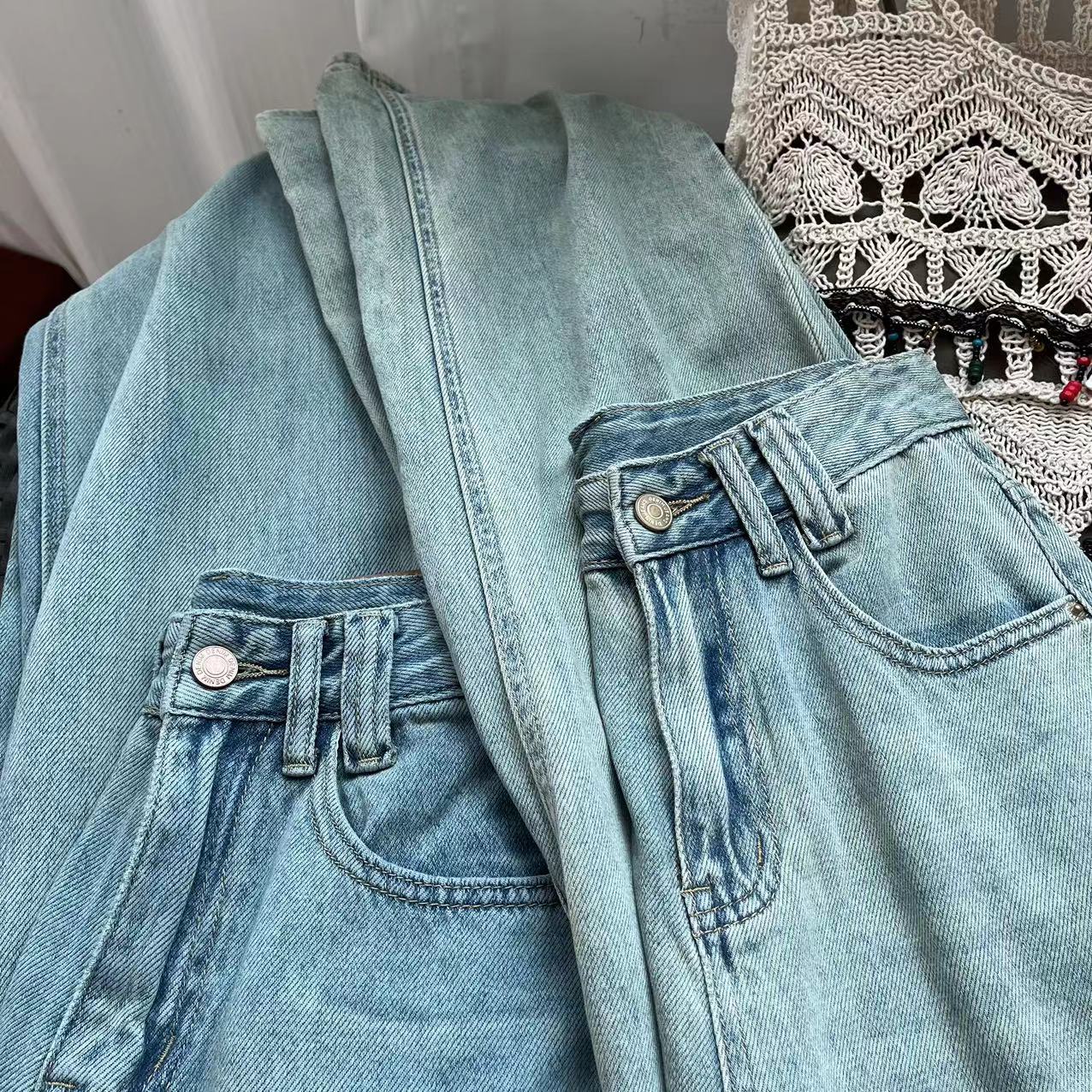 W00715 Sunset chao Bonitos Jeans Vintage Holgados Relajados de Pierna Larga para Mujer