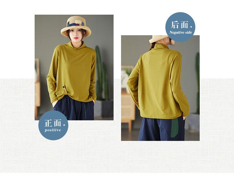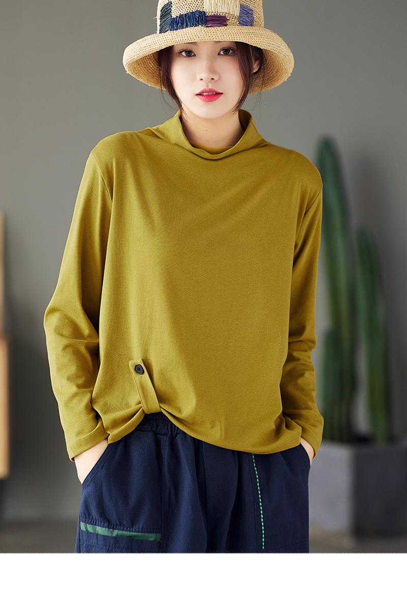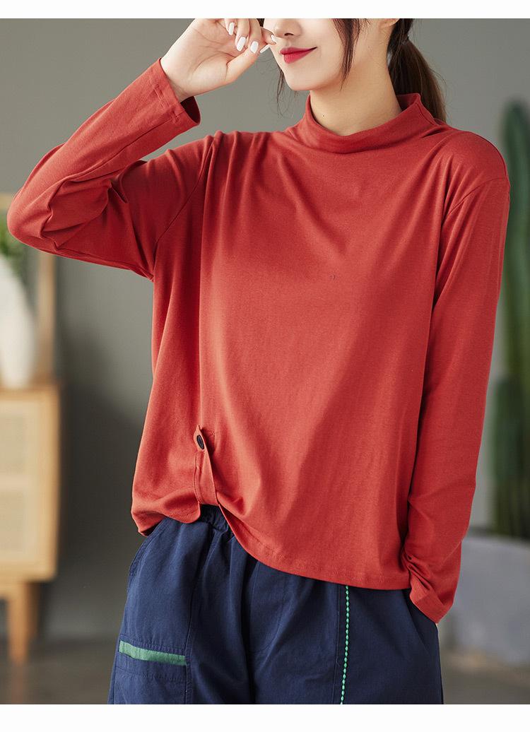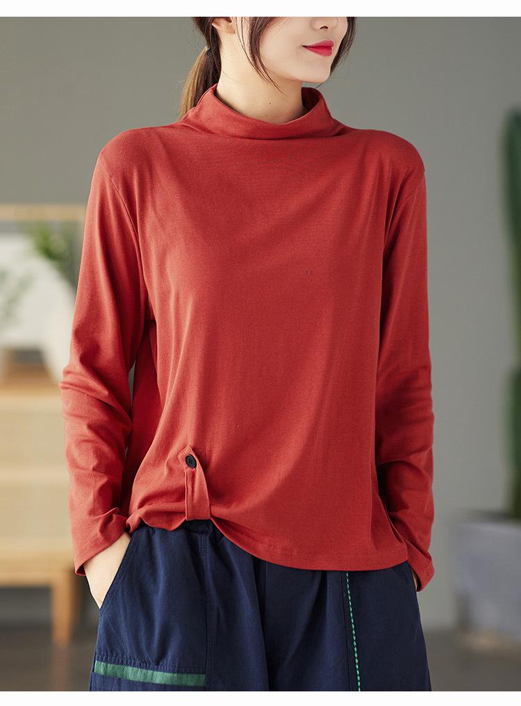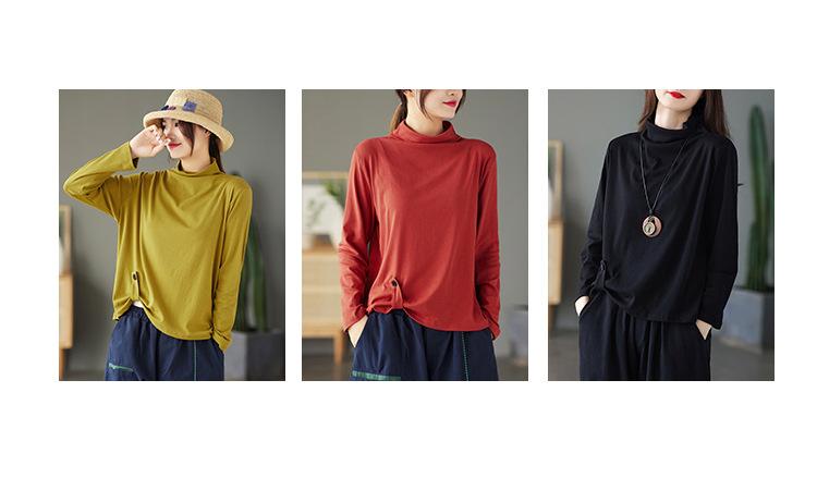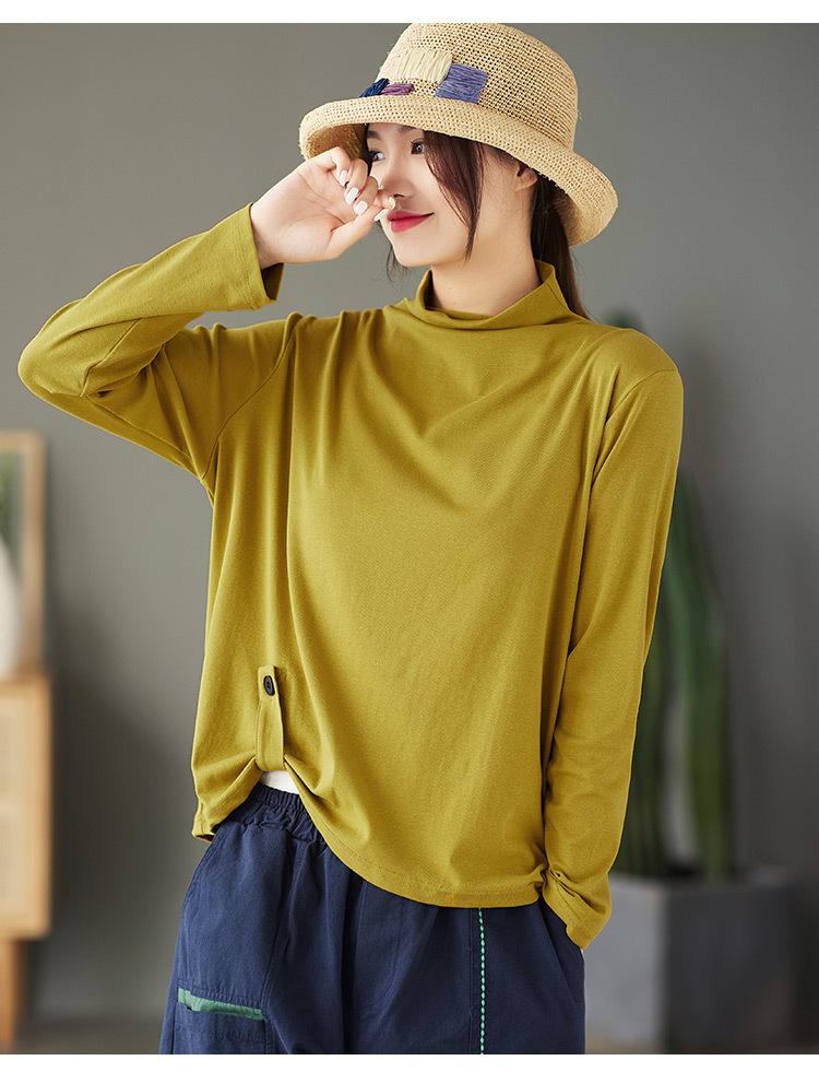 Camiseta de manga larga con cuello alto y color liso para mujer, blusa holgada y ajustada de talla grande, moderna, 2024