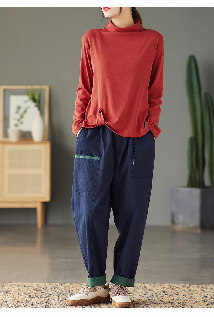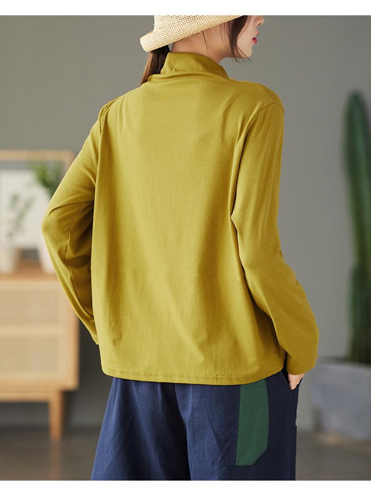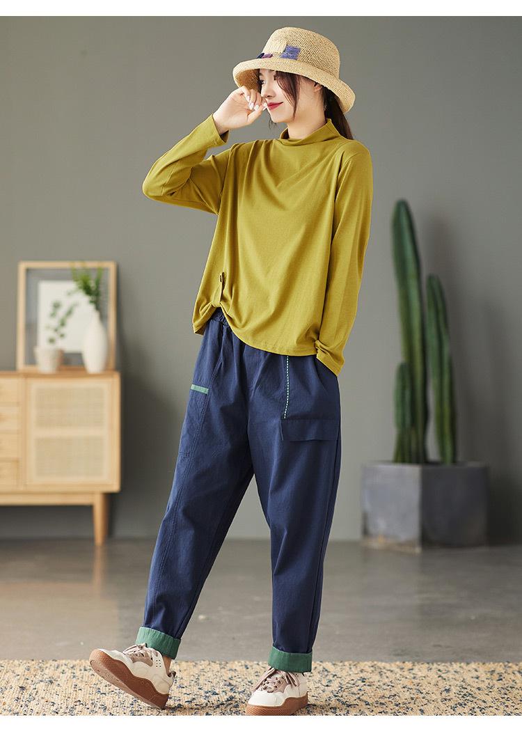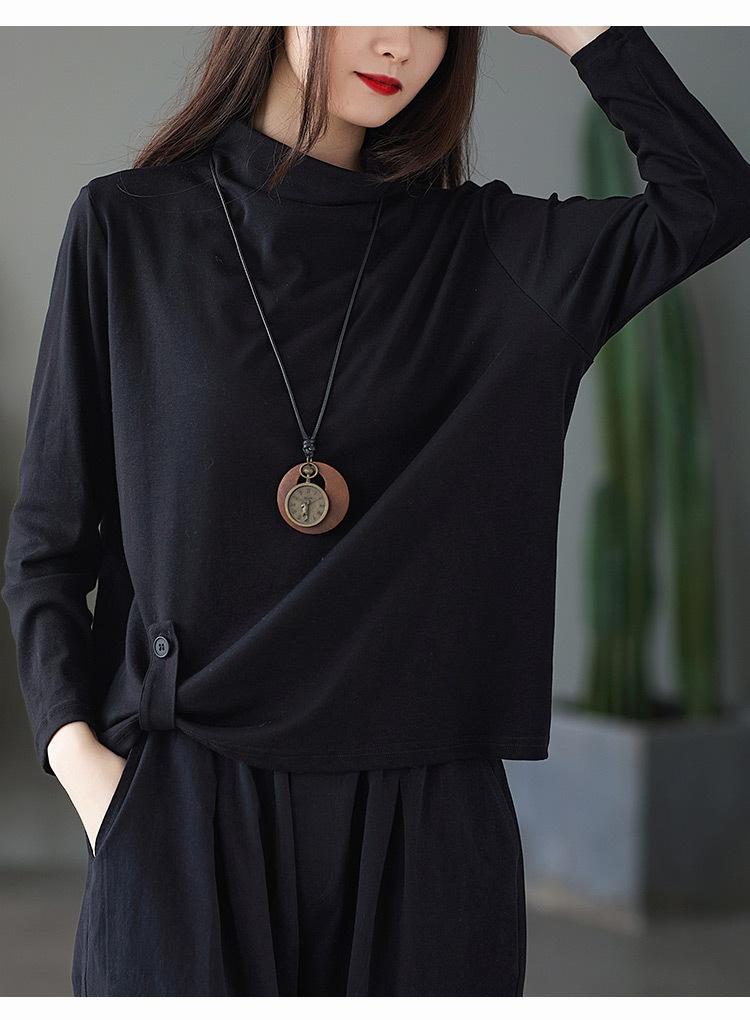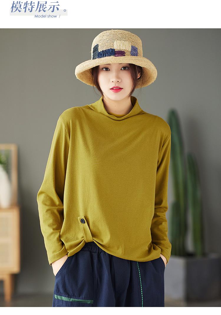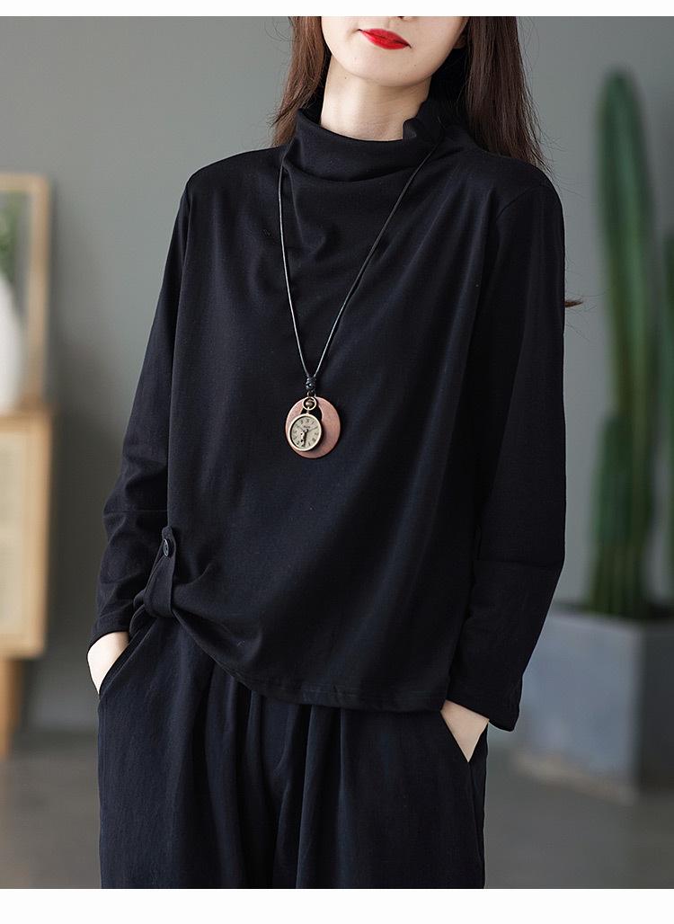 Camiseta de manga larga con cuello alto y color liso para mujer, blusa holgada y ajustada de talla grande, moderna, 2024