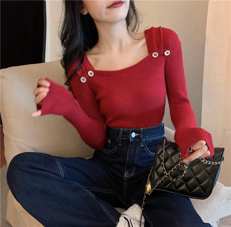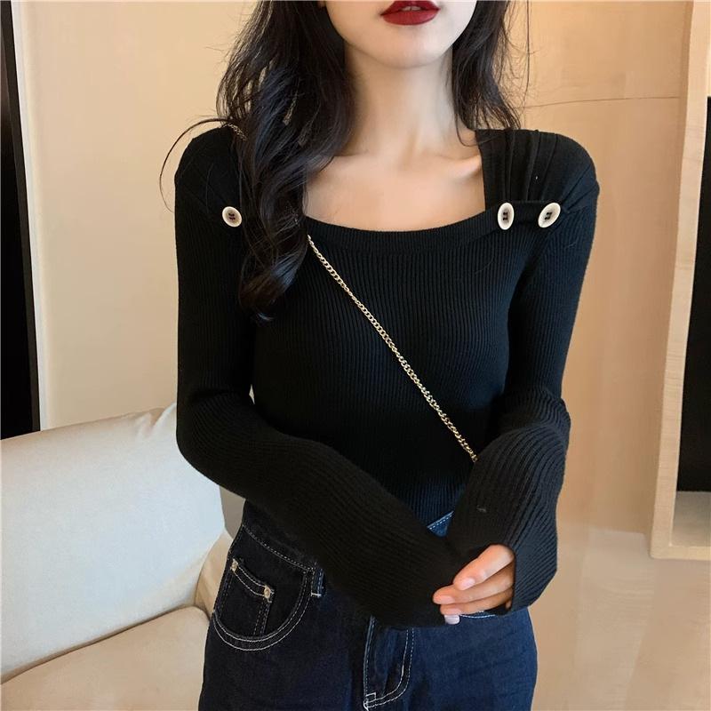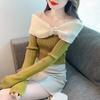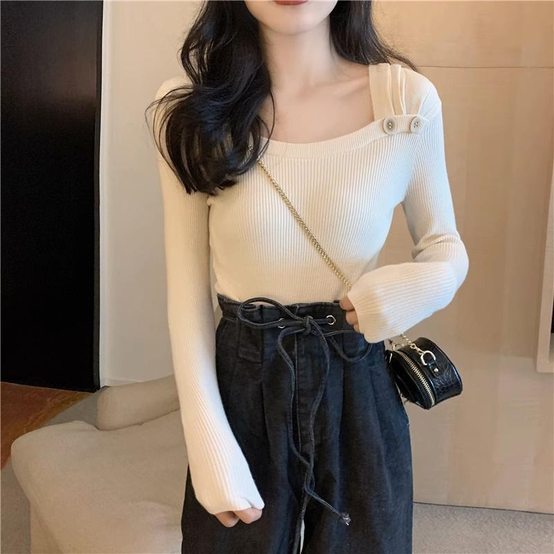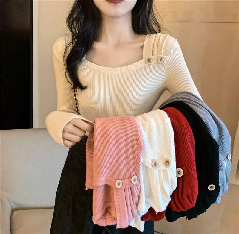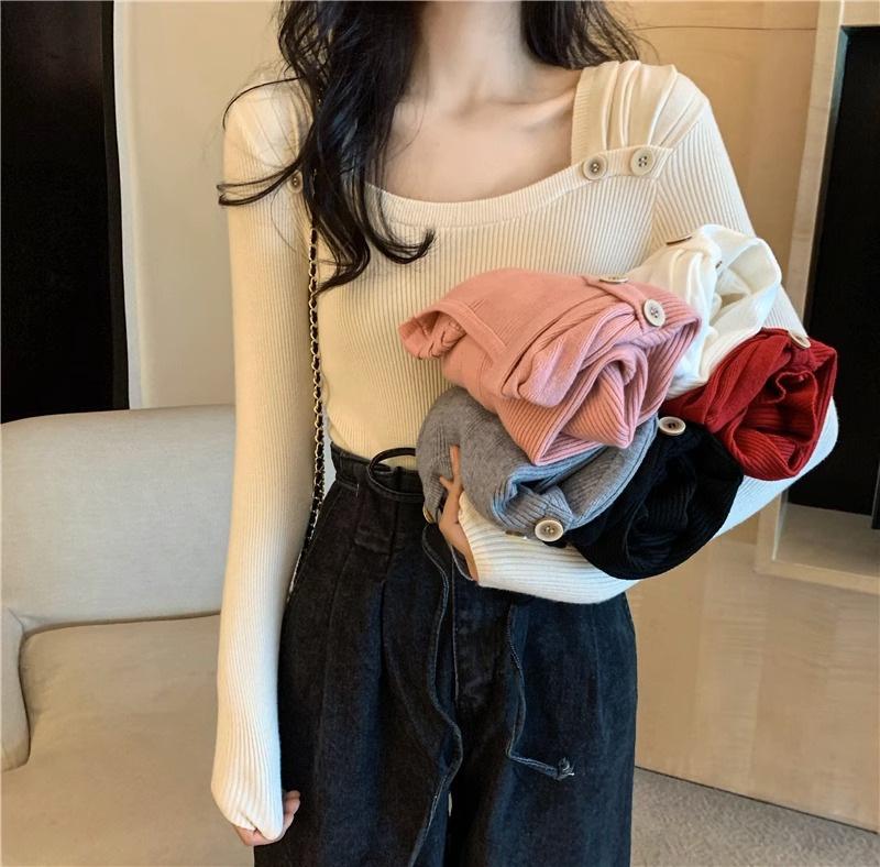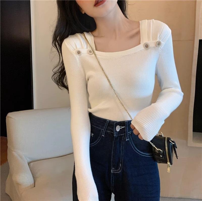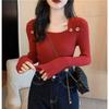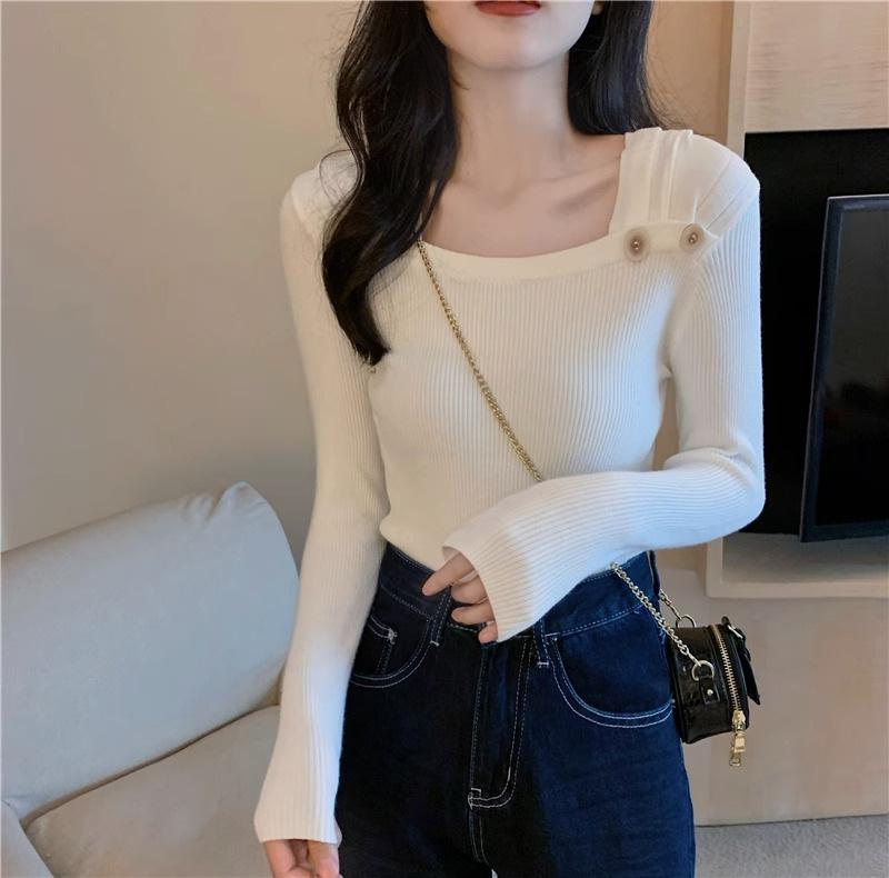 Camiseta Interior Suéter Tejido Exterior para Mujer 2022 Otoño e Invierno Manga Larga Ajustado Clavícula Jersey Top Interior al Por Mayor