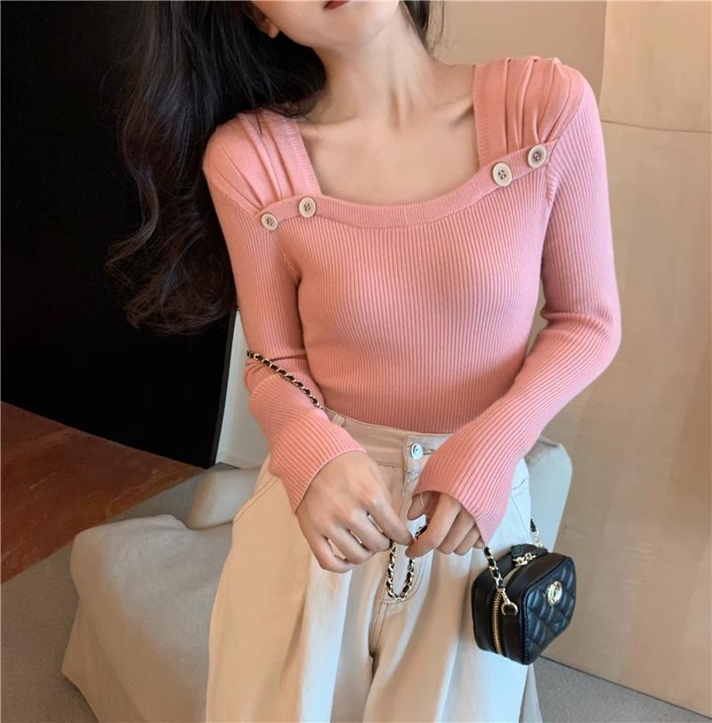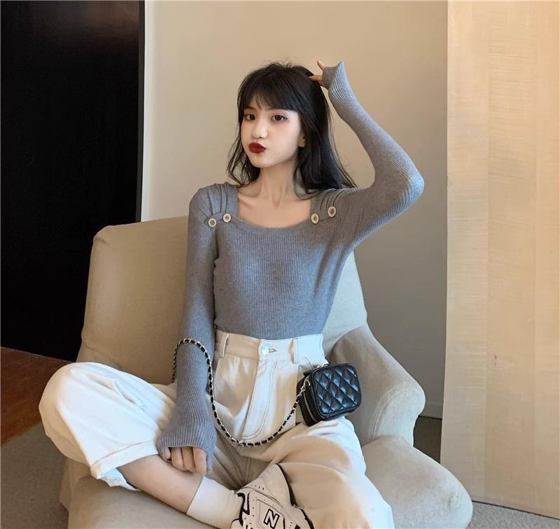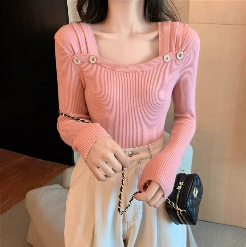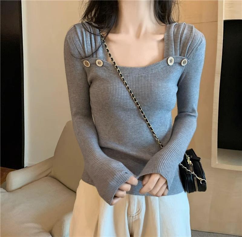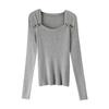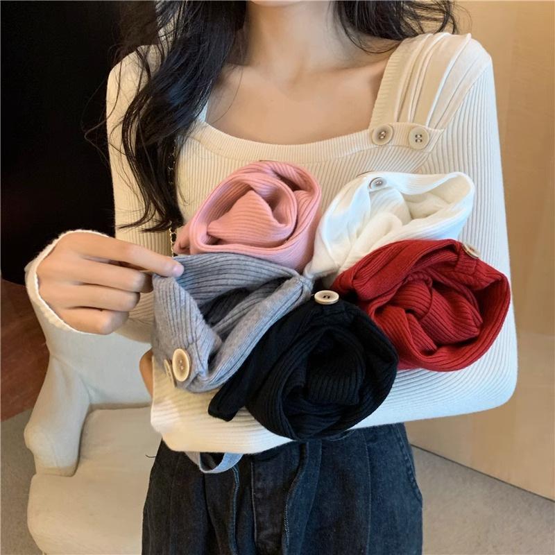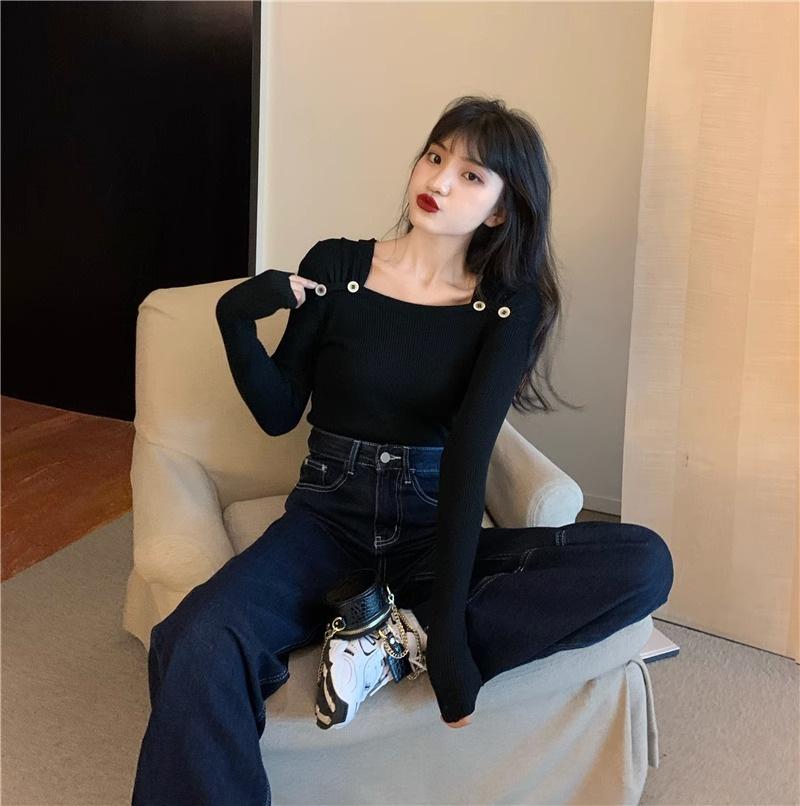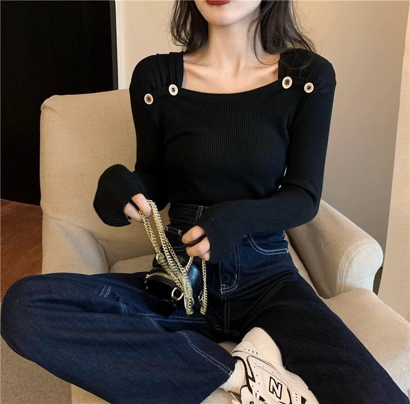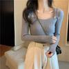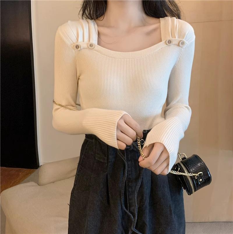 Camiseta Interior Suéter Tejido Exterior para Mujer 2022 Otoño e Invierno Manga Larga Ajustado Clavícula Jersey Top Interior al Por Mayor