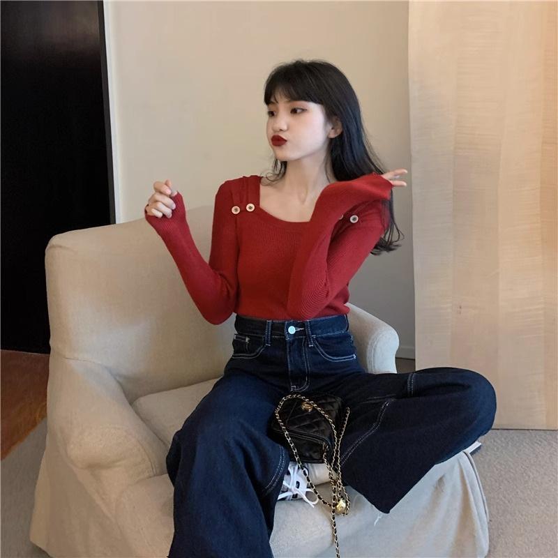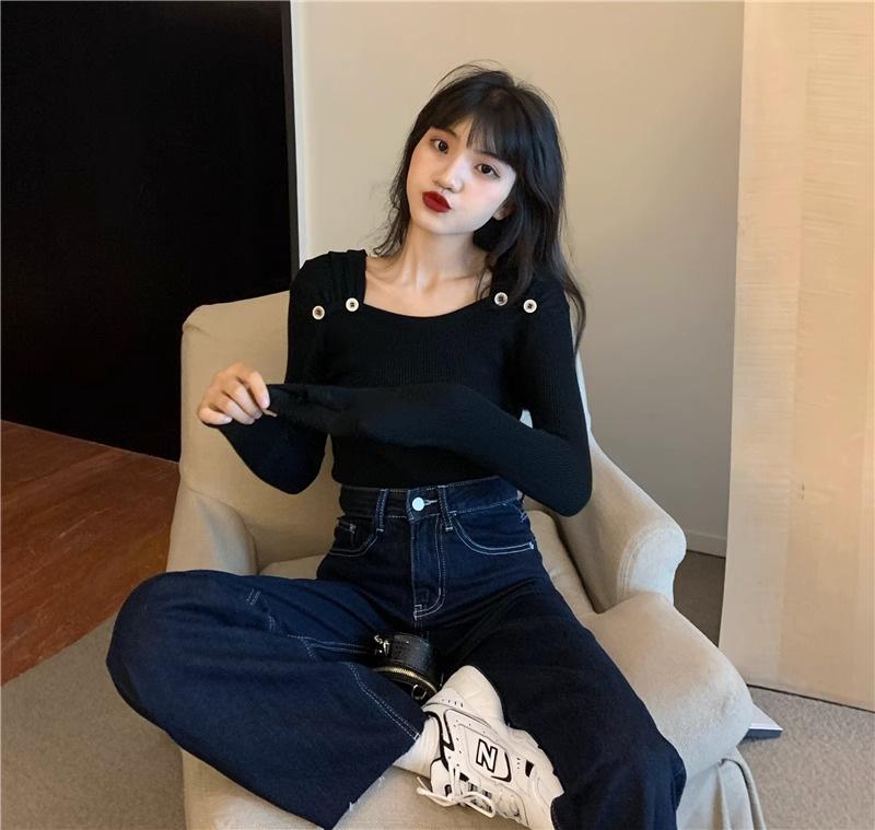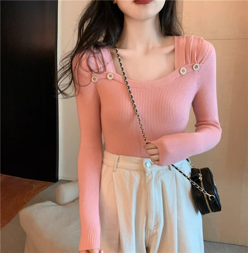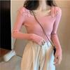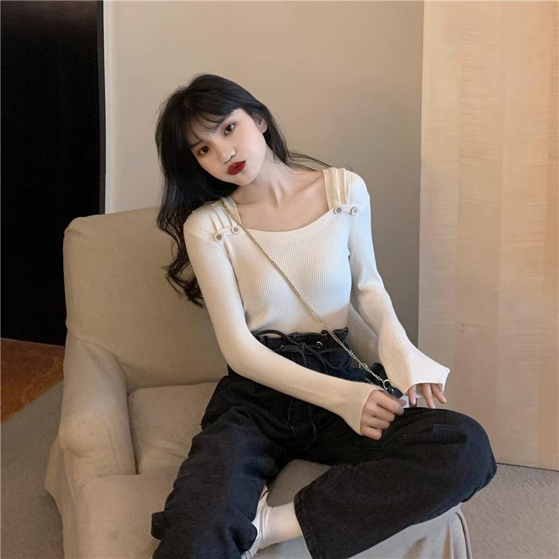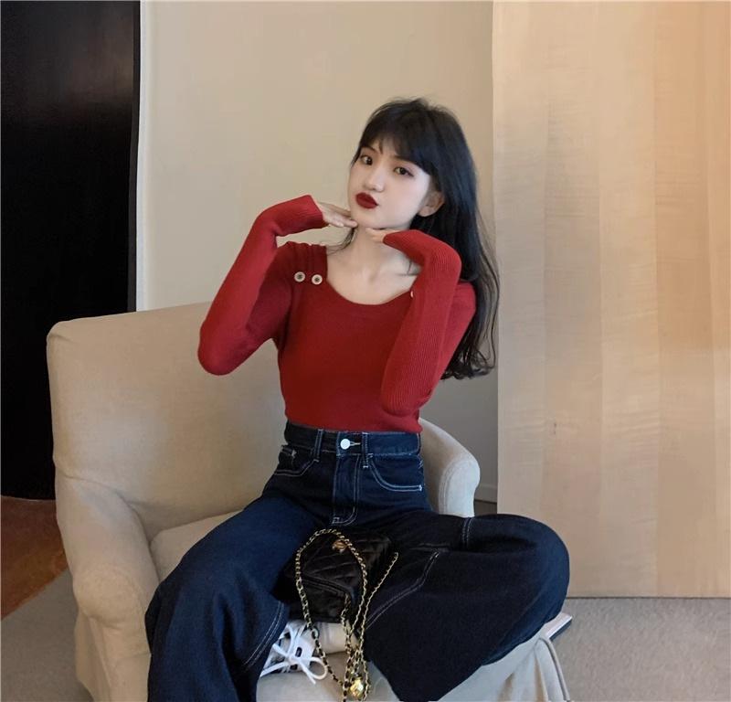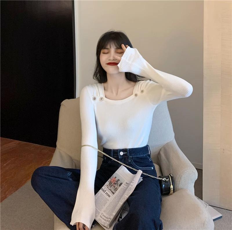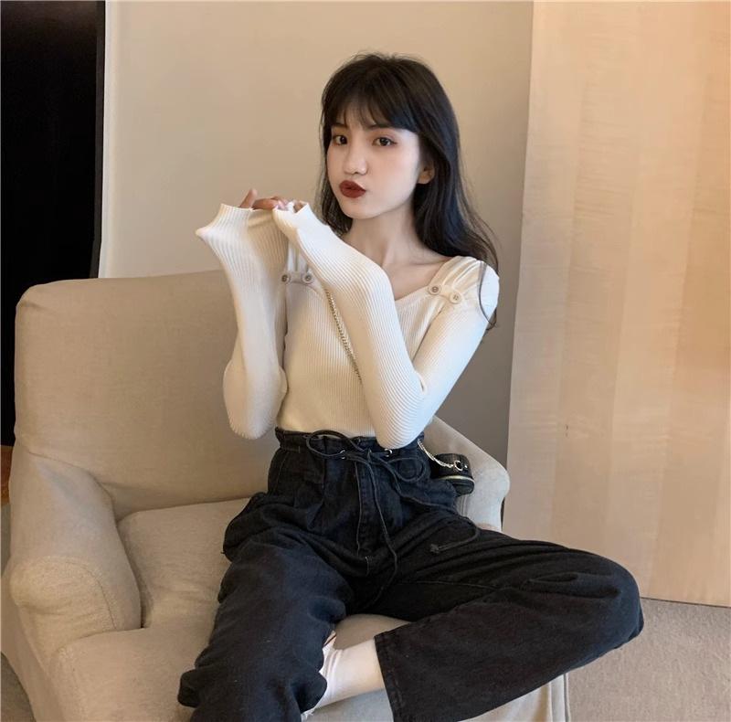 Camiseta Interior Suéter Tejido Exterior para Mujer 2022 Otoño e Invierno Manga Larga Ajustado Clavícula Jersey Top Interior al Por Mayor
