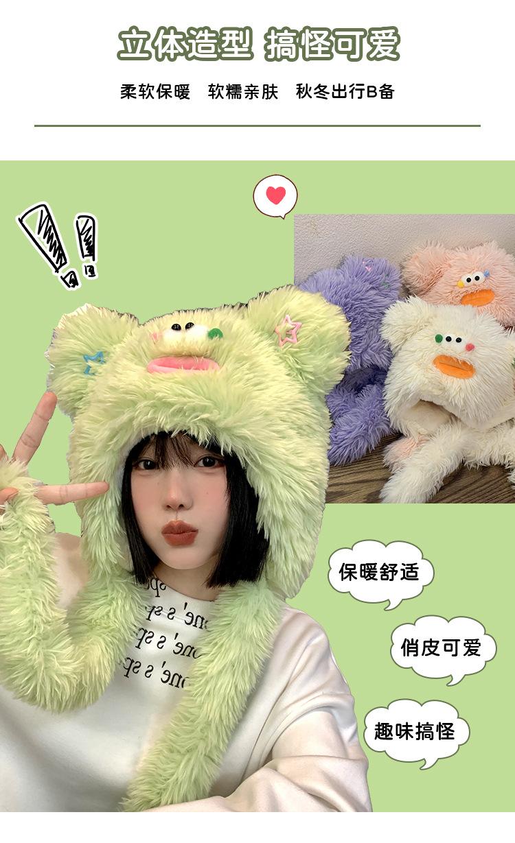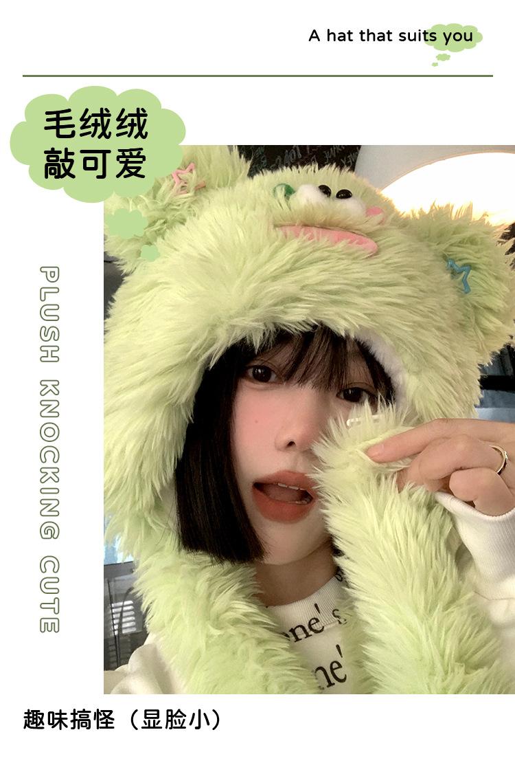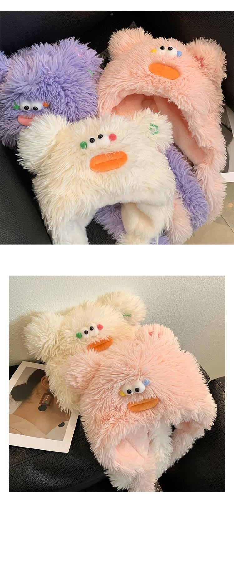 Gorro Lei Feng de invierno para mujer, bonito, grueso y cálido, con orejas de oso y protección para los oídos, de monstruo de dibujos animados, resistente al viento