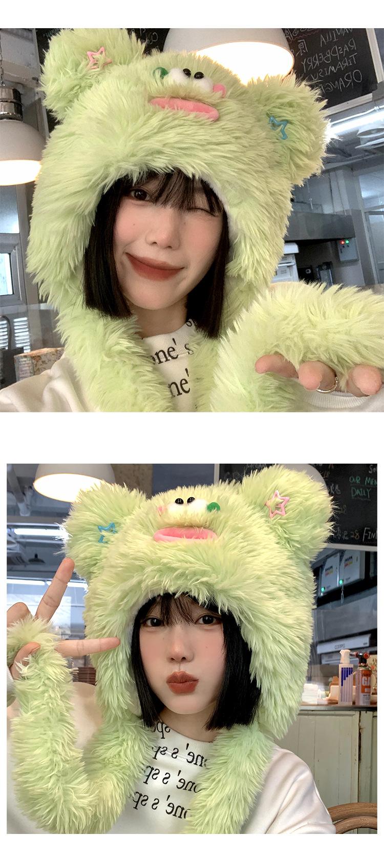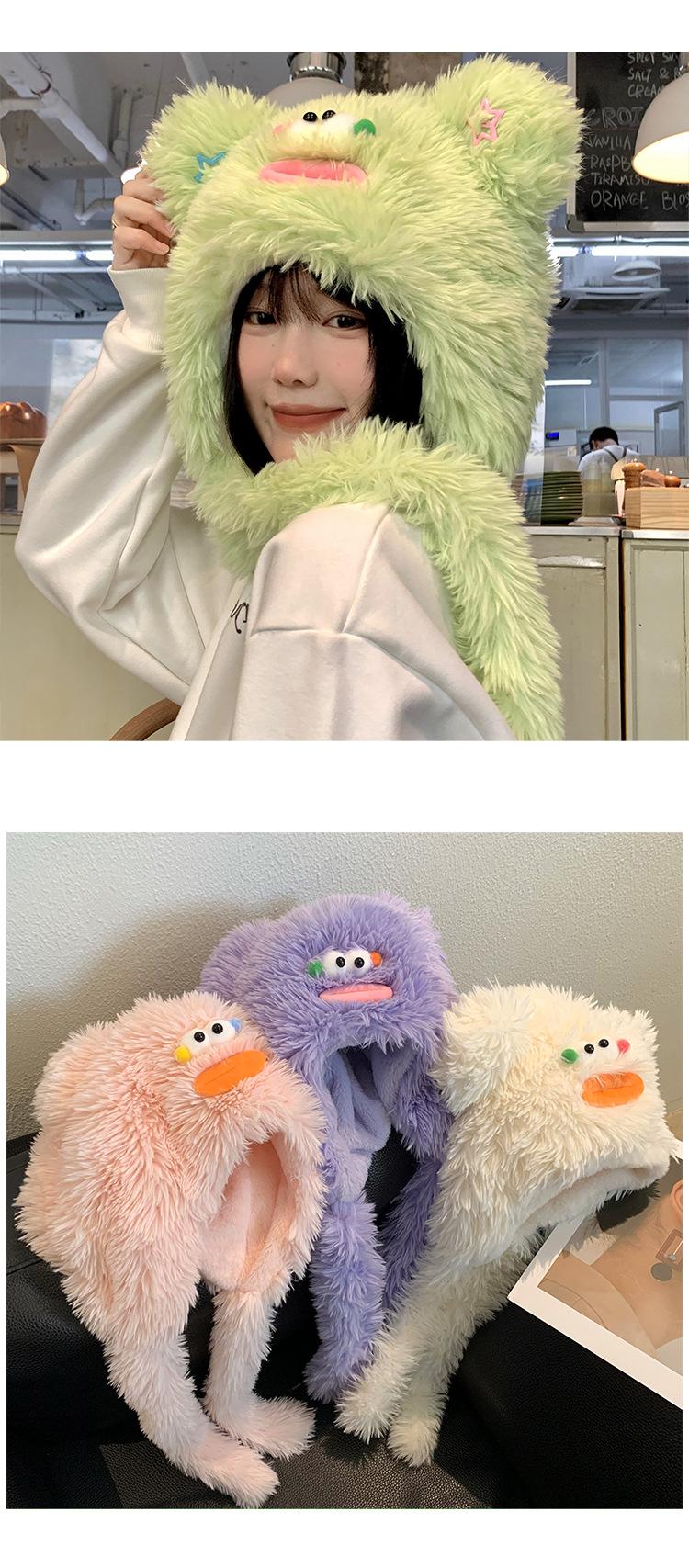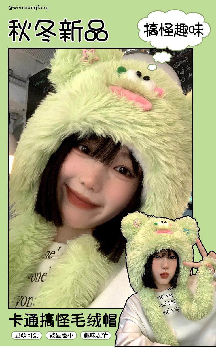 Gorro Lei Feng de invierno para mujer, bonito, grueso y cálido, con orejas de oso y protección para los oídos, de monstruo de dibujos animados, resistente al viento