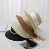 Sombrero de paja plegable para playa con ala ancha y cinta tipo cúpula, estilo coreano, protector solar, para vacaciones en la playa, para mujer