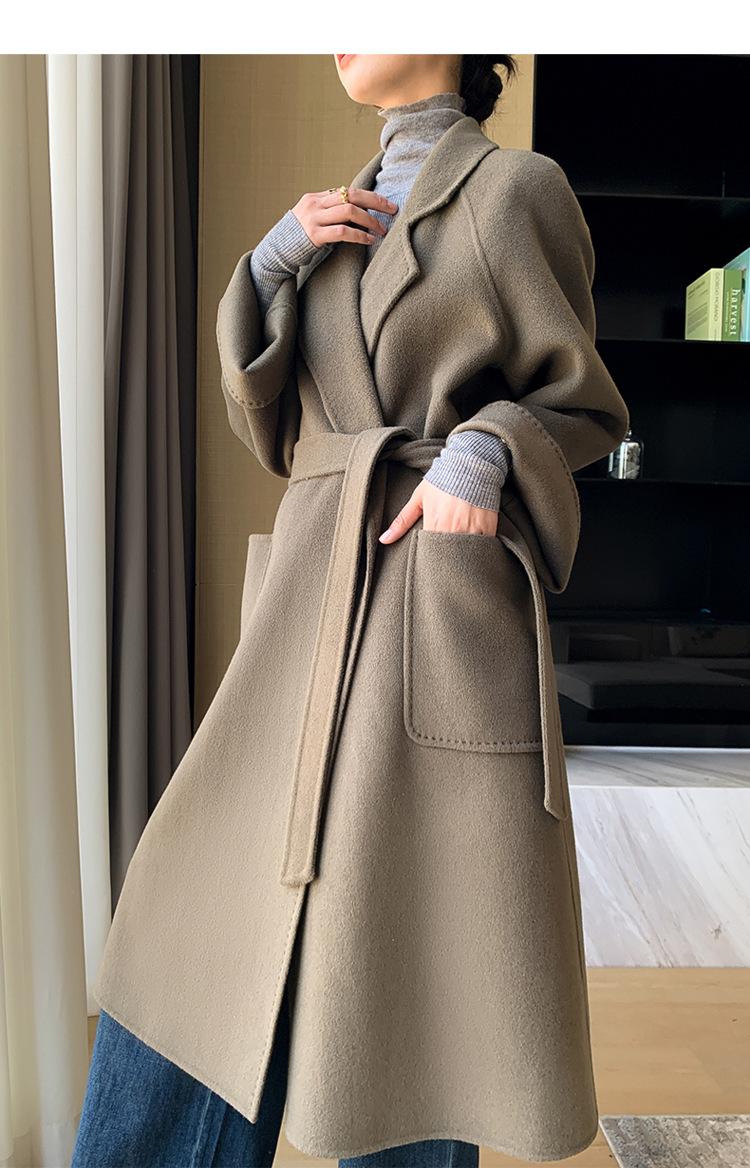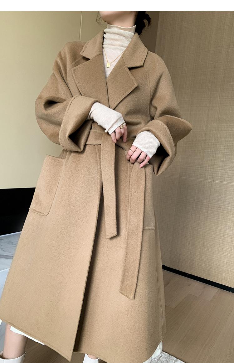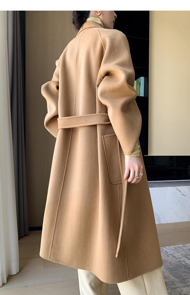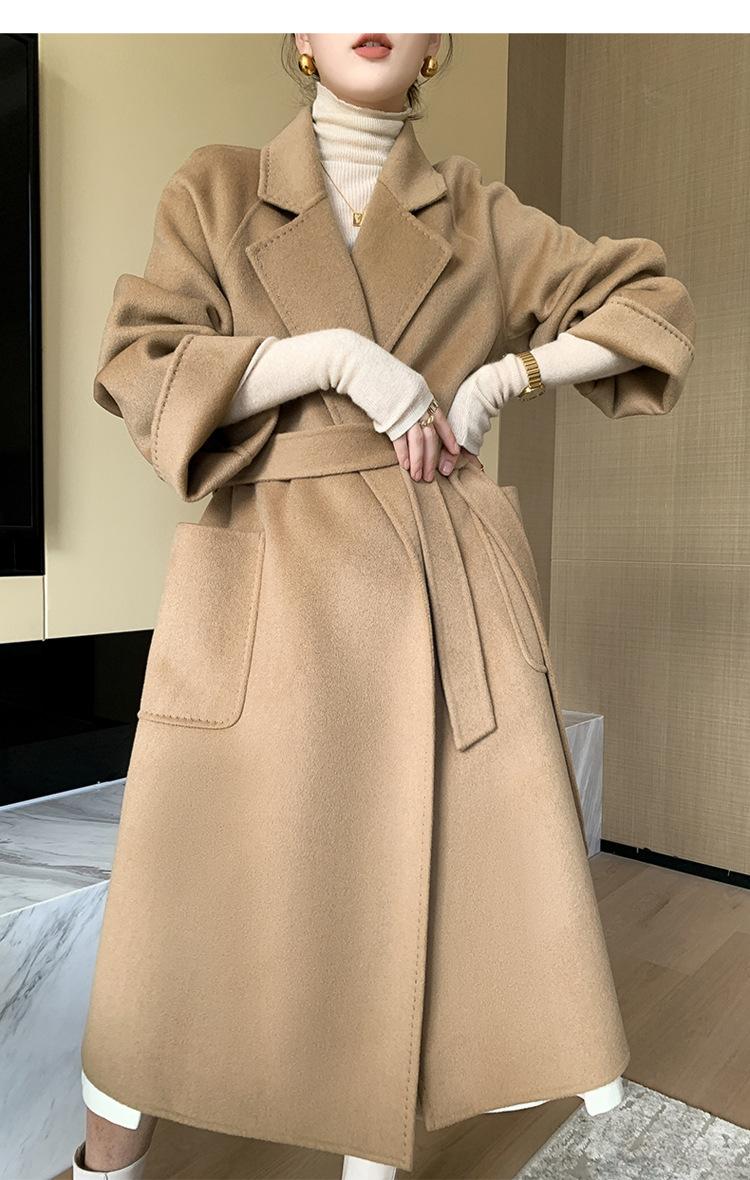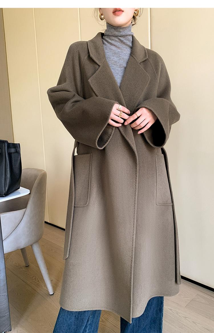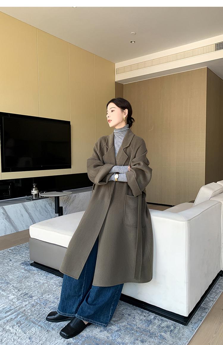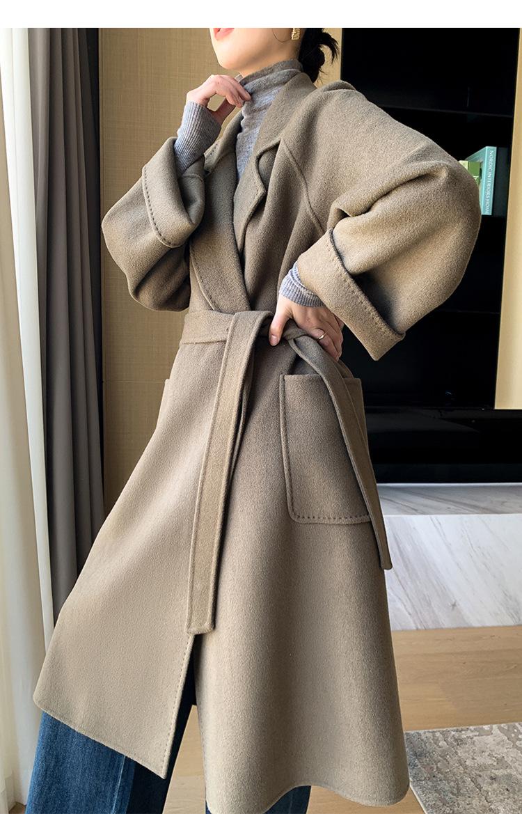 Abrigo de Lana para Otoño e Invierno, Lana de Doble Cara, Abrigo Holgado para Mujer, Estilo Traje, Extralargo con Cinturón, 100% Lana, Sobre la Rodilla, Estilo Elegante