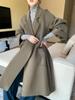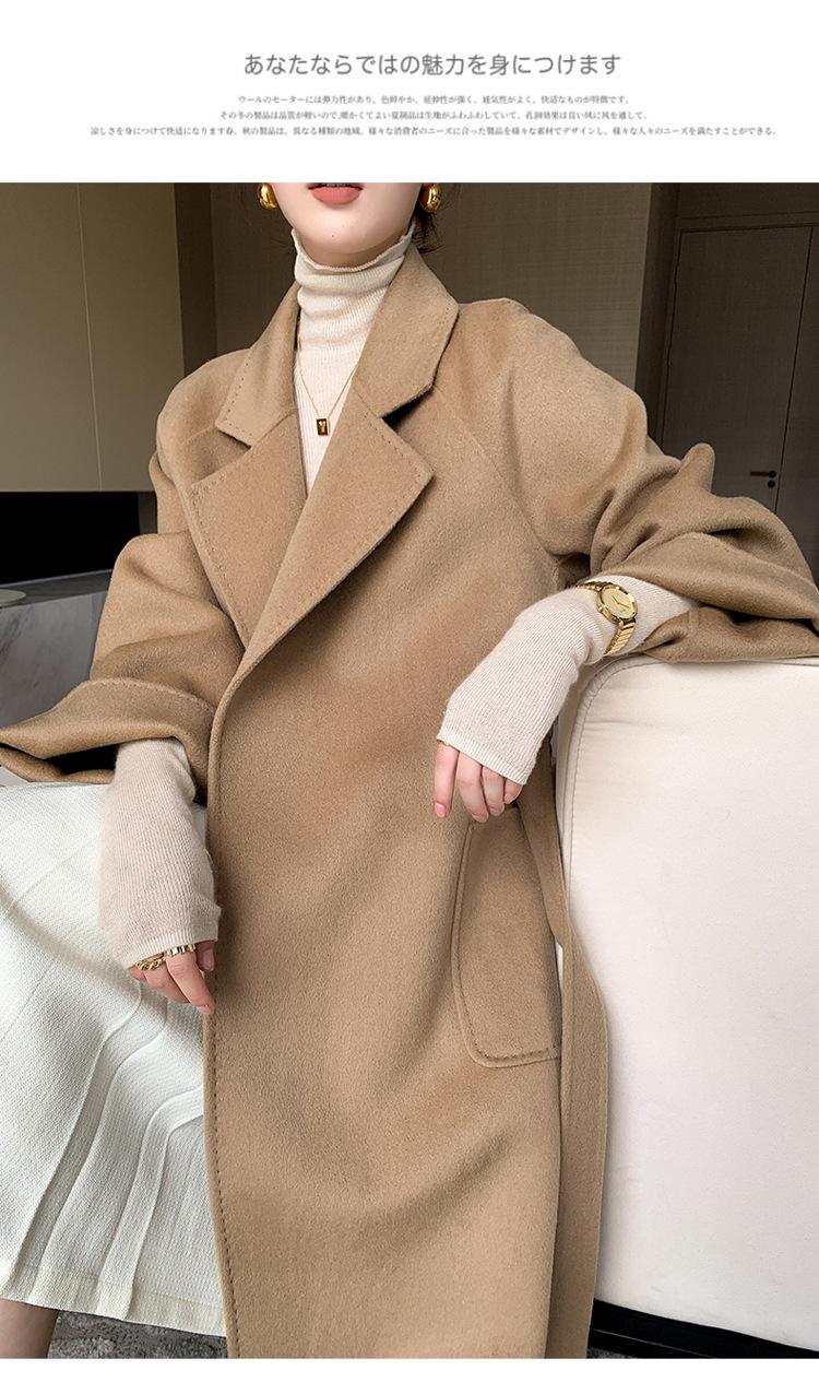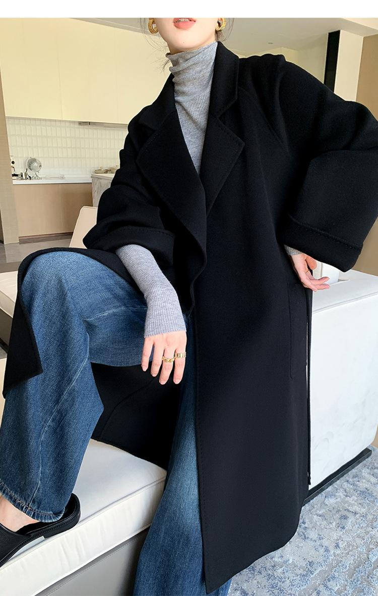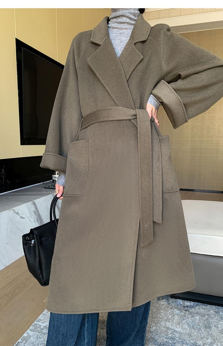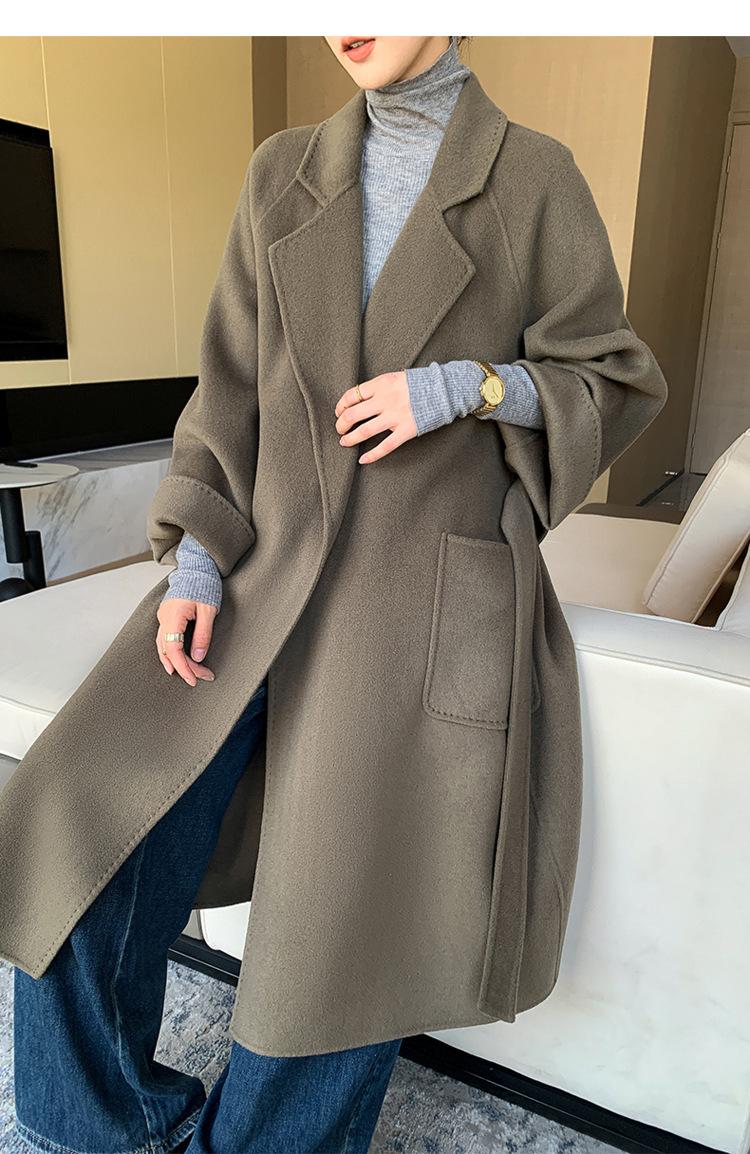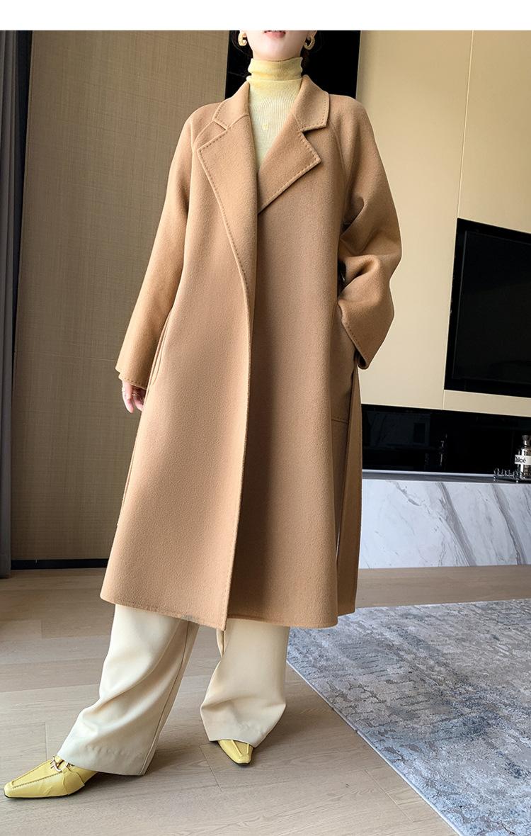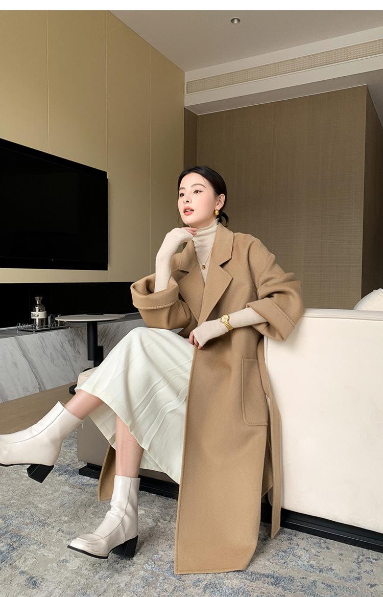 Abrigo de Lana para Otoño e Invierno, Lana de Doble Cara, Abrigo Holgado para Mujer, Estilo Traje, Extralargo con Cinturón, 100% Lana, Sobre la Rodilla, Estilo Elegante
