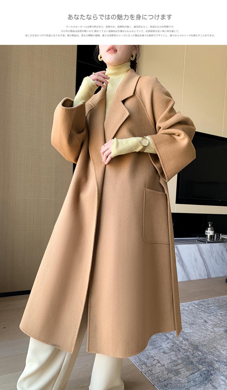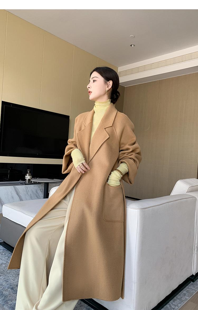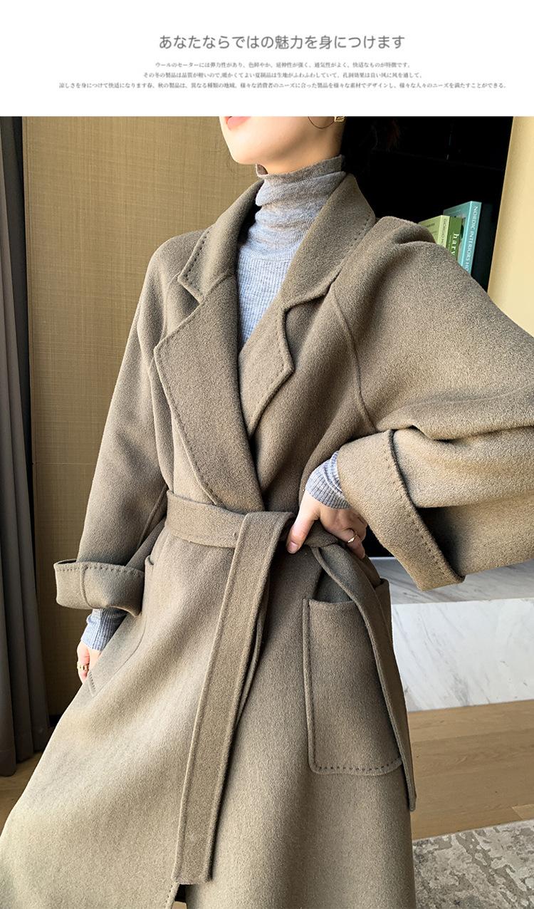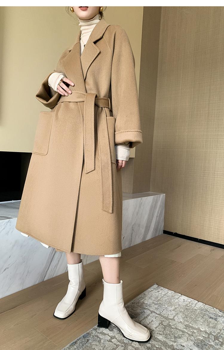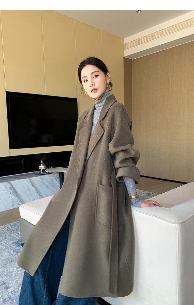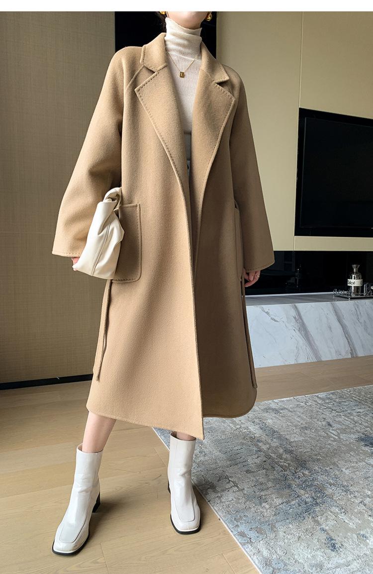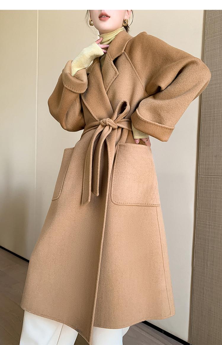 Abrigo de Lana para Otoño e Invierno, Lana de Doble Cara, Abrigo Holgado para Mujer, Estilo Traje, Extralargo con Cinturón, 100% Lana, Sobre la Rodilla, Estilo Elegante