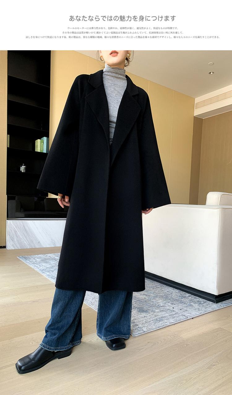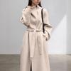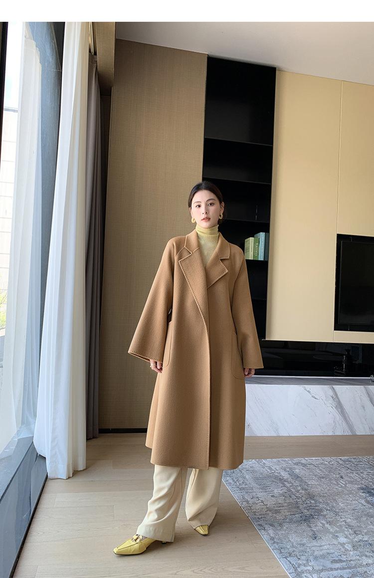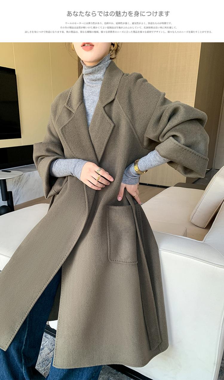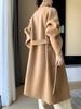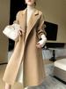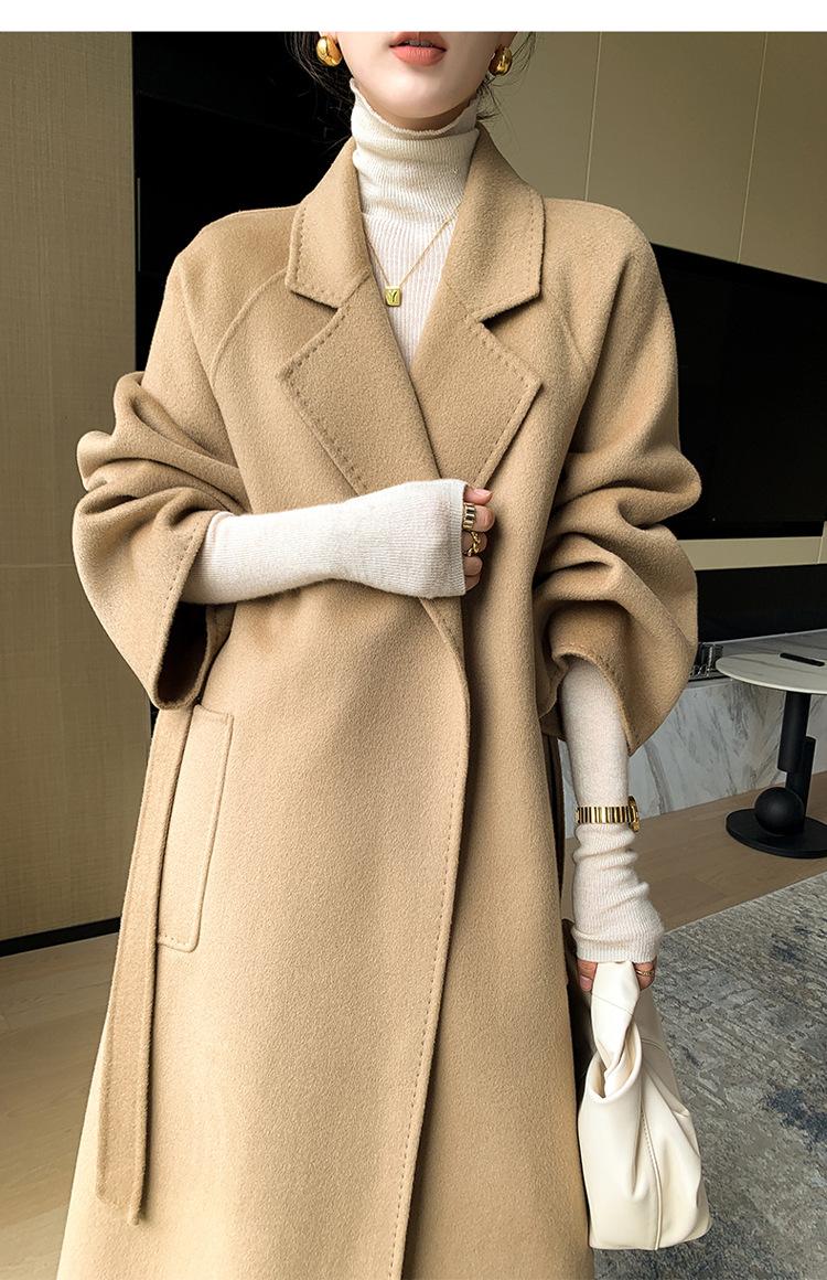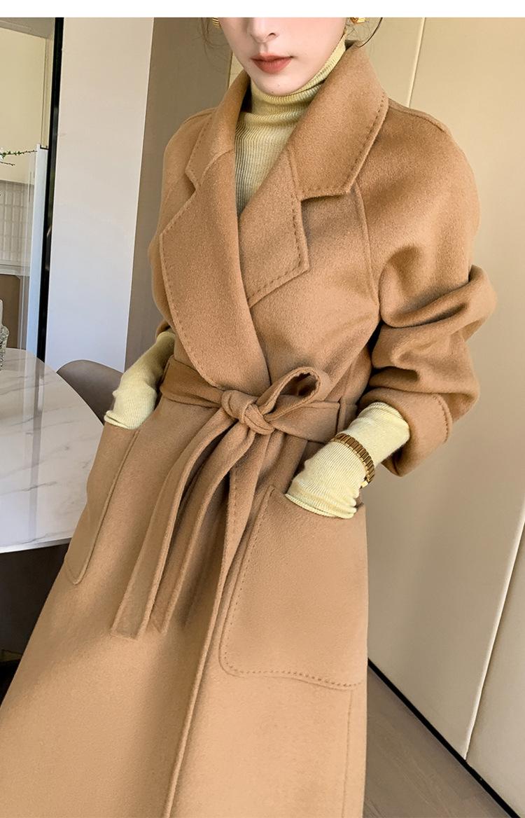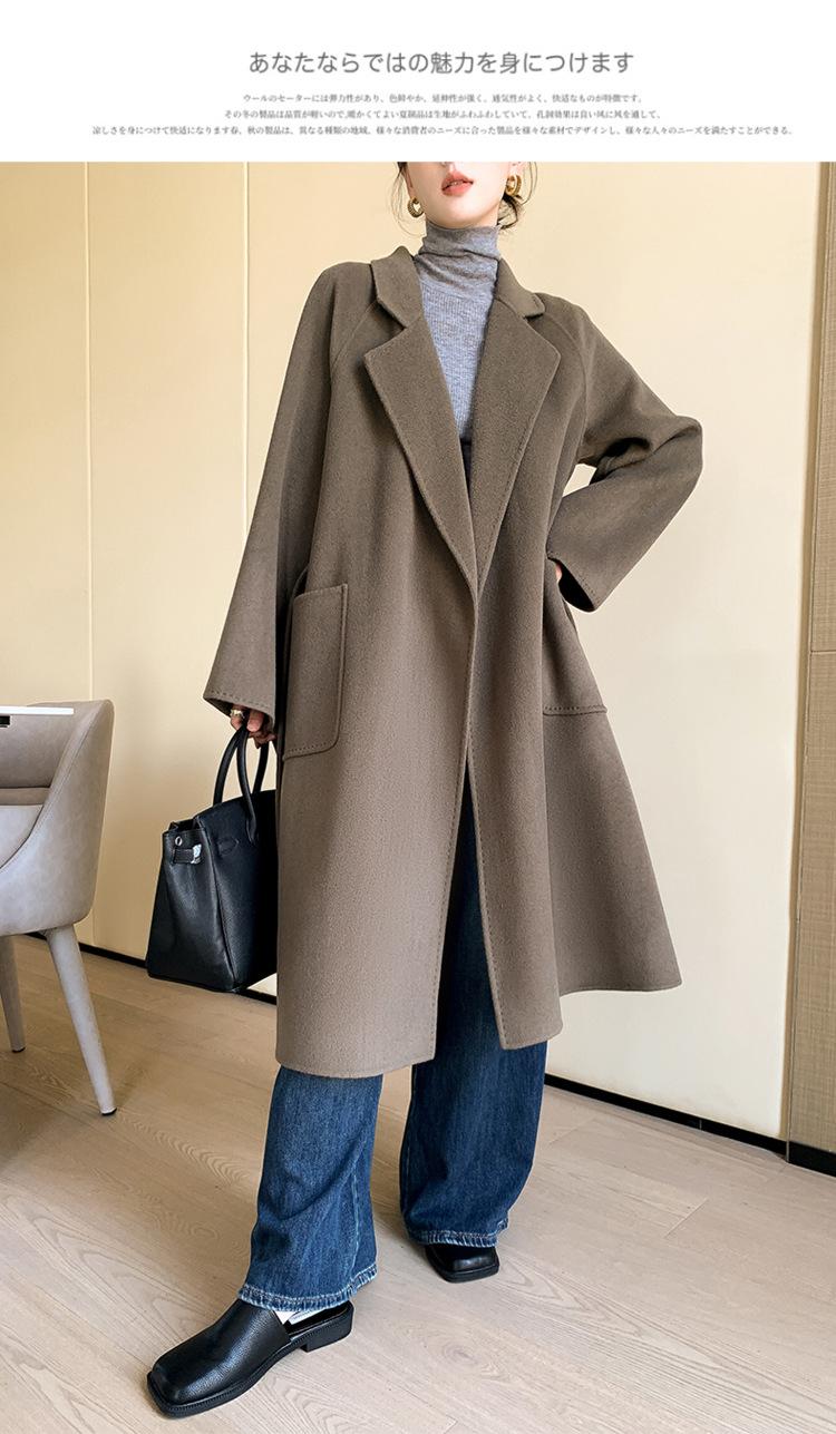 Abrigo de Lana para Otoño e Invierno, Lana de Doble Cara, Abrigo Holgado para Mujer, Estilo Traje, Extralargo con Cinturón, 100% Lana, Sobre la Rodilla, Estilo Elegante