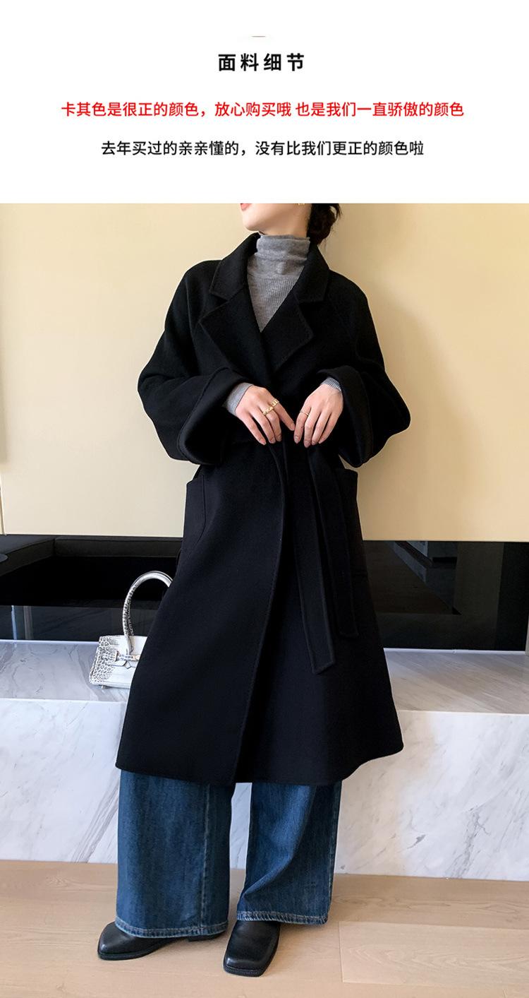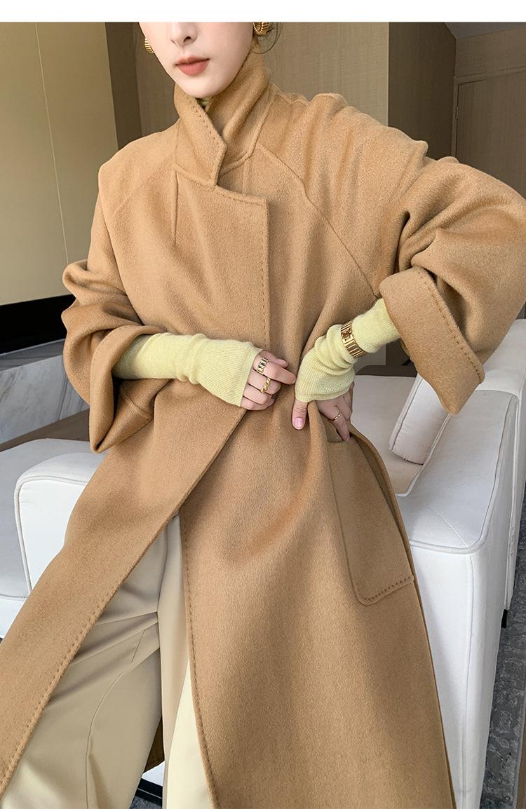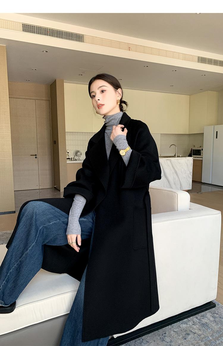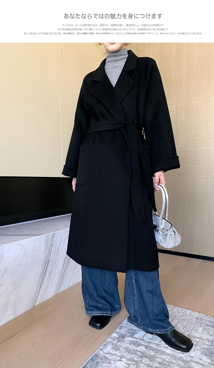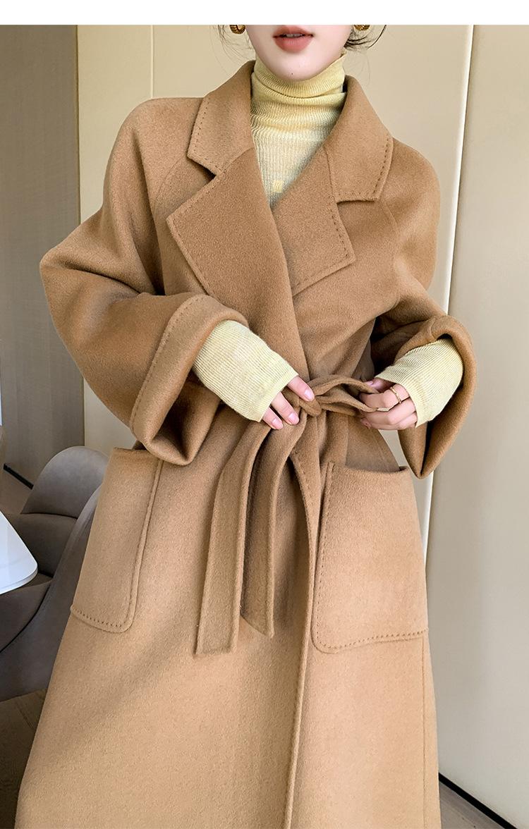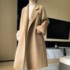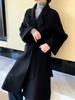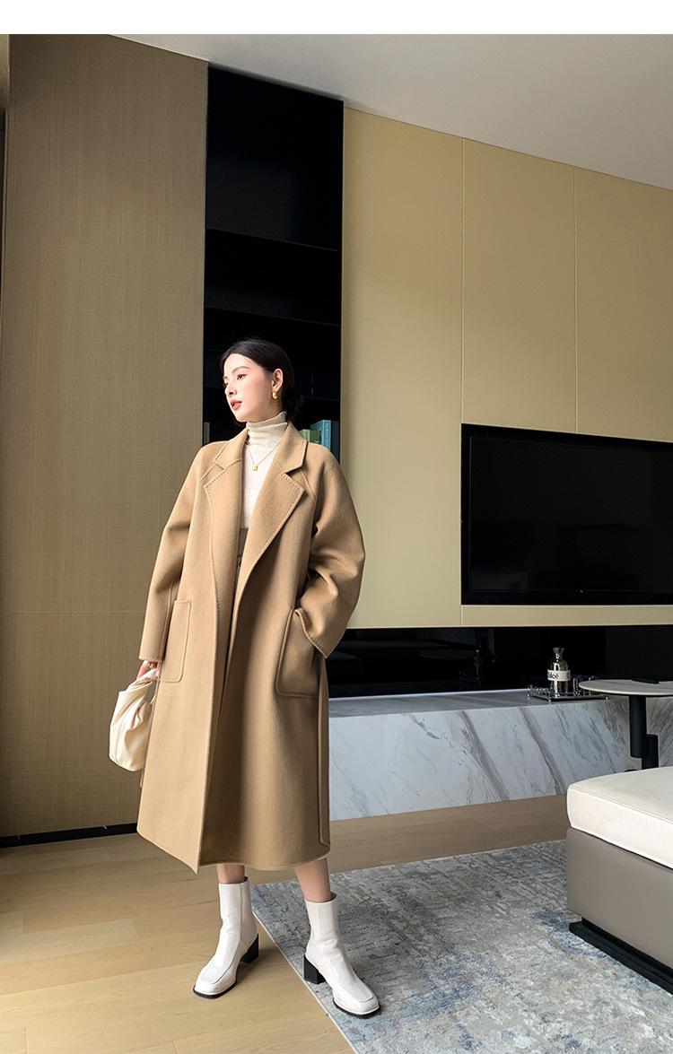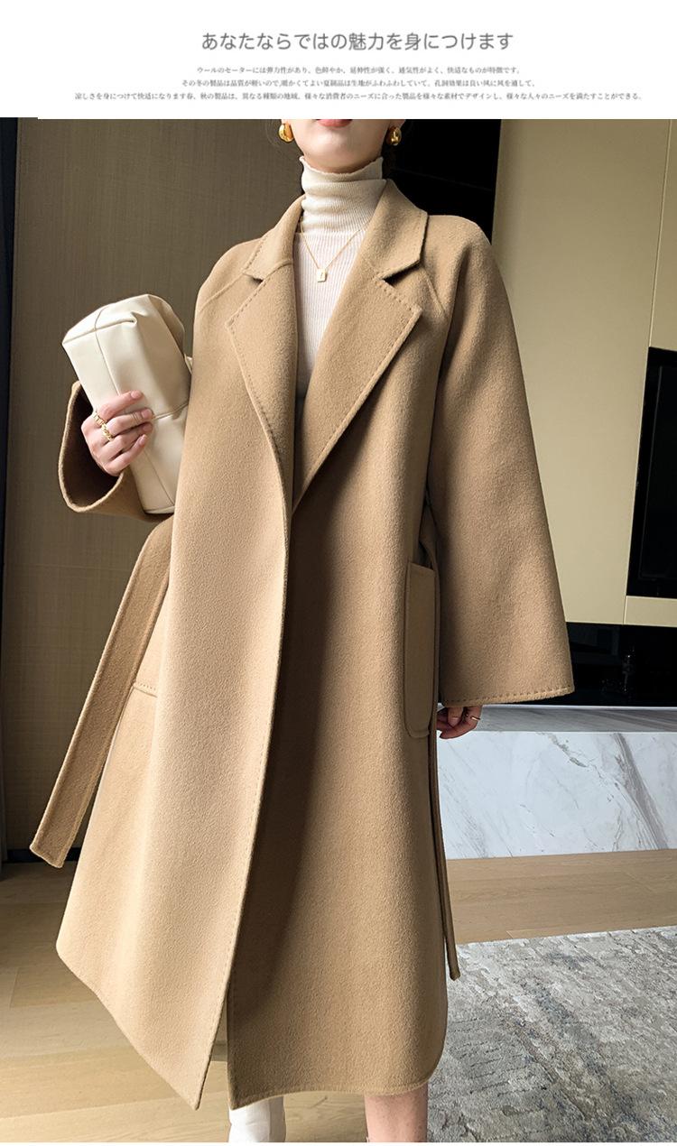 Abrigo de Lana para Otoño e Invierno, Lana de Doble Cara, Abrigo Holgado para Mujer, Estilo Traje, Extralargo con Cinturón, 100% Lana, Sobre la Rodilla, Estilo Elegante
