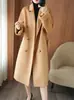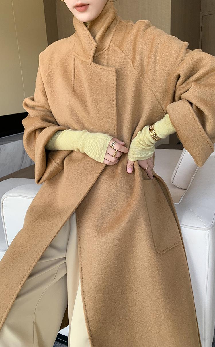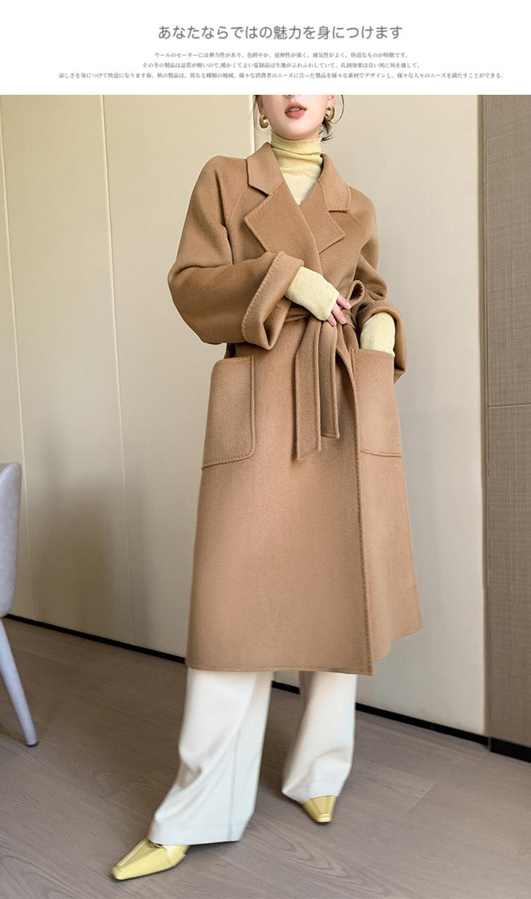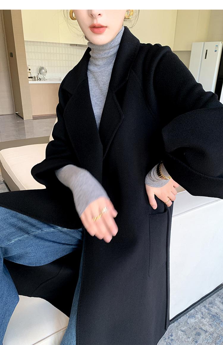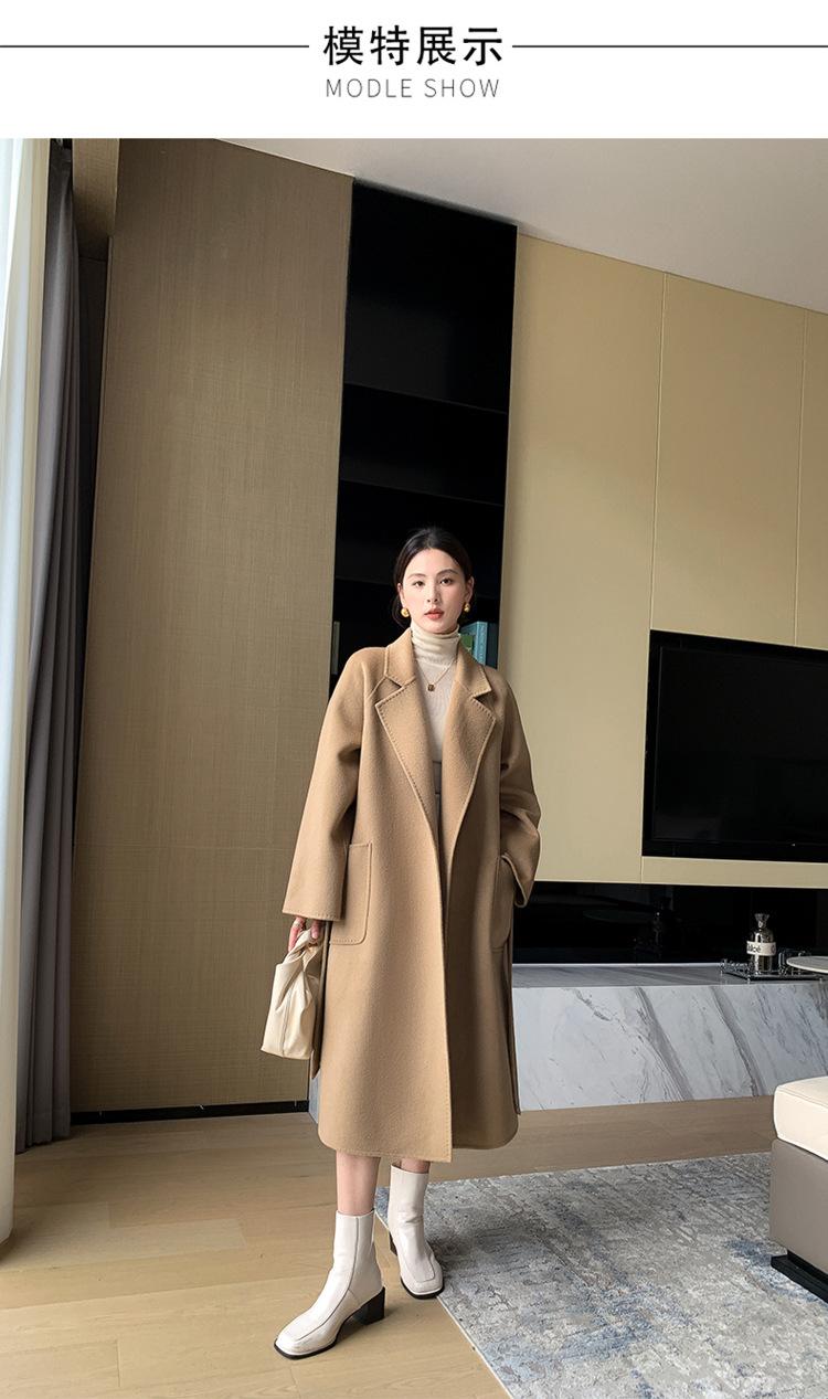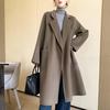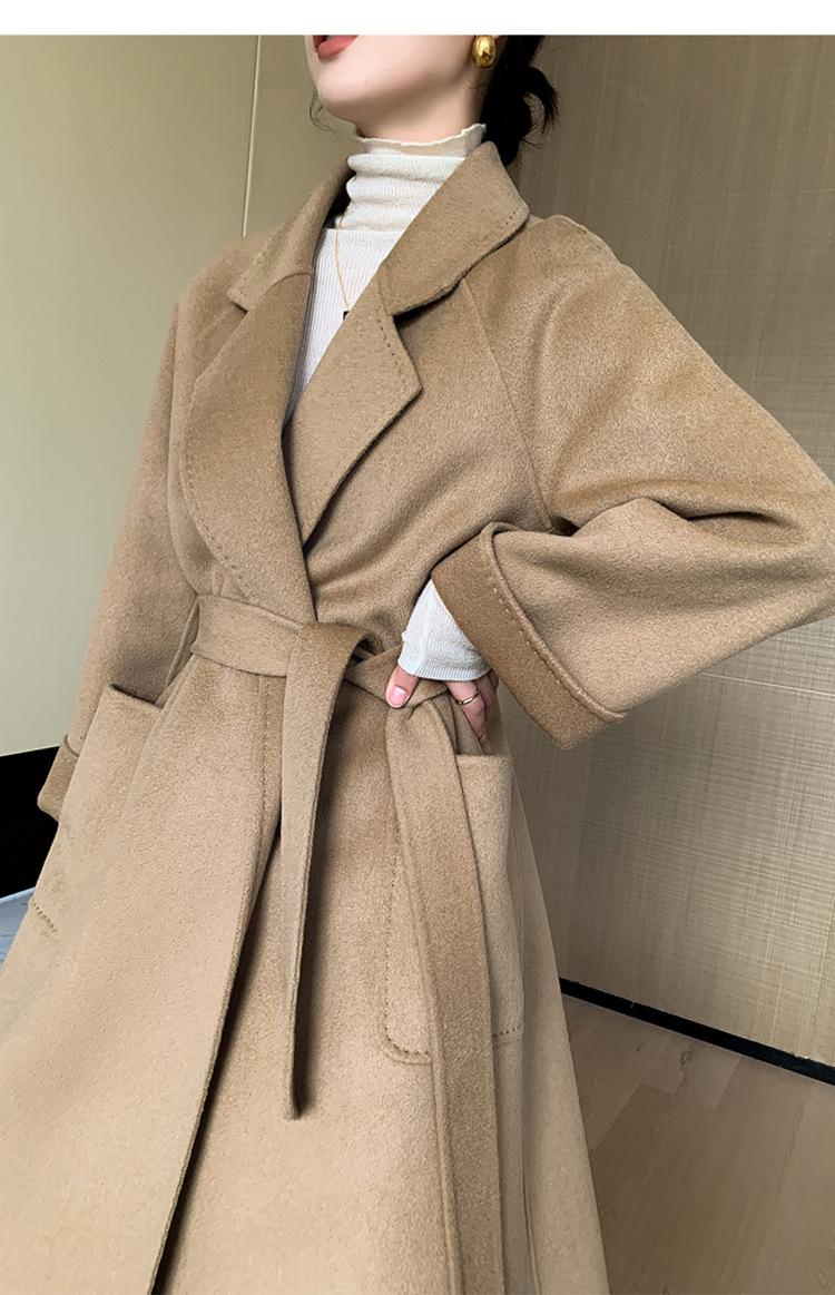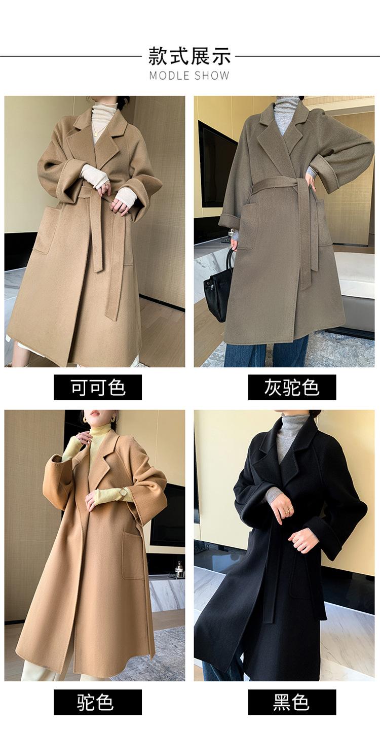 Abrigo de Lana para Otoño e Invierno, Lana de Doble Cara, Abrigo Holgado para Mujer, Estilo Traje, Extralargo con Cinturón, 100% Lana, Sobre la Rodilla, Estilo Elegante