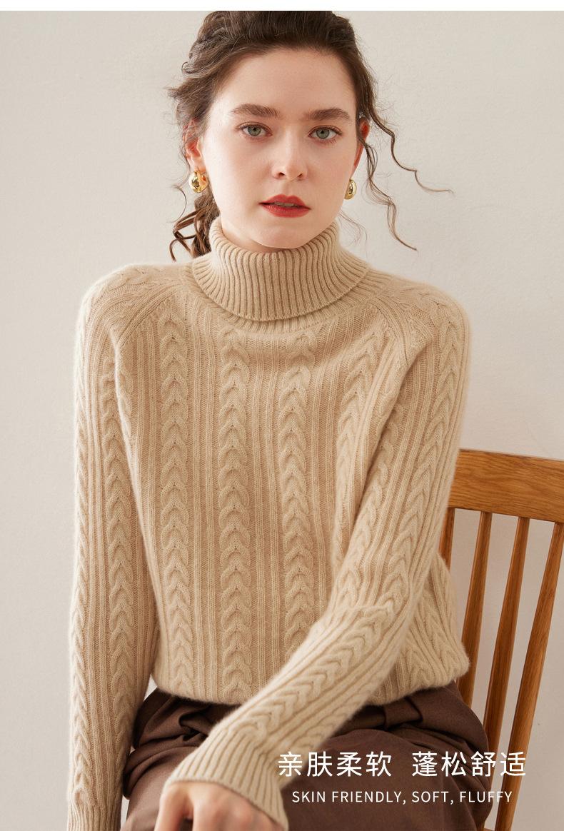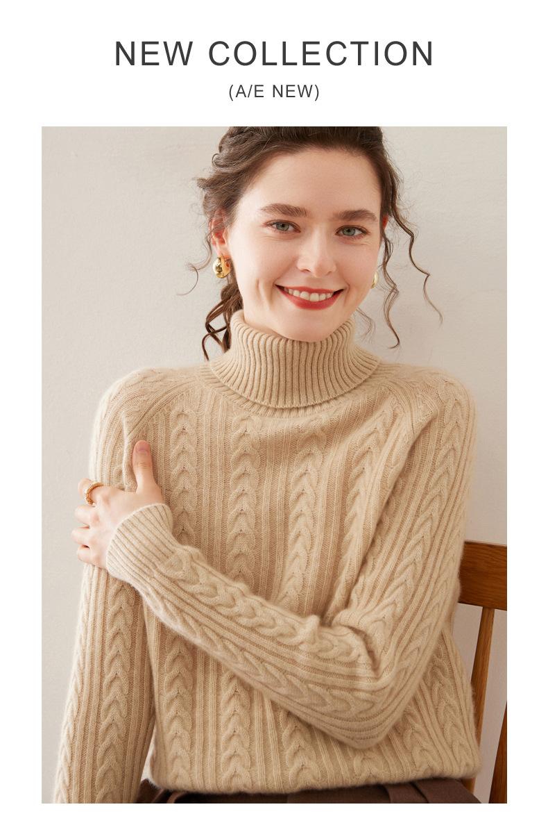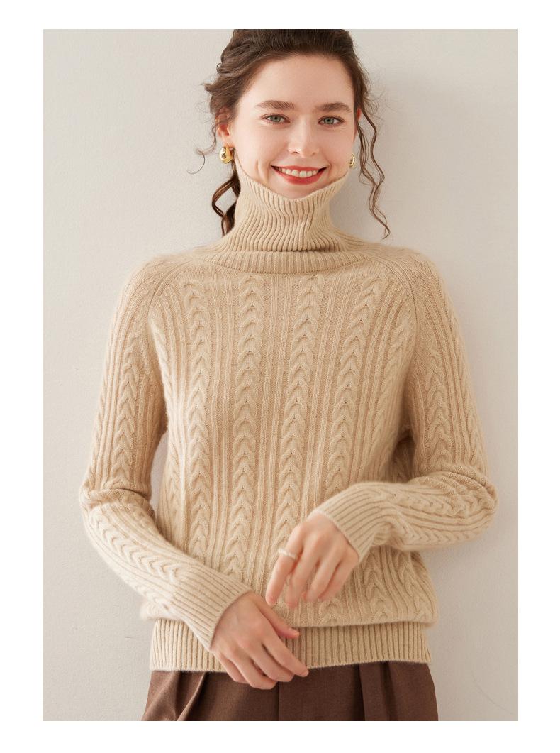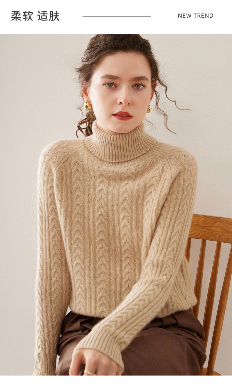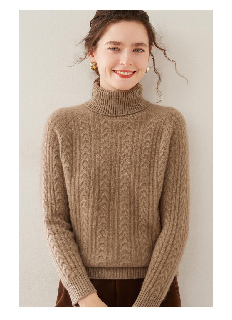 Suéter de Mujer de Cuello Alto con Trenza de Flor, Manga Raglán, Color Sólido, Elegante, para Viaje, Casual, Sencillo, a la Moda, Holgado, de Cachemira Tejido