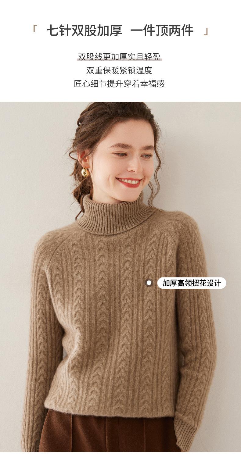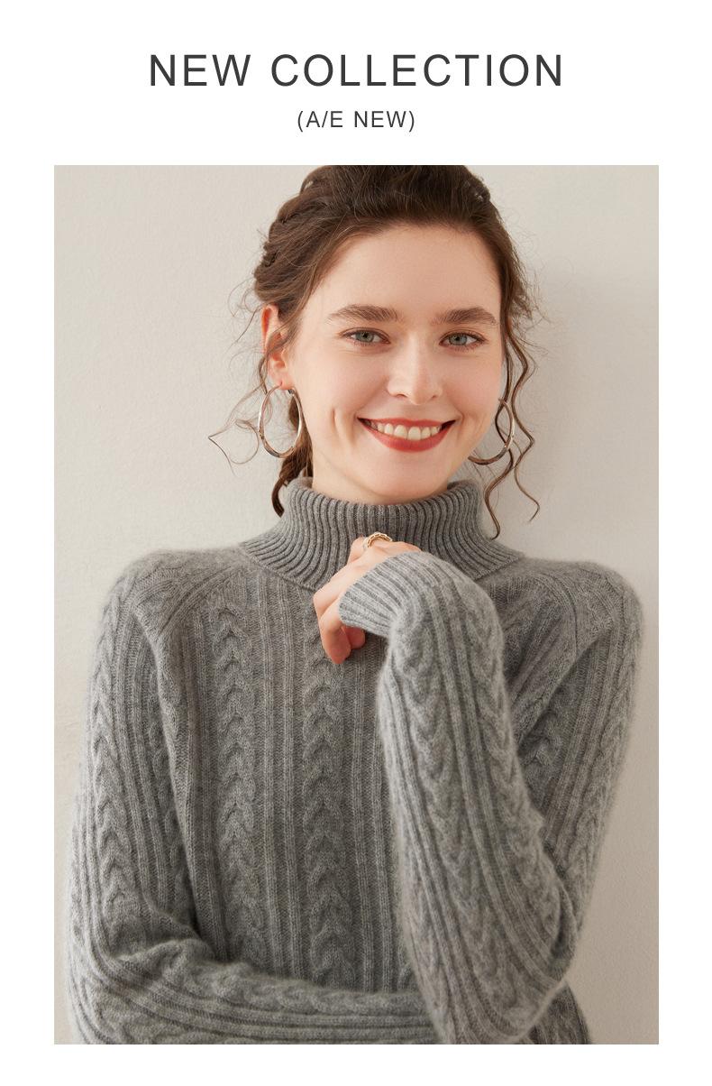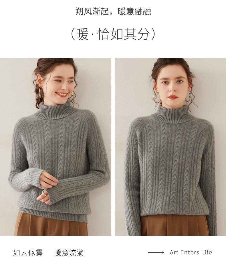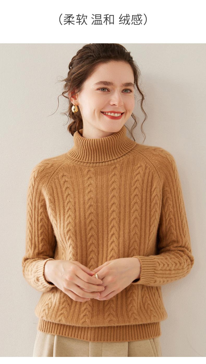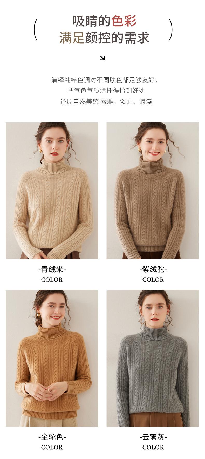 Suéter de Mujer de Cuello Alto con Trenza de Flor, Manga Raglán, Color Sólido, Elegante, para Viaje, Casual, Sencillo, a la Moda, Holgado, de Cachemira Tejido