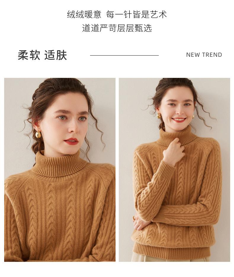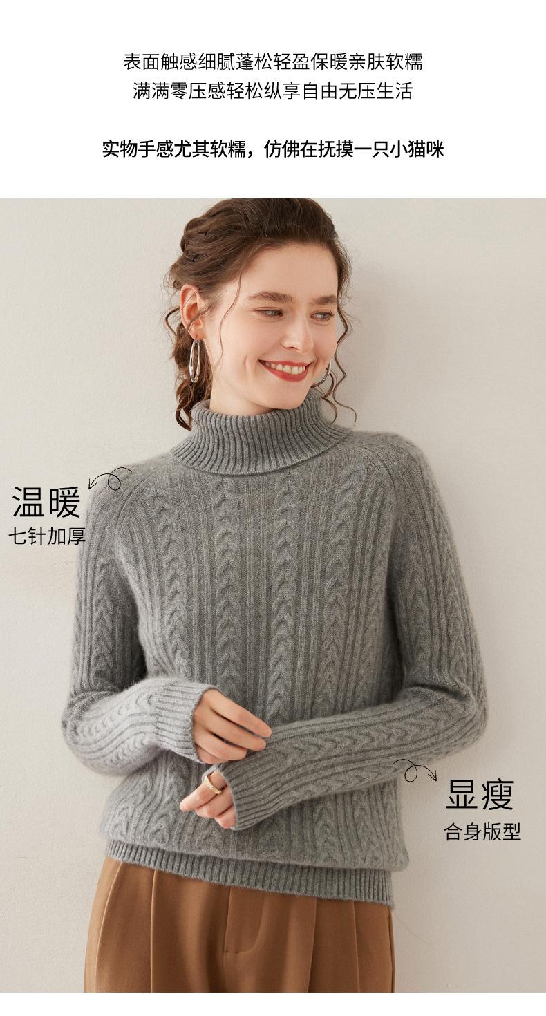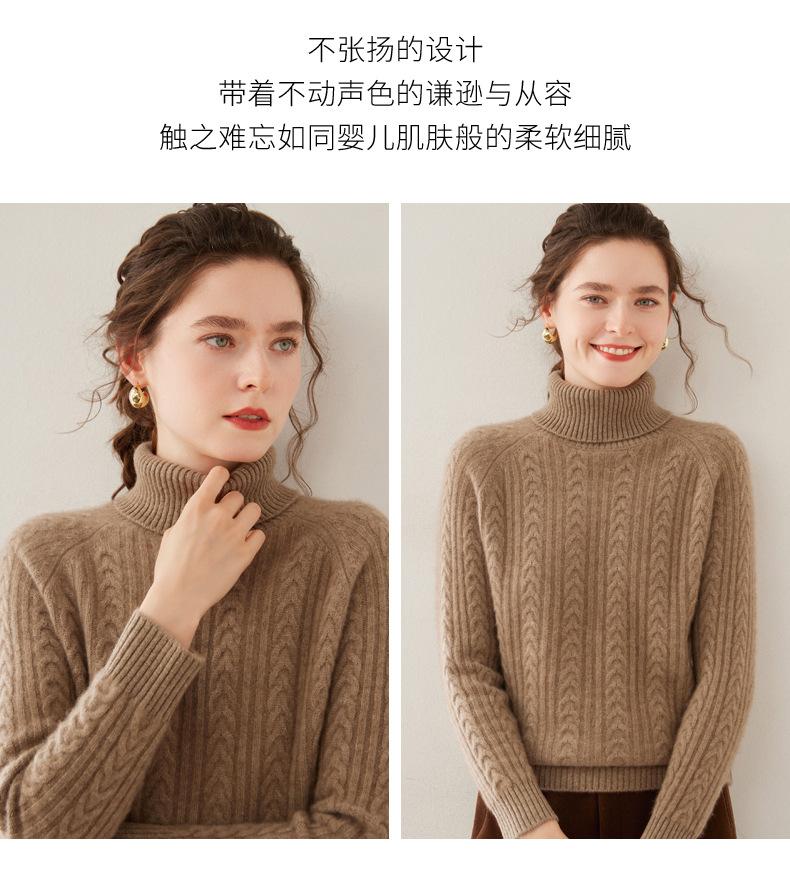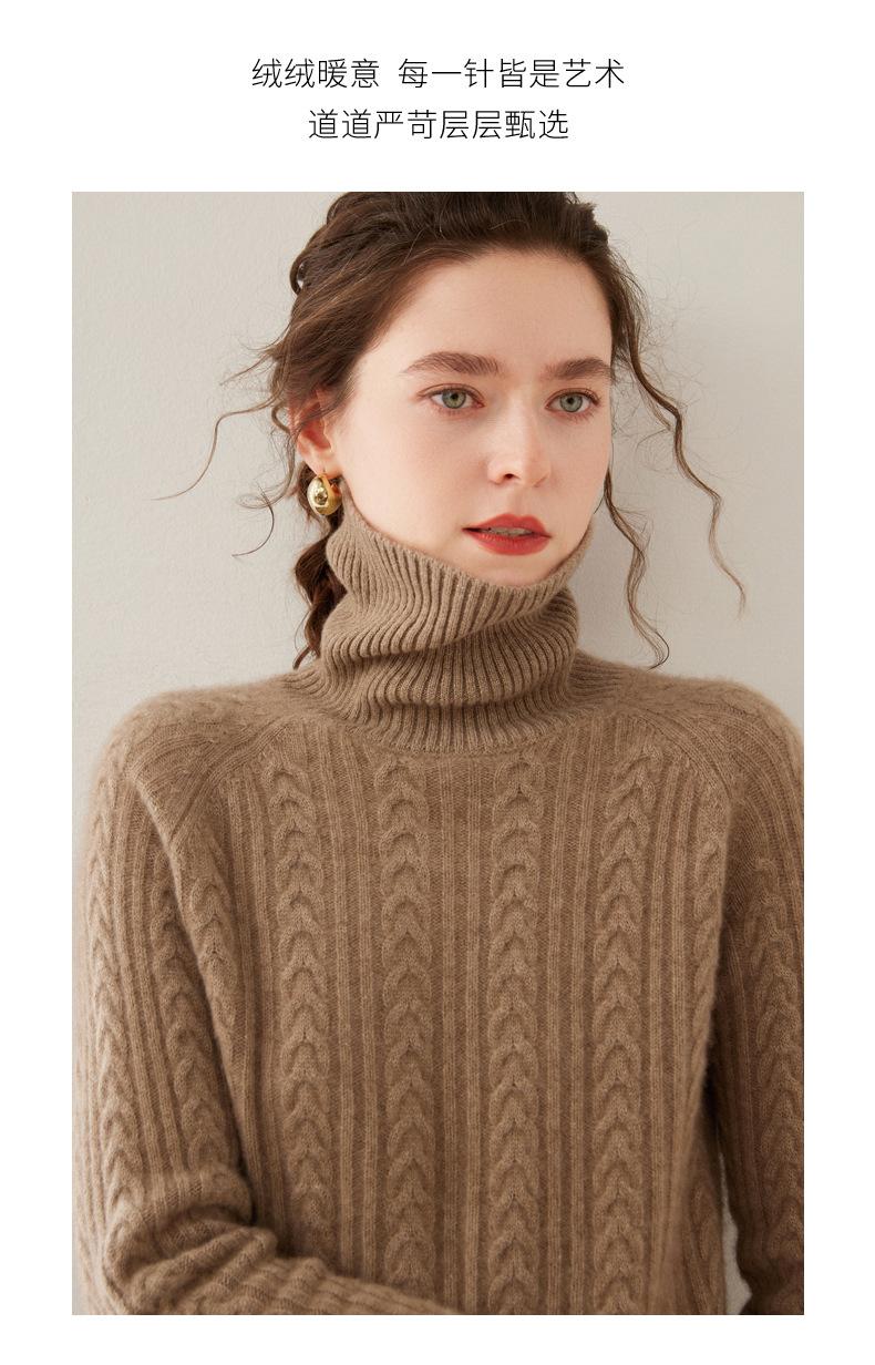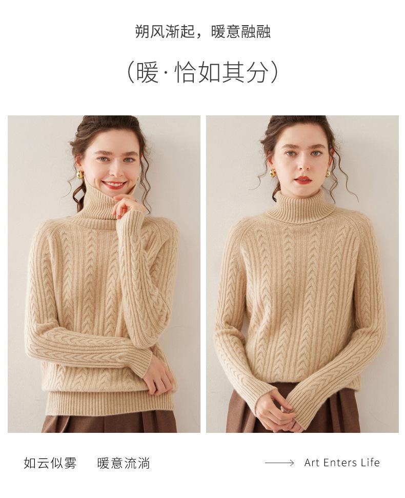 Suéter de Mujer de Cuello Alto con Trenza de Flor, Manga Raglán, Color Sólido, Elegante, para Viaje, Casual, Sencillo, a la Moda, Holgado, de Cachemira Tejido