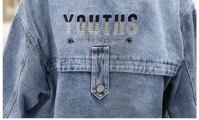 Chaqueta vaquera bordada con letras para mujer, primavera y otoño 2024, nueva chaqueta corta holgada de estilo occidental de moda coreana, top de moda