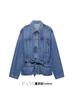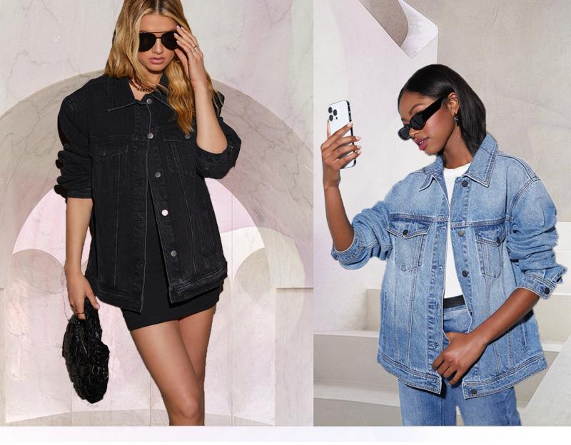 2025 Nueva Ropa Europea y Americana Transfronteriza Tops de Mezclilla Lavada para Mujer Casuales Sueltos de Manga Larga Top