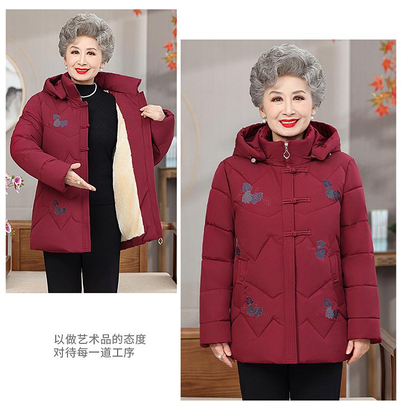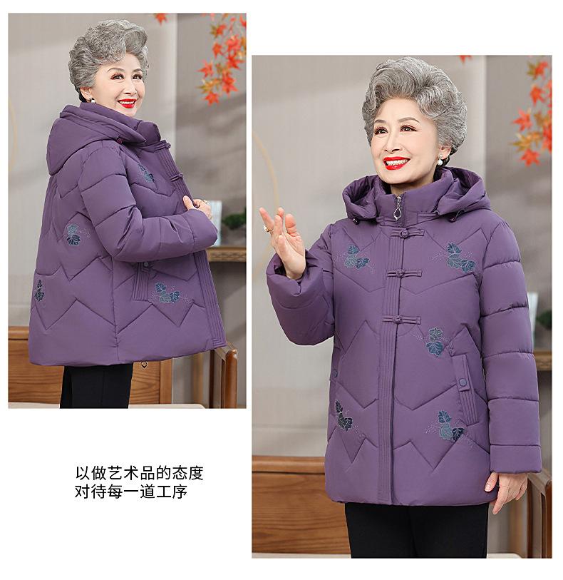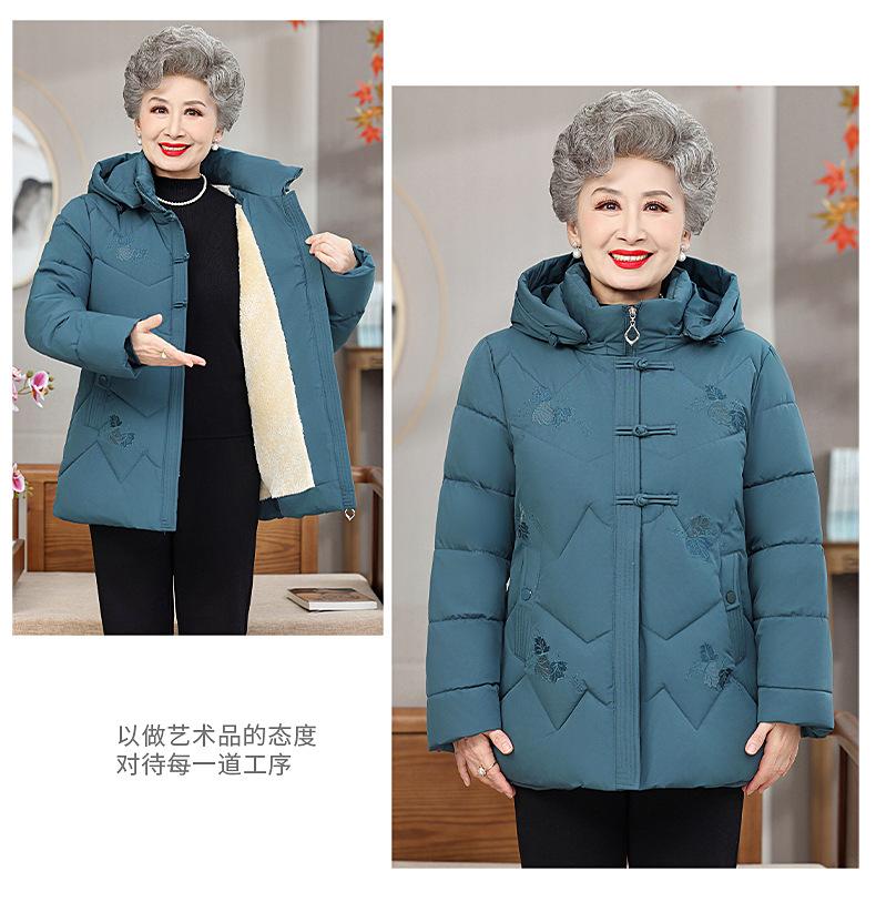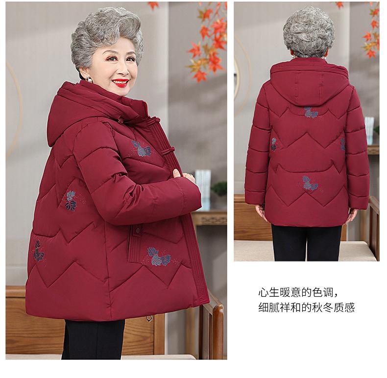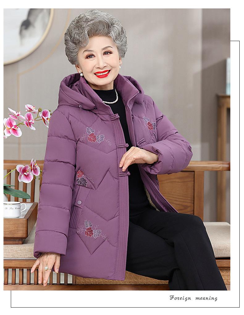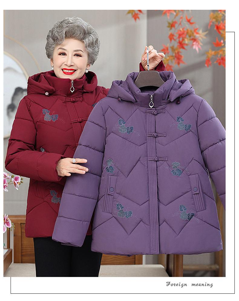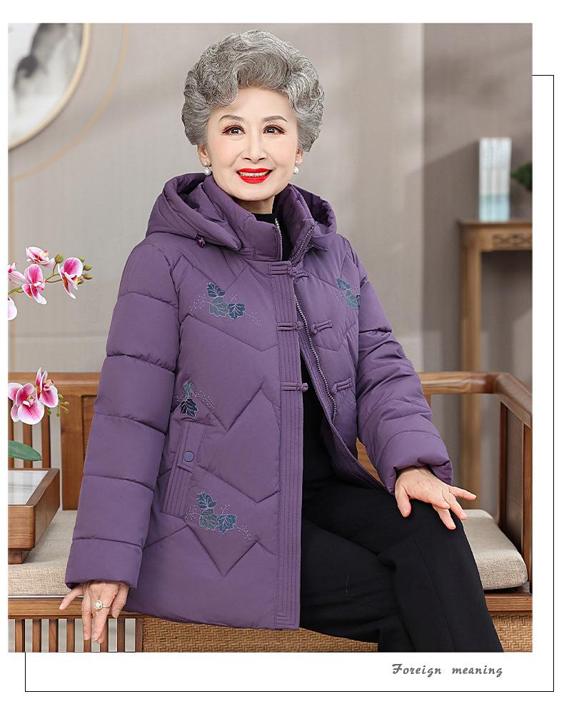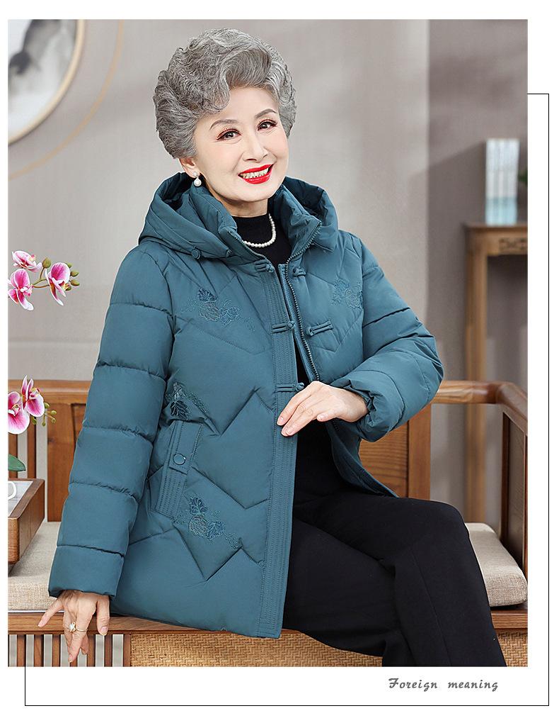 Ropa de invierno con capucha y relleno de algodón para abuelas. Chaqueta con forro polar grueso y acolchado de algodón para madres. Chaqueta de algodón acolchada de talla grande para señoras mayores.