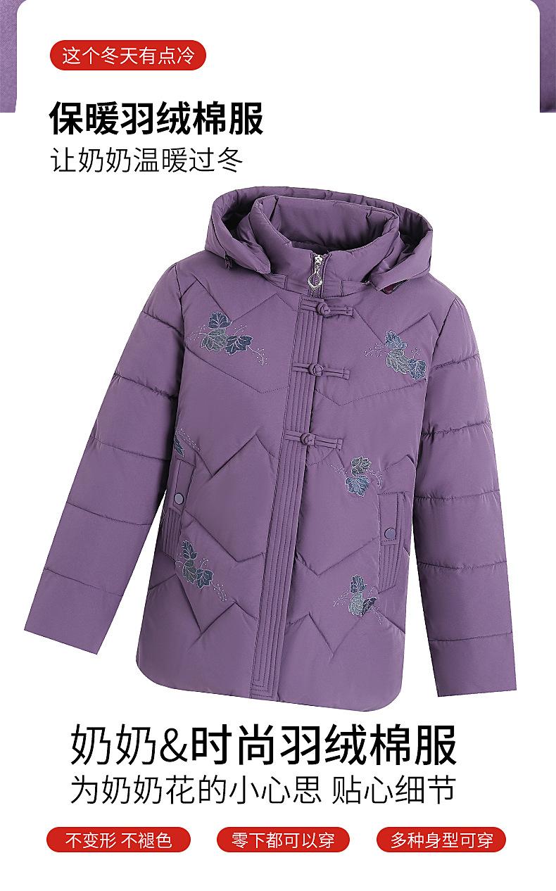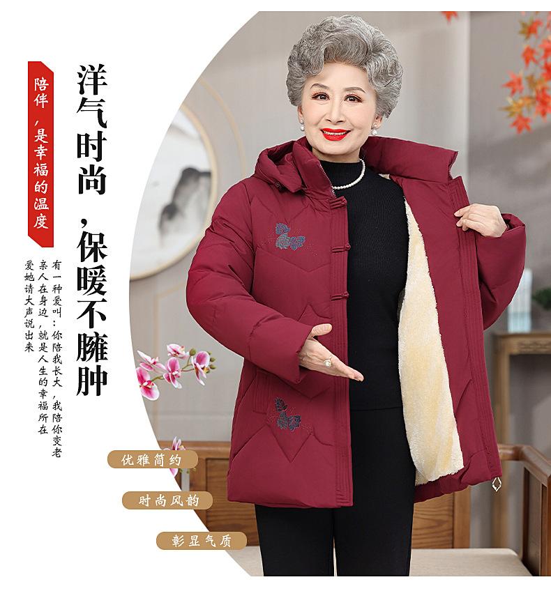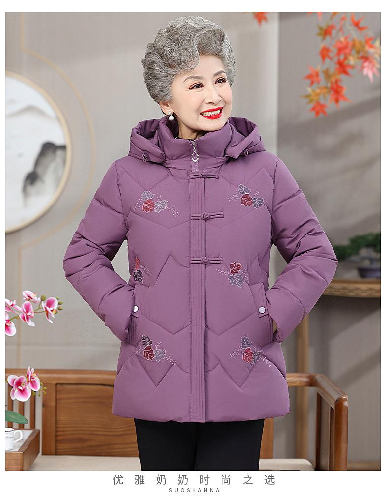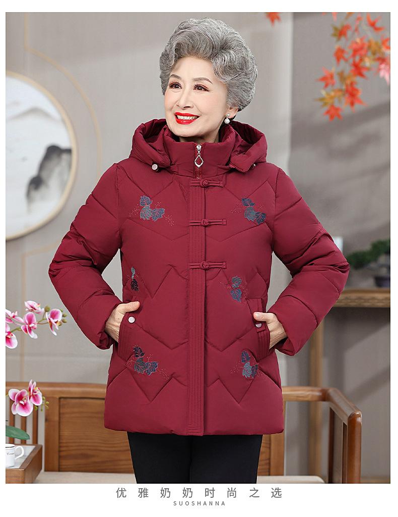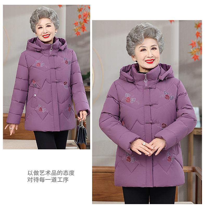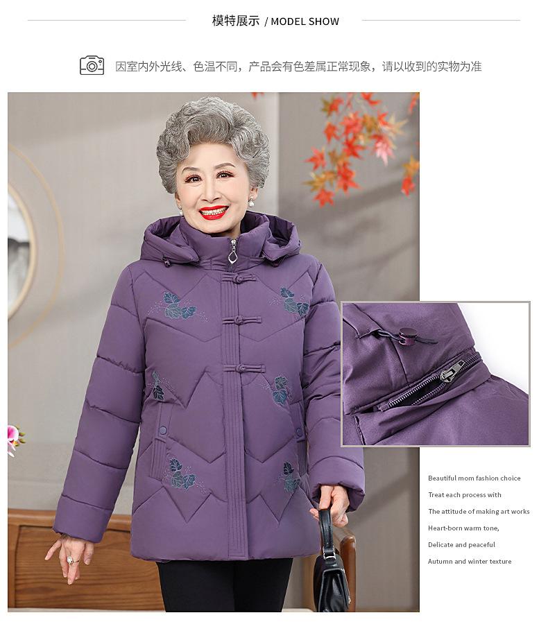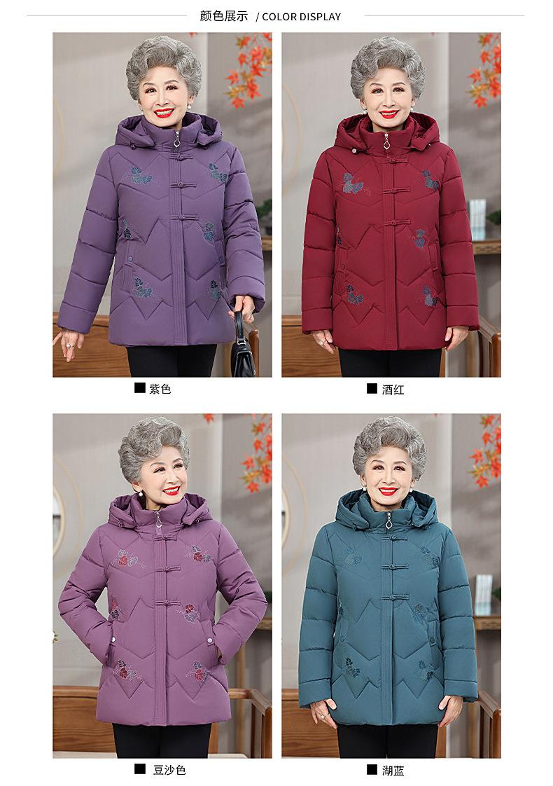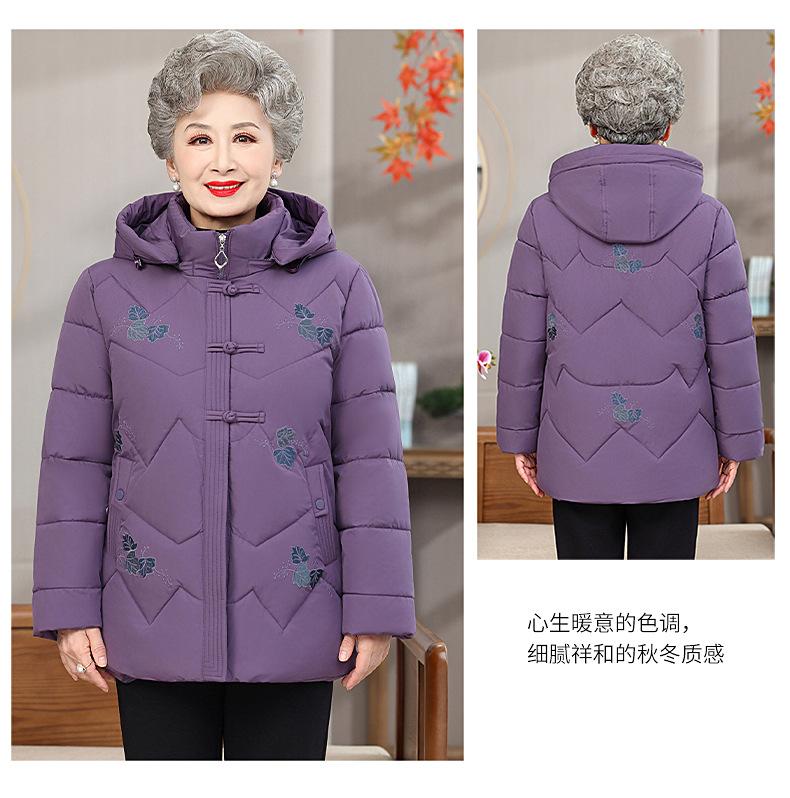 Ropa de invierno con capucha y relleno de algodón para abuelas. Chaqueta con forro polar grueso y acolchado de algodón para madres. Chaqueta de algodón acolchada de talla grande para señoras mayores.