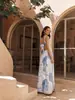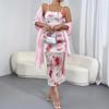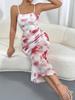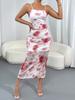 Amazon Transfronterizo Nuevo Ajustado Sin Mangas Sexy Malla de Doble Capa Perspectiva Estampado Floral Elegante Vestido de Tirantes