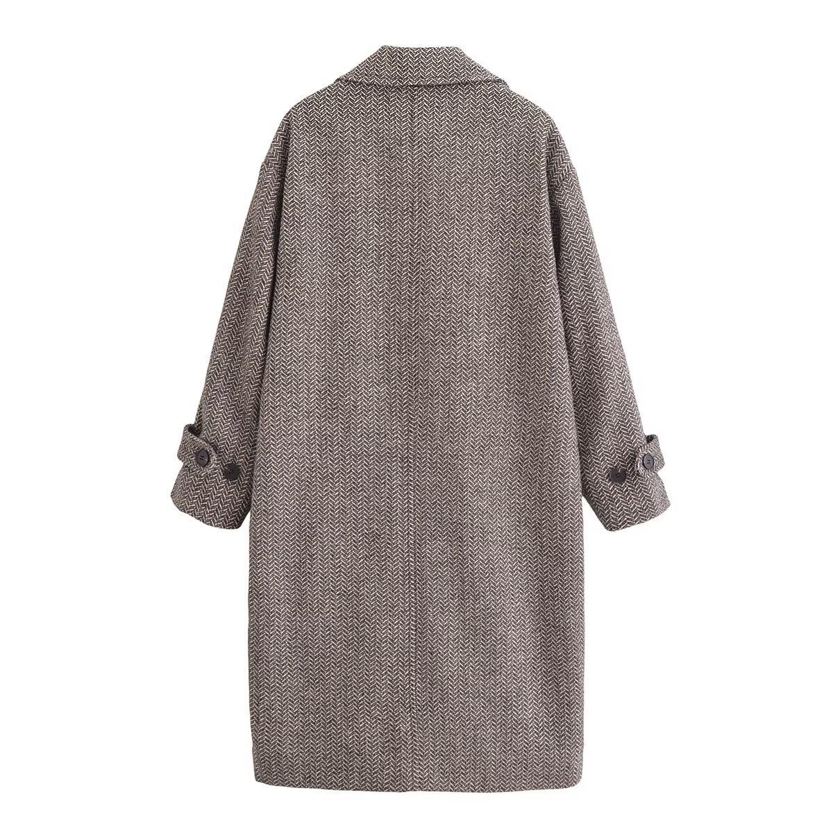 Abrigo de lana de espiga de moda de otoño e invierno 2024 con nuevo temperamento de ropa de mujer europea y americana de comercio exterior transfronterizo de Amazon