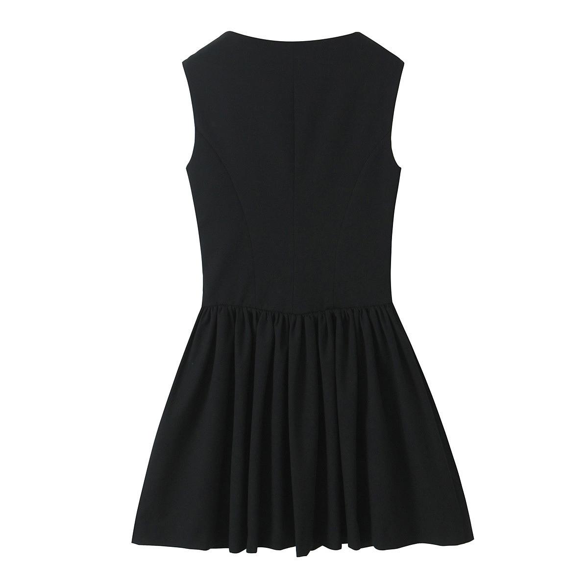 Moda otoño 2024 nuevo vestido plisado decorativo de cuello cuadrado sin mangas transfronterizo Amazon para mujer E62525