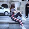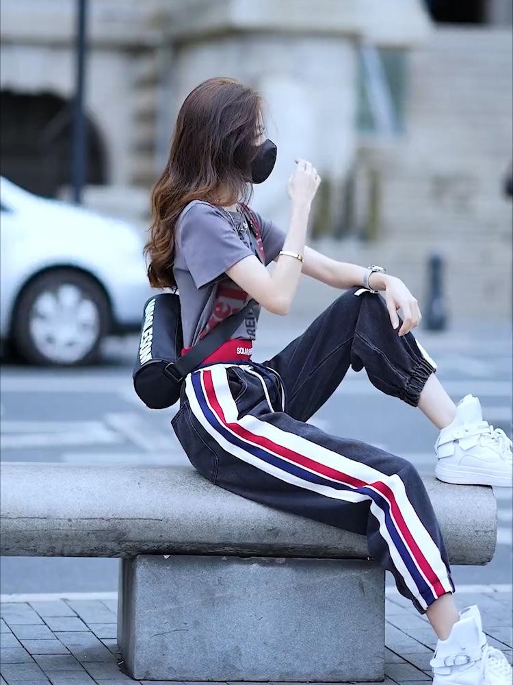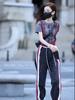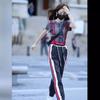 Conjunto deportivo informal pequeño de verano 2024, camiseta de manga corta en contraste con pantalones con cordón, conjunto de dos piezas para mujer