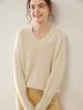 Suéter de cachemira con cuello en V para mujer, jersey de hombro, color liso, manga larga, elegante, informal, suelto, base gruesa.