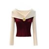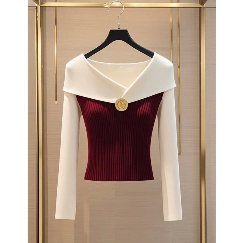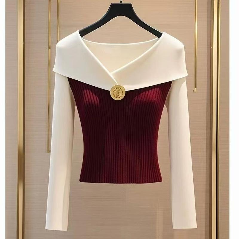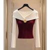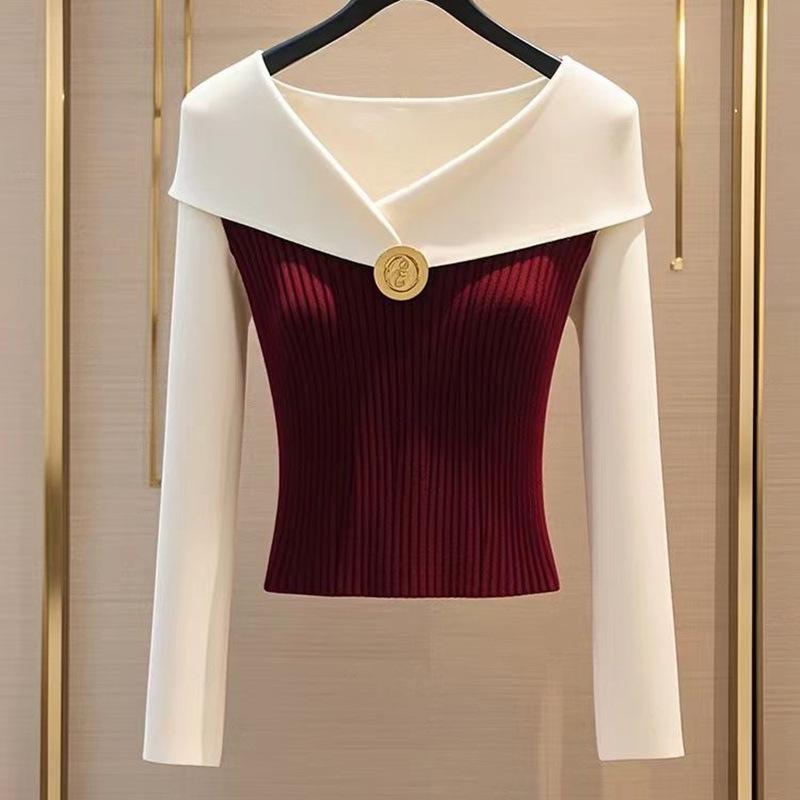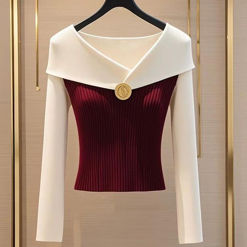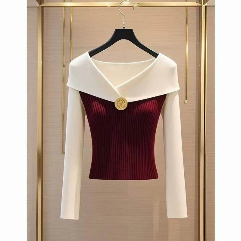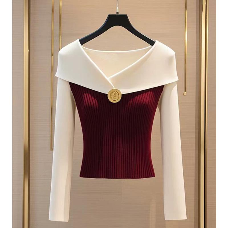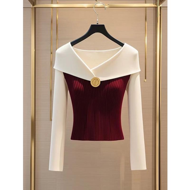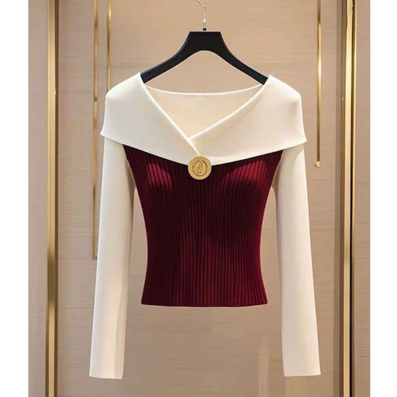 Suéter de punto coreano chic color rojo vino para mujer 2024 otoño e invierno nuevo estilo extranjero chic de alta gama abrigo base interior