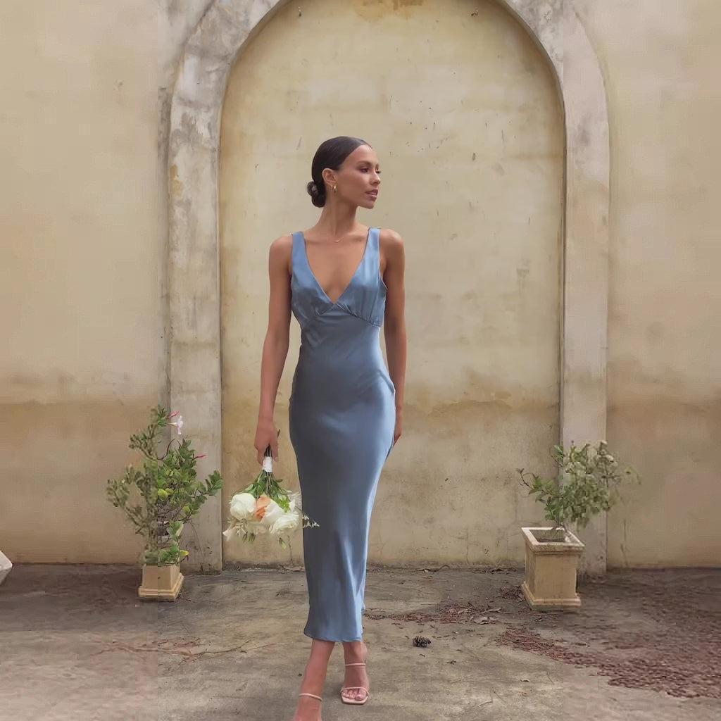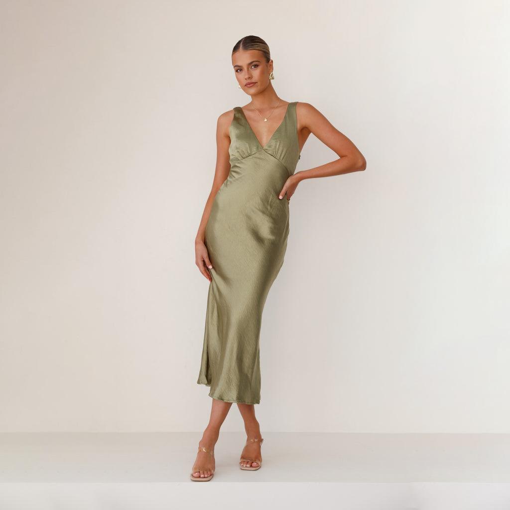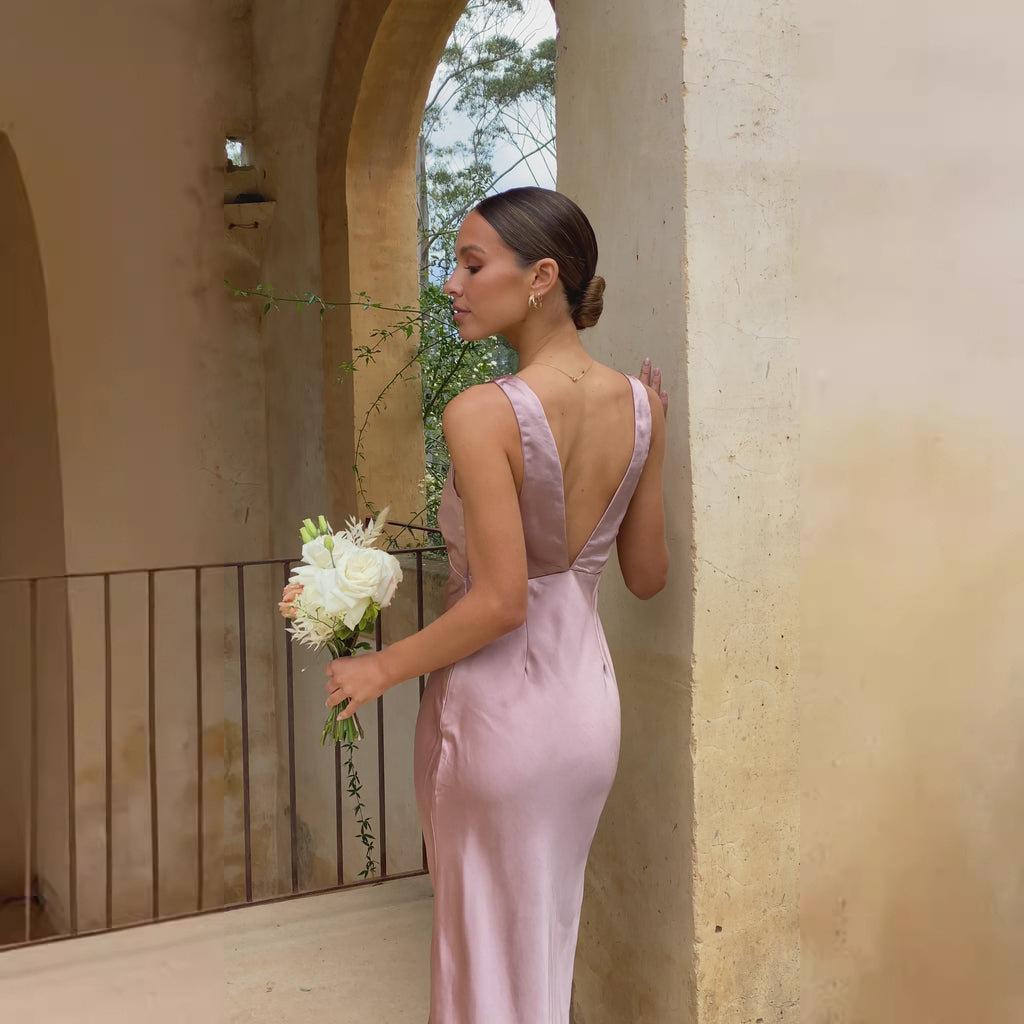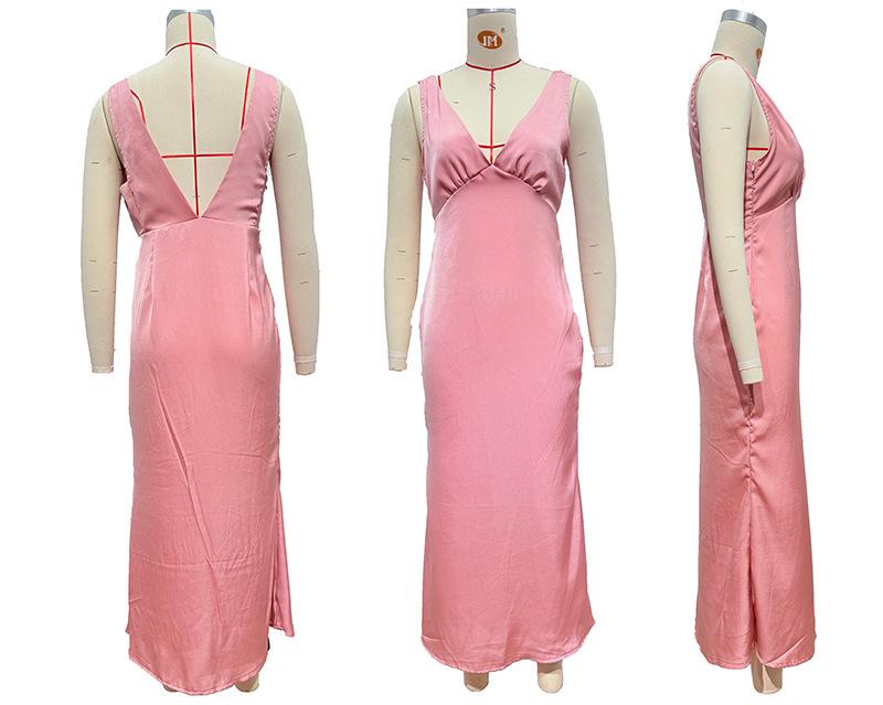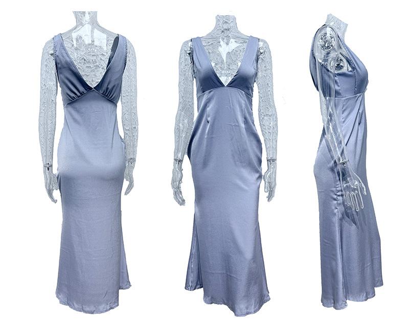 Ropa Europea y Americana 2025 Nuevo Sexy Profundo V Espalda Descubierta Moda Falda Slim Midi Vestido con Tirantes para Mujer