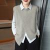 Chaleco interior holgado de lana pura para mujer, de color liso, informal, sencillo y elegante, con cuello de un solo carácter