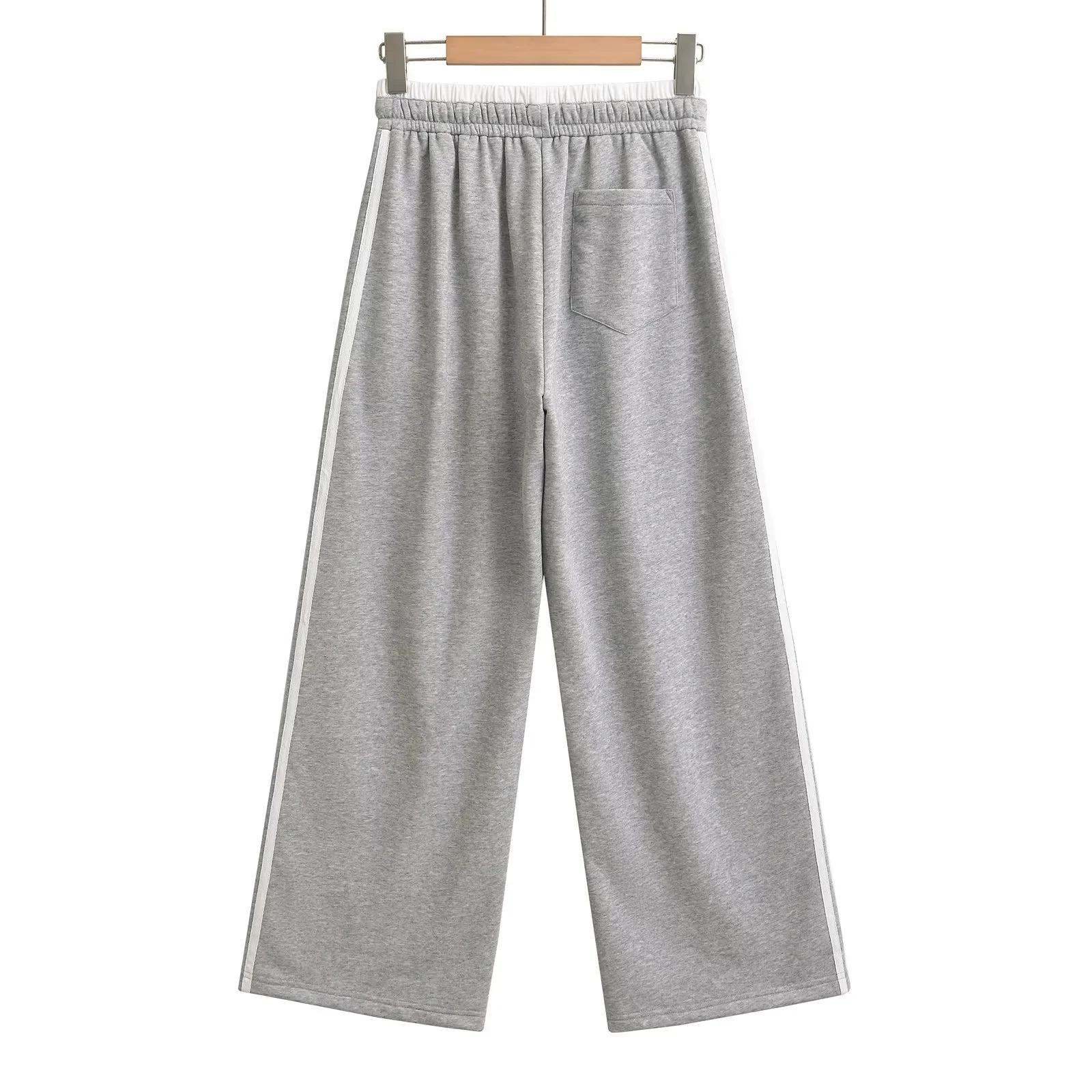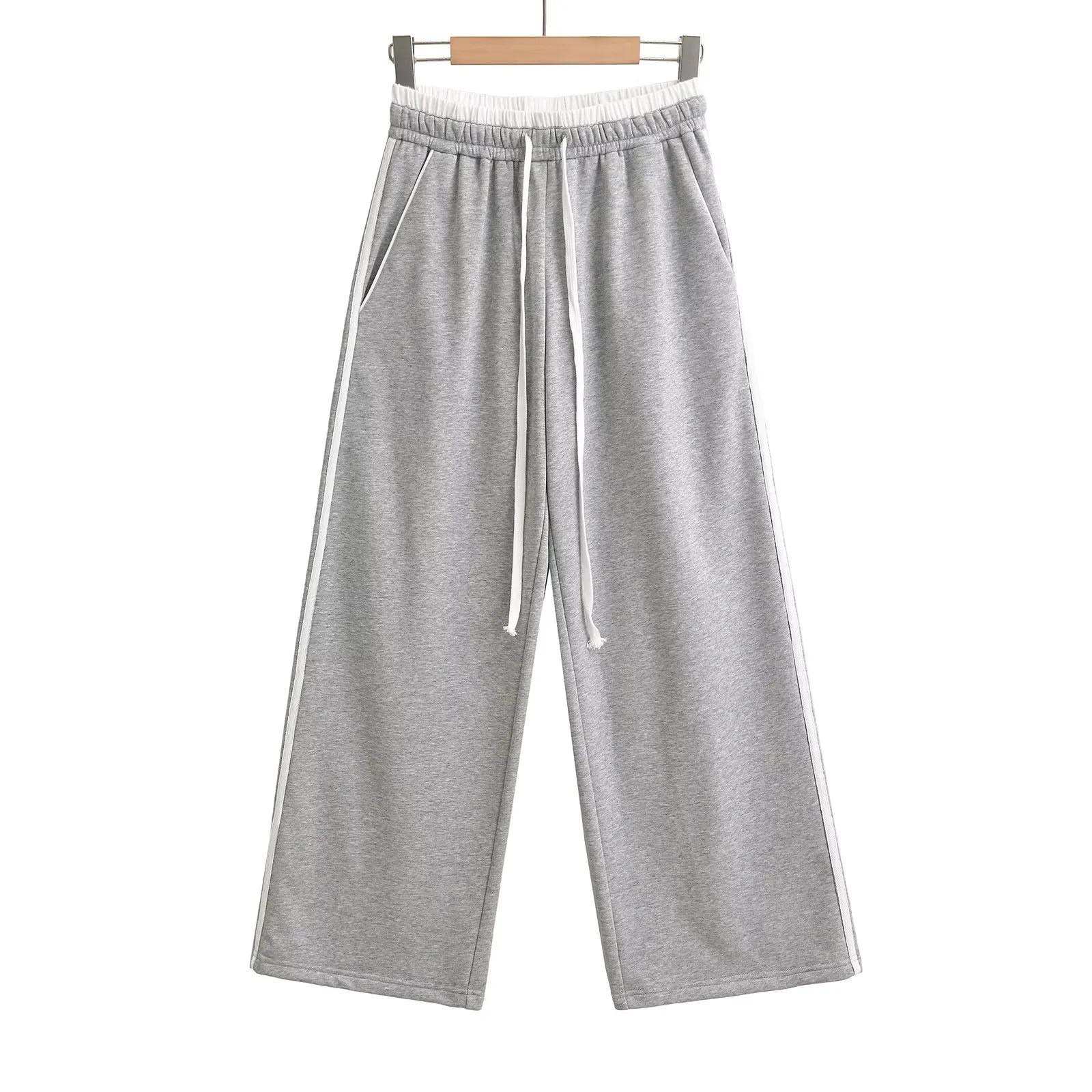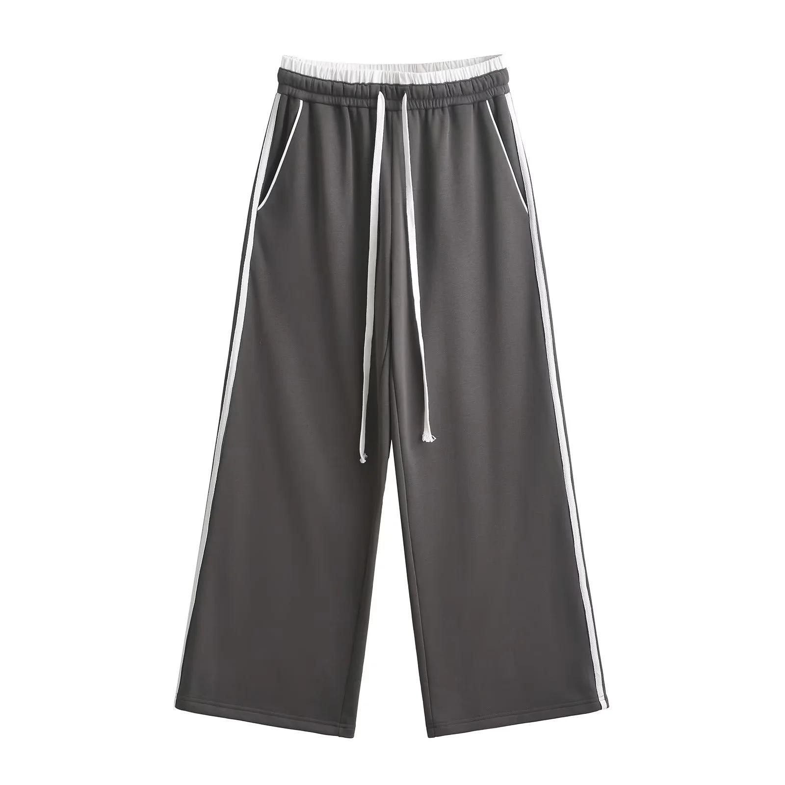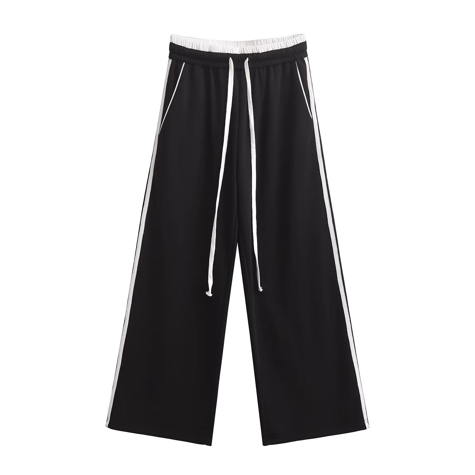 Pantalones casuales sexys de cintura baja para chica caliente 2024 otoño e invierno nuevos combinan con todo costuras a rayas cordón sueltos pierna ancha pantalones deportivos
