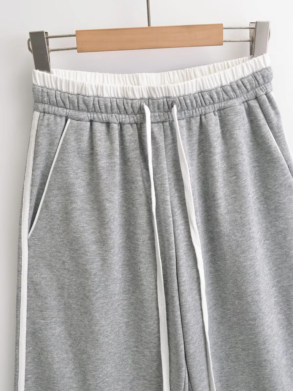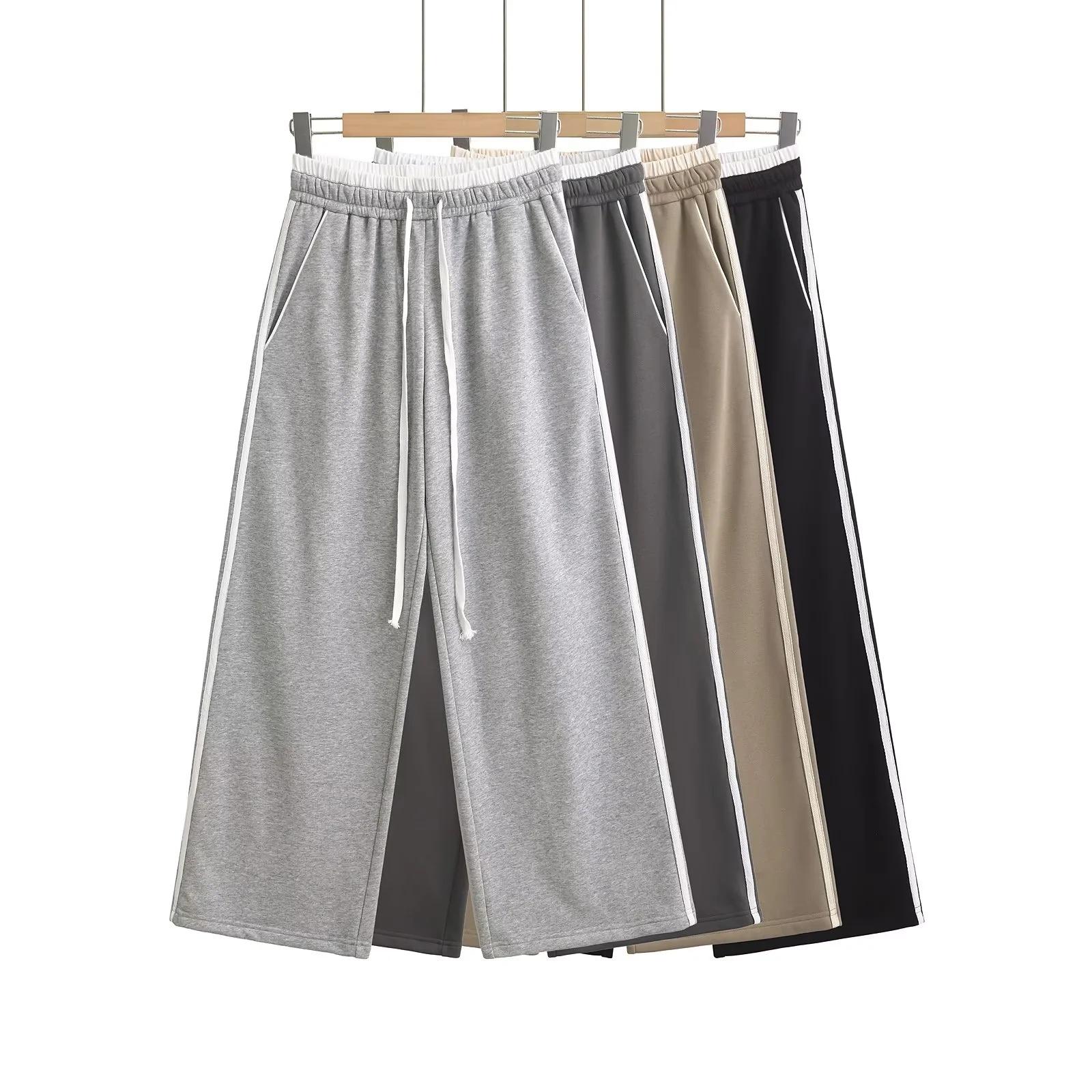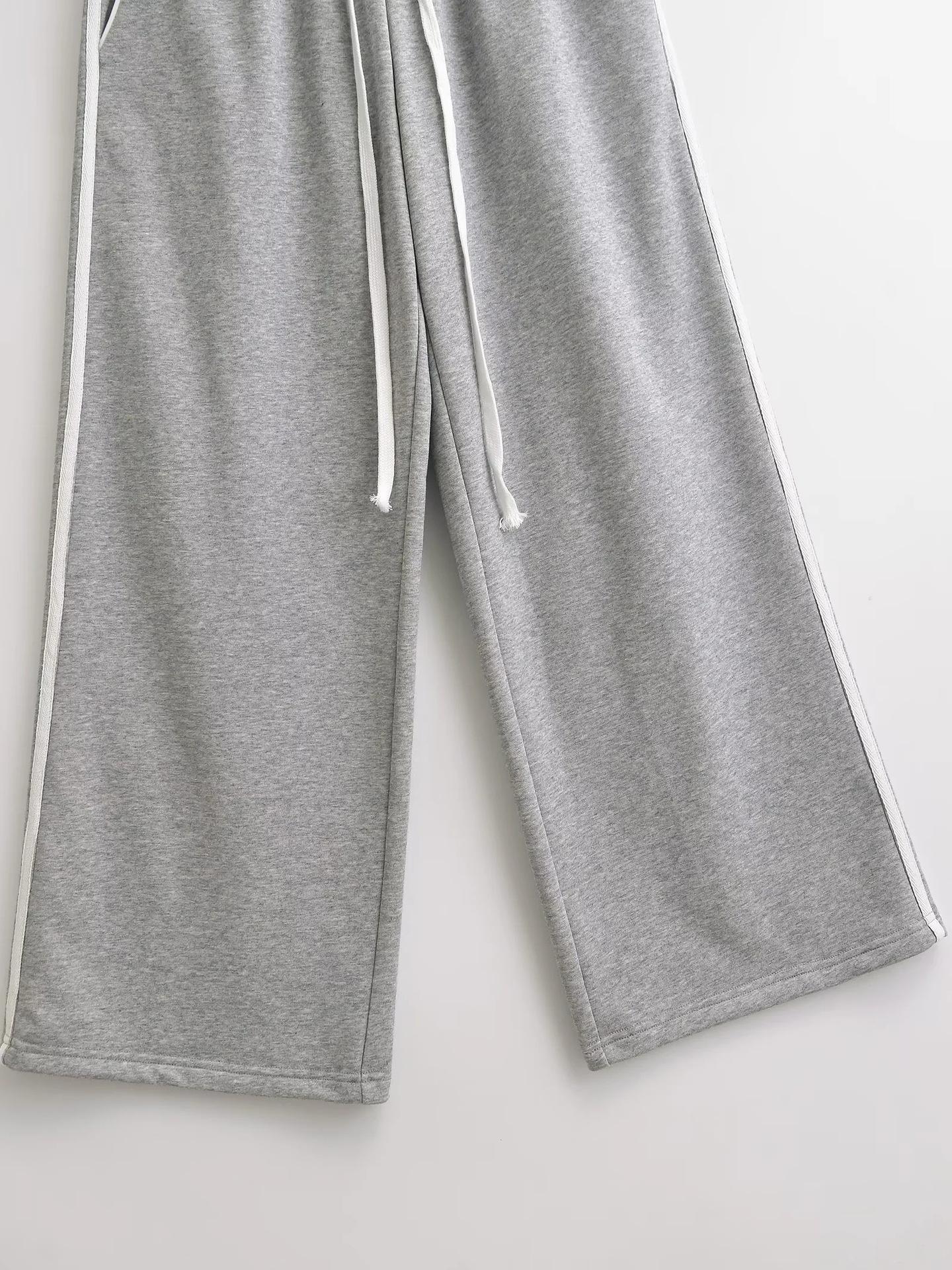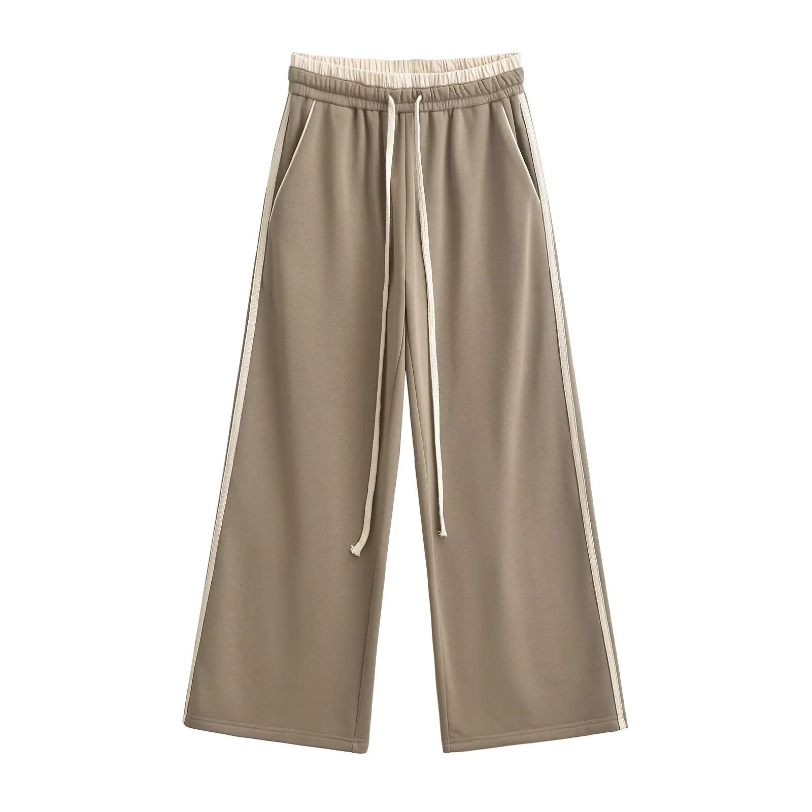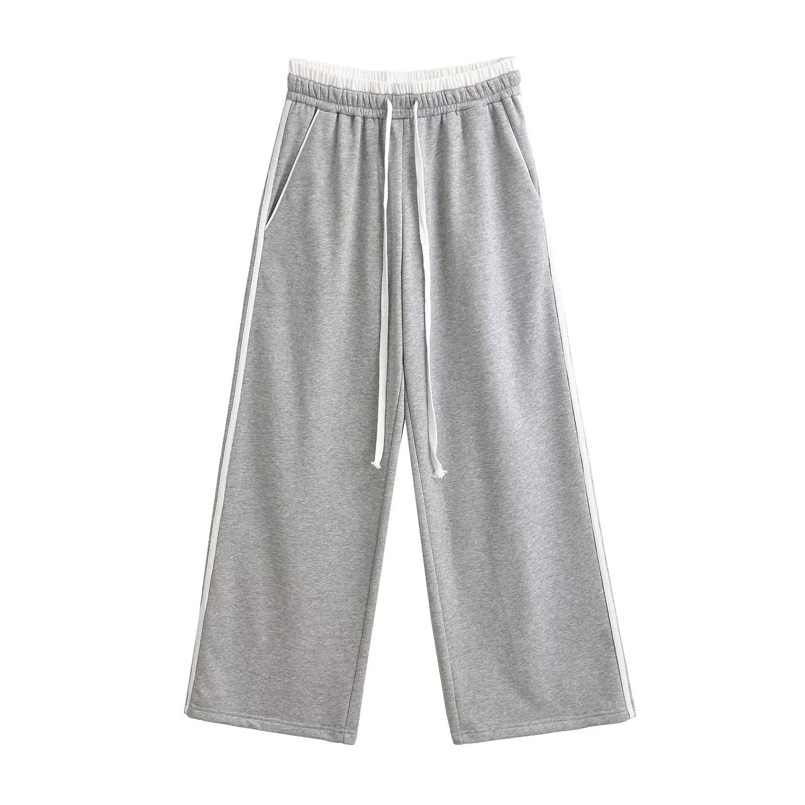 Pantalones casuales sexys de cintura baja para chica caliente 2024 otoño e invierno nuevos combinan con todo costuras a rayas cordón sueltos pierna ancha pantalones deportivos