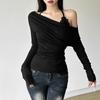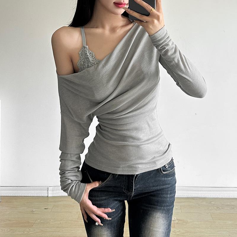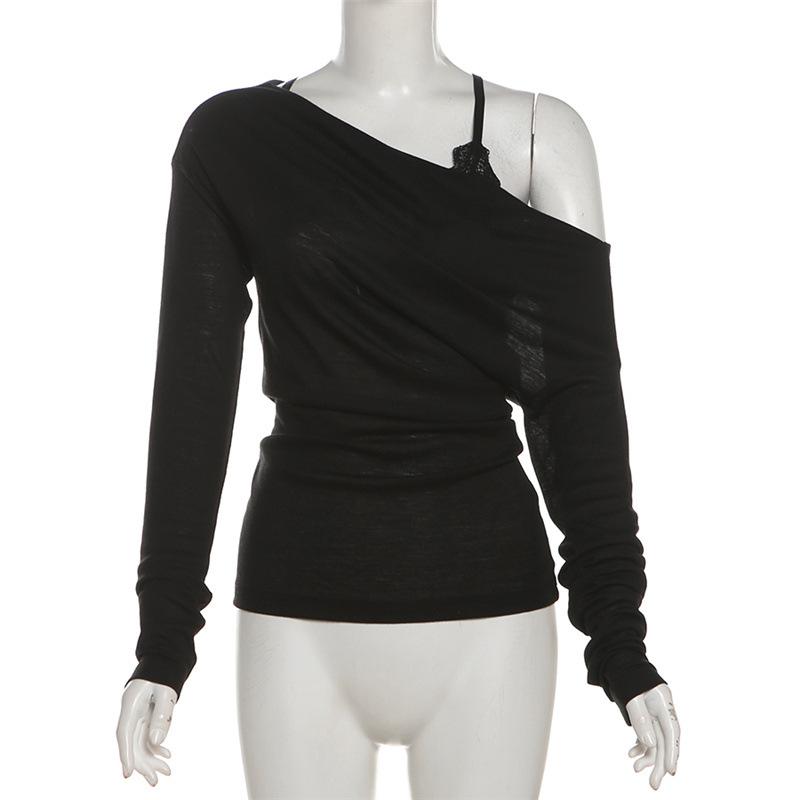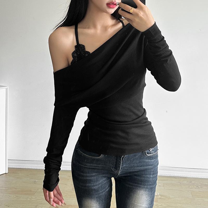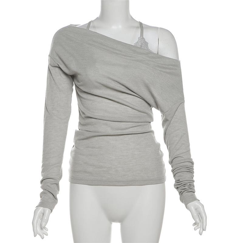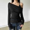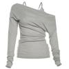 2024 estilo europeo y americano transfronterizo otoño nuevo para mujer color sólido ajustado moda callejera cuello diagonal manga larga top conjunto de dos piezas