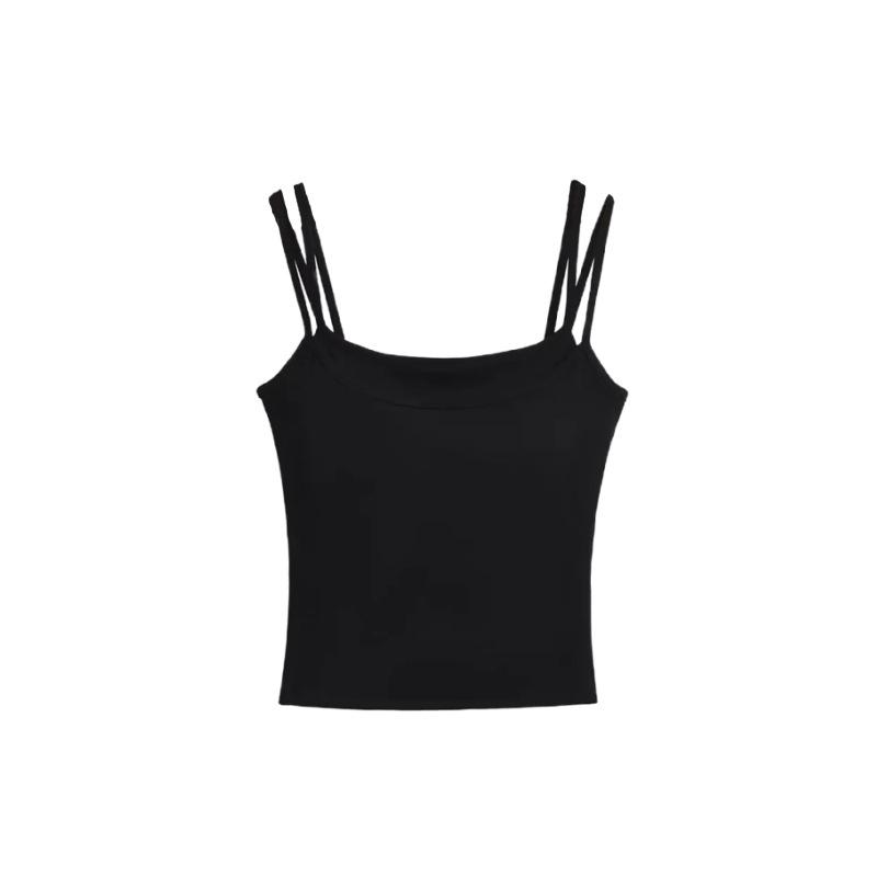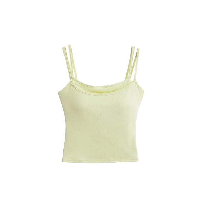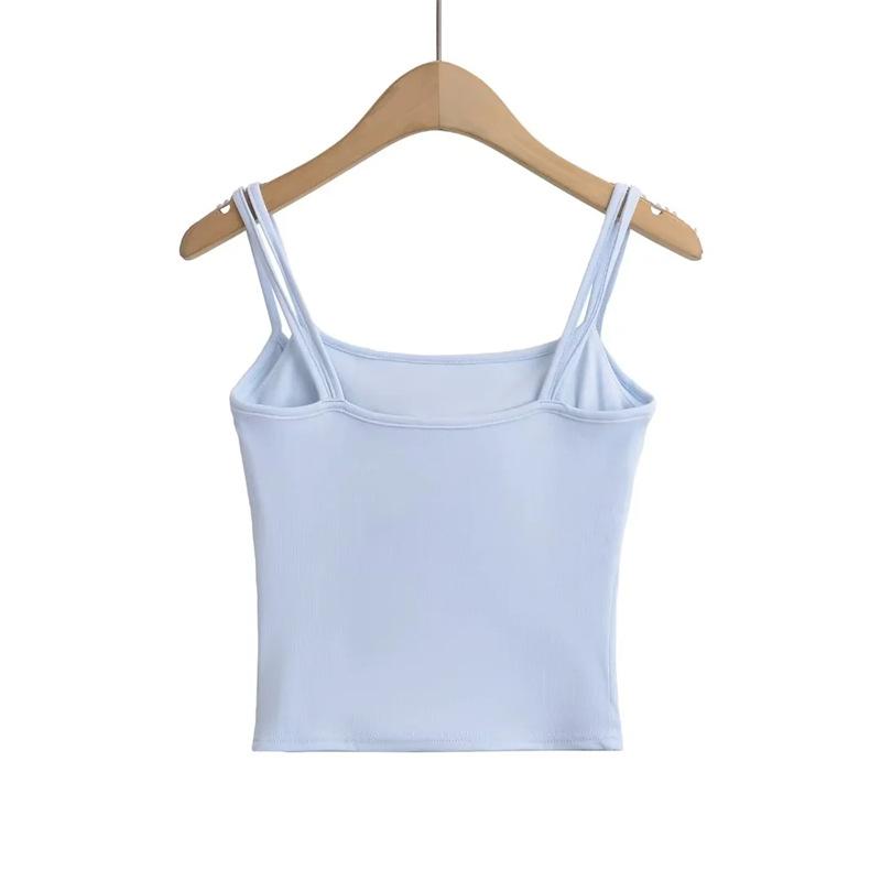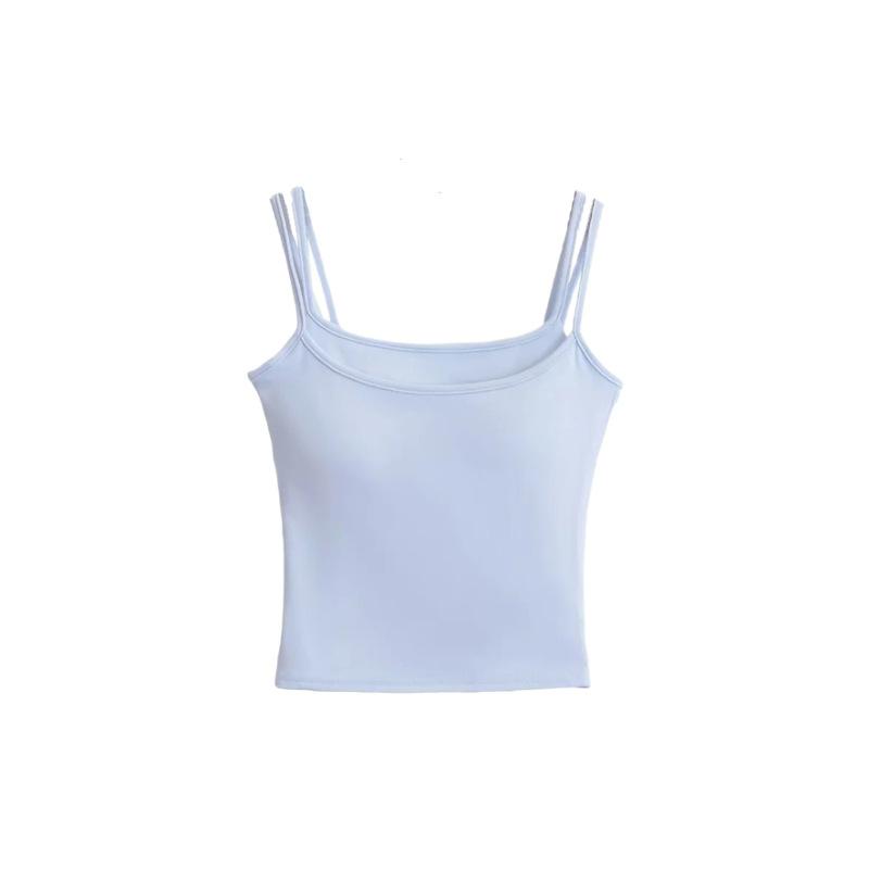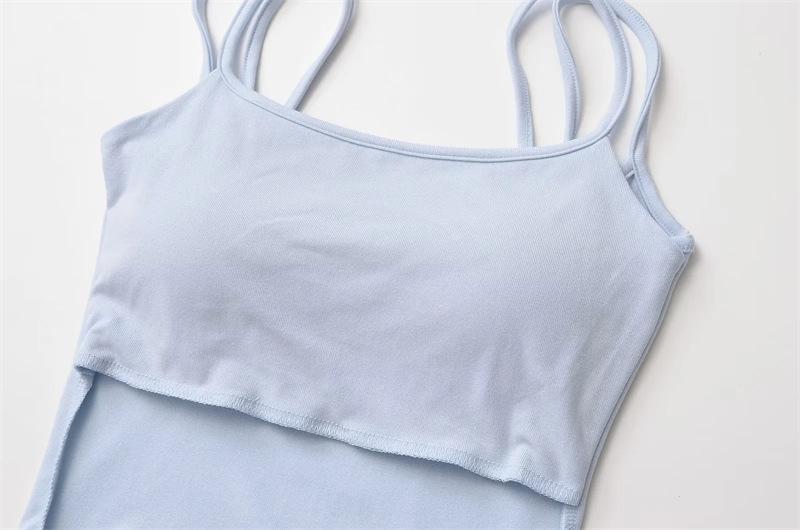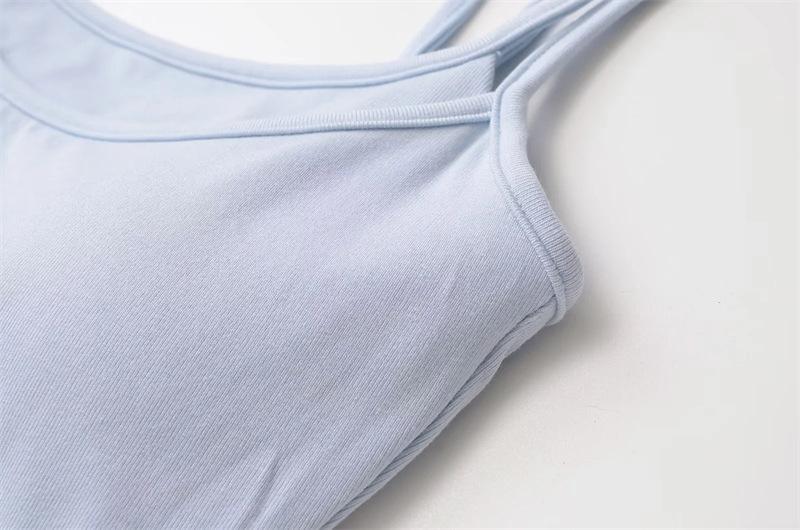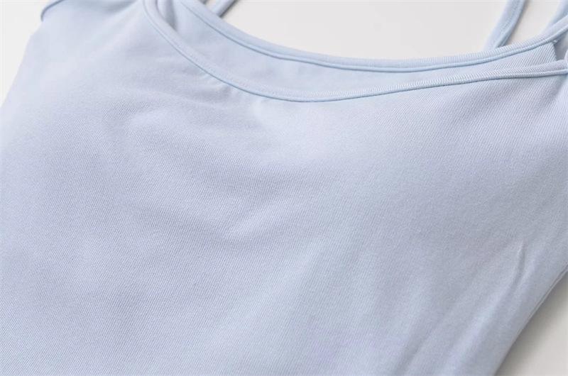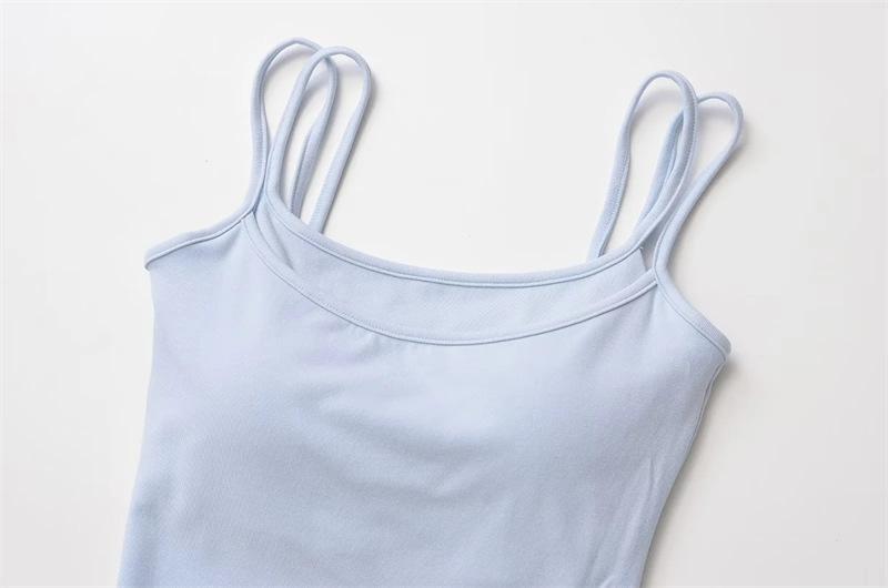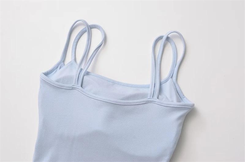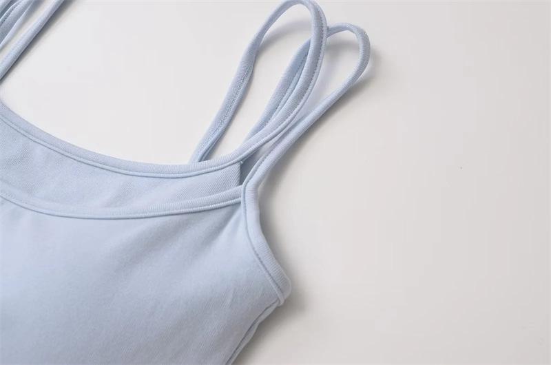 Camisola de dos piezas con almohadillas para el pecho, estilo europeo y americano, con diseño de mujer, tirantes dobles, corte entallado, prenda exterior básica, estilo sensual.