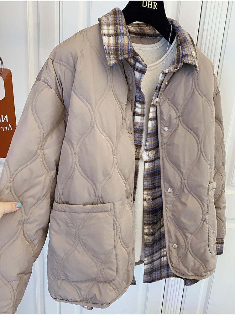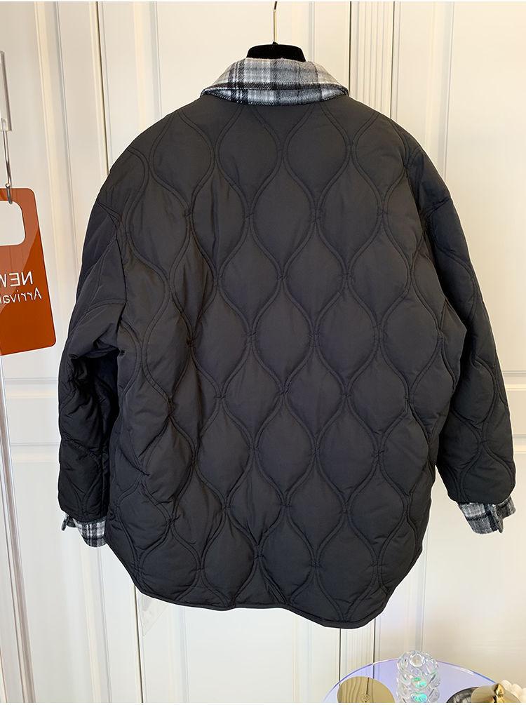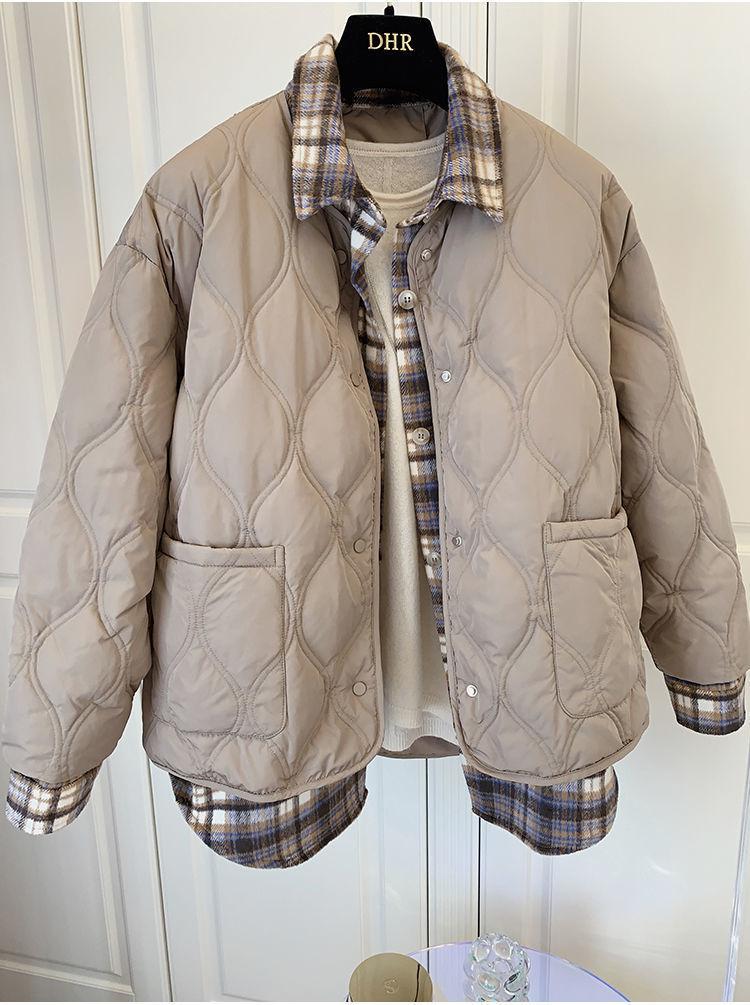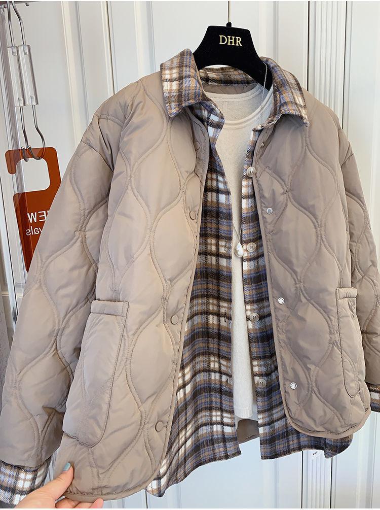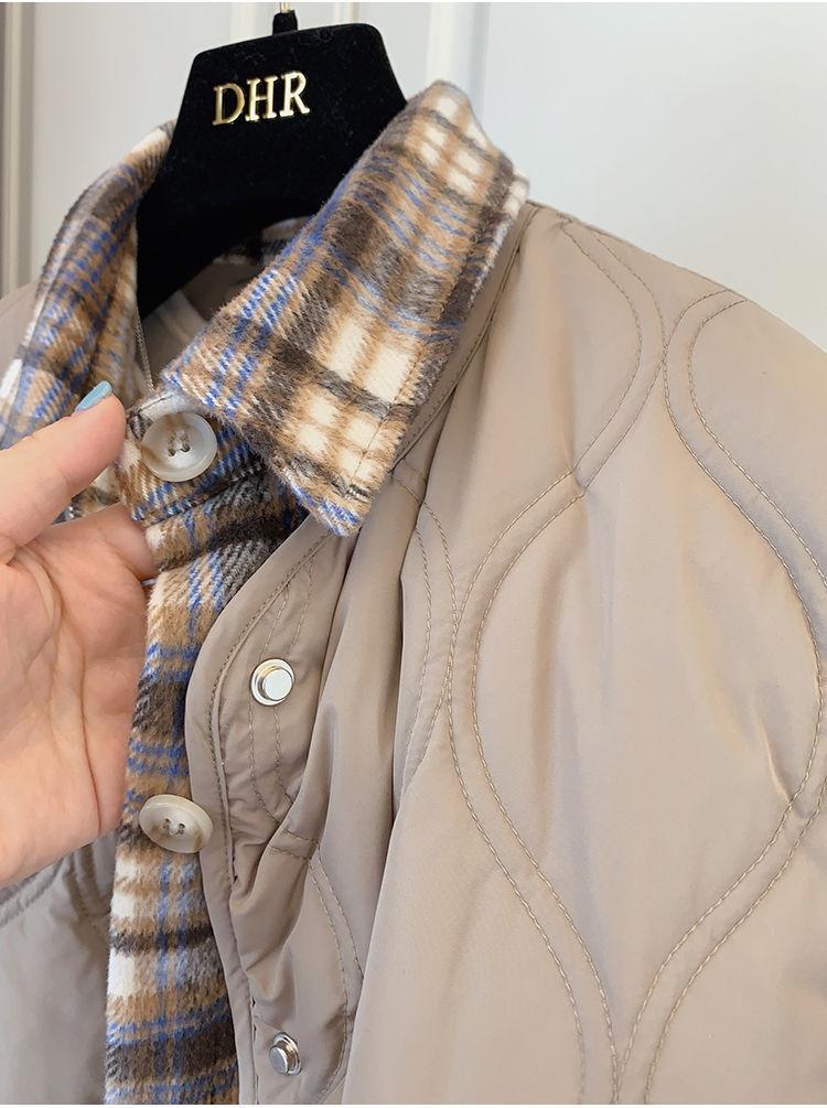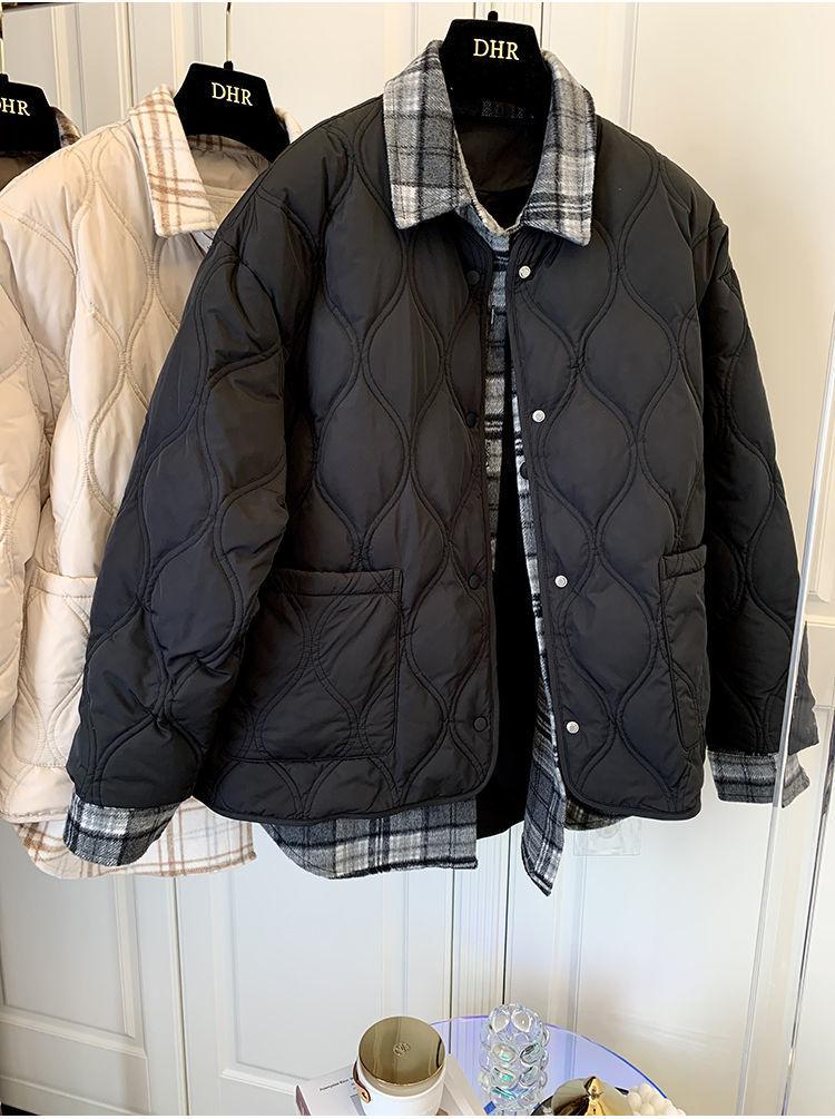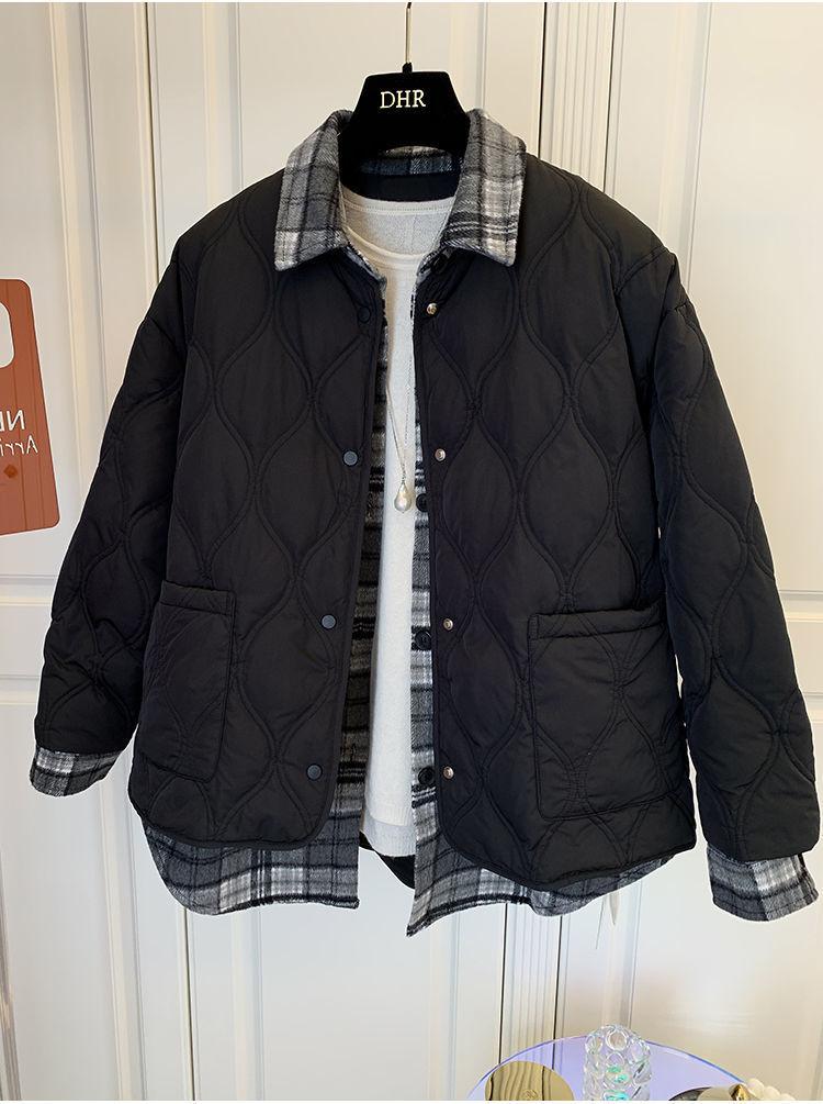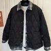Abrigo de algodón de otoño e invierno nuevo estilo Hong Kong grueso suelto estudiante costura retro camisa a cuadros falso abrigo de algodón de dos piezas mujeres