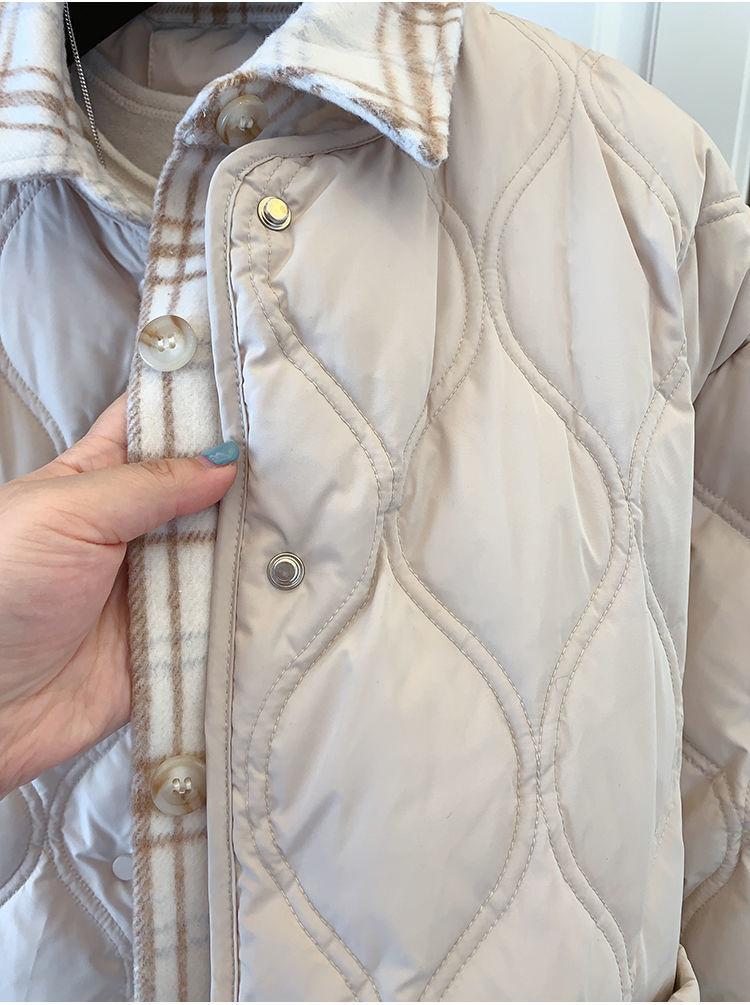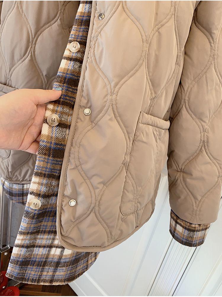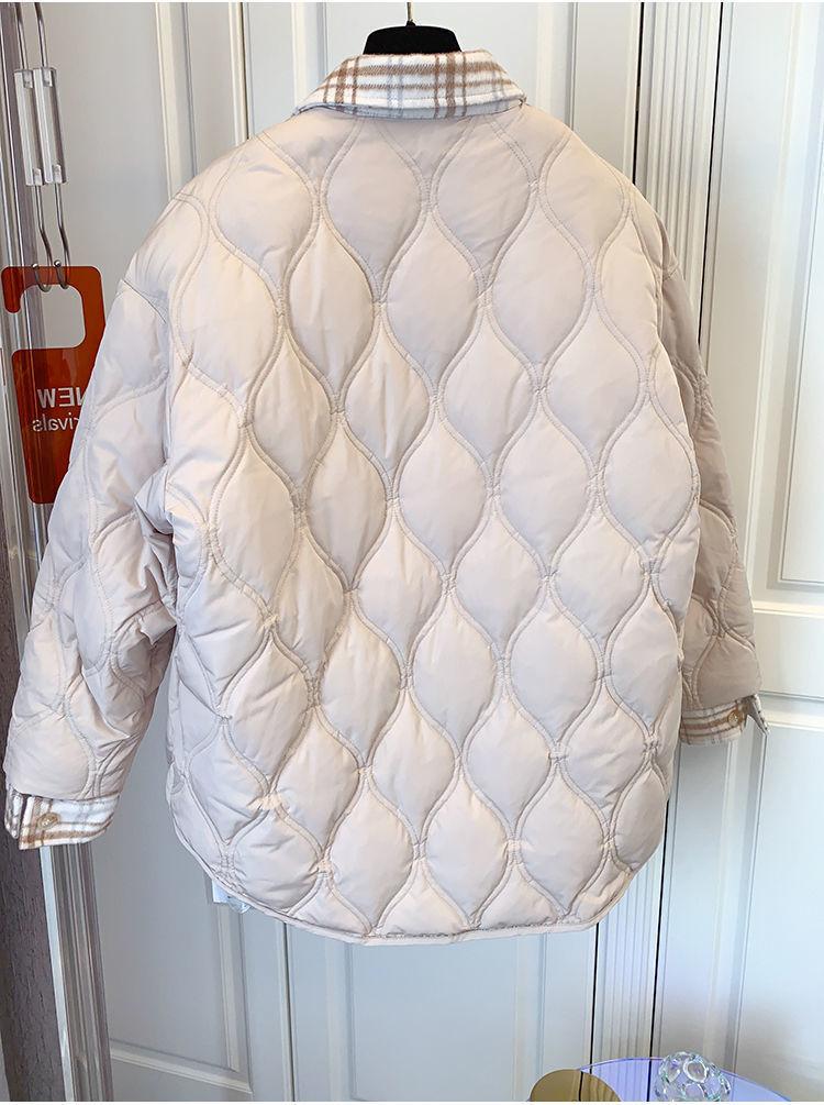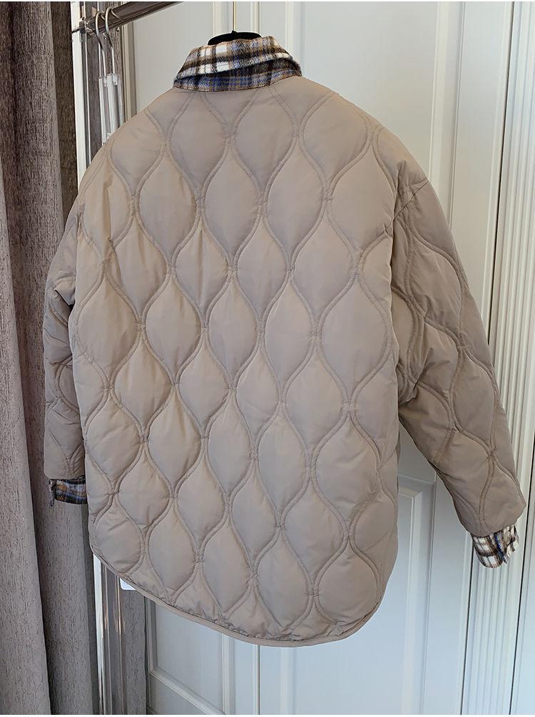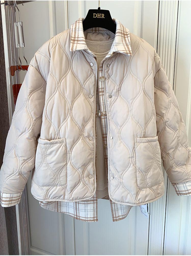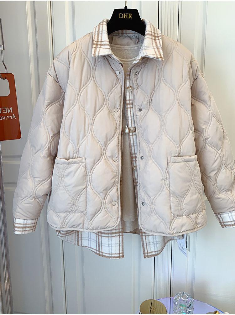 Abrigo de algodón de otoño e invierno nuevo estilo Hong Kong grueso suelto estudiante costura retro camisa a cuadros falso abrigo de algodón de dos piezas mujeres