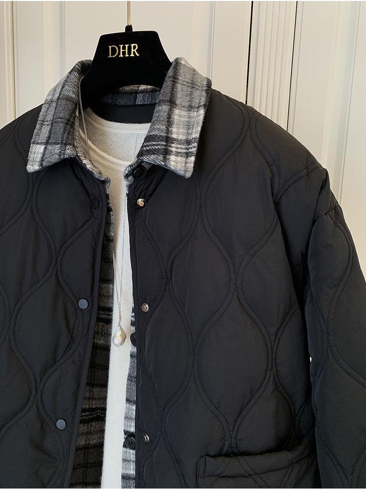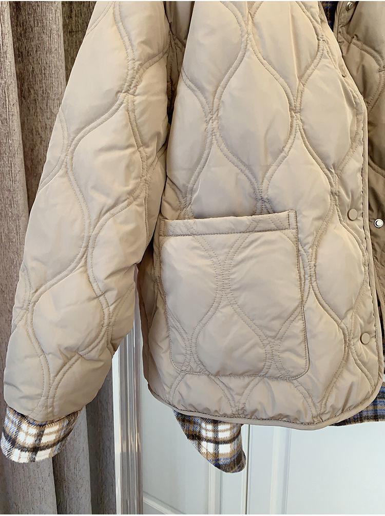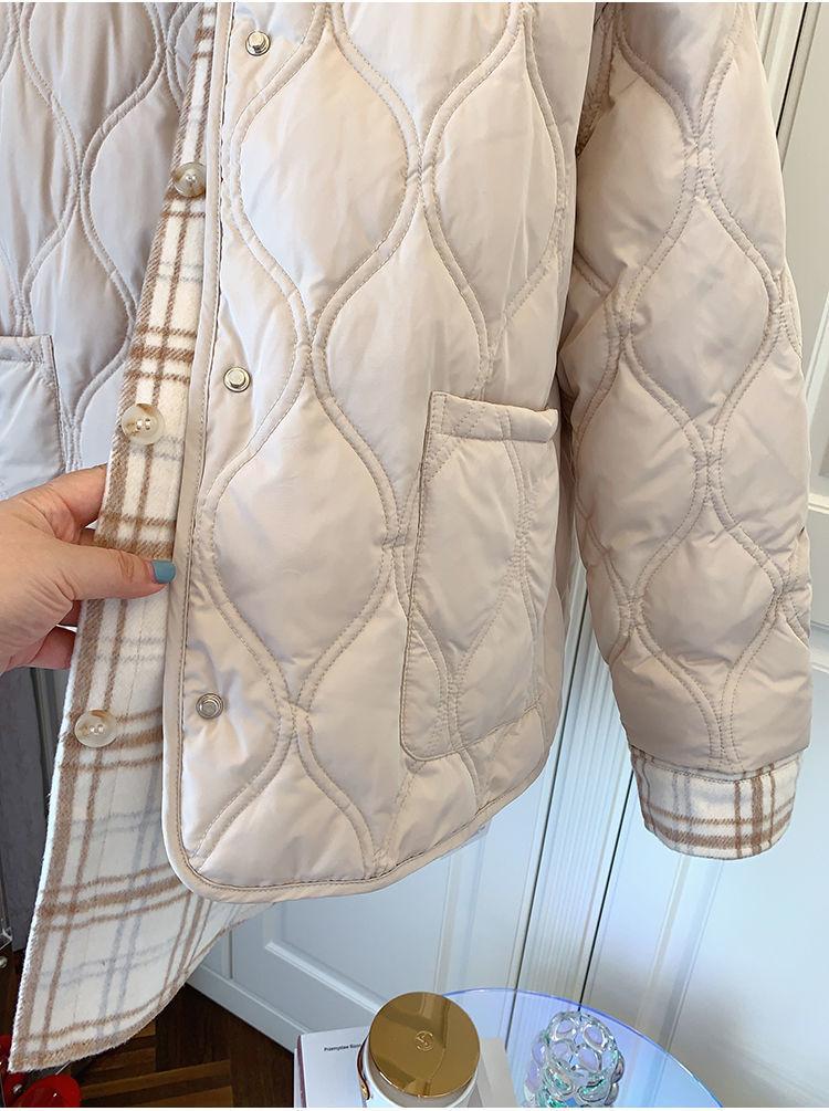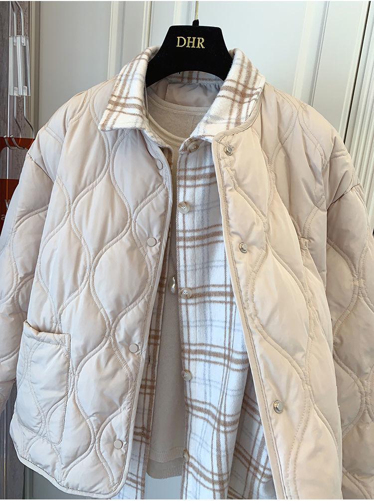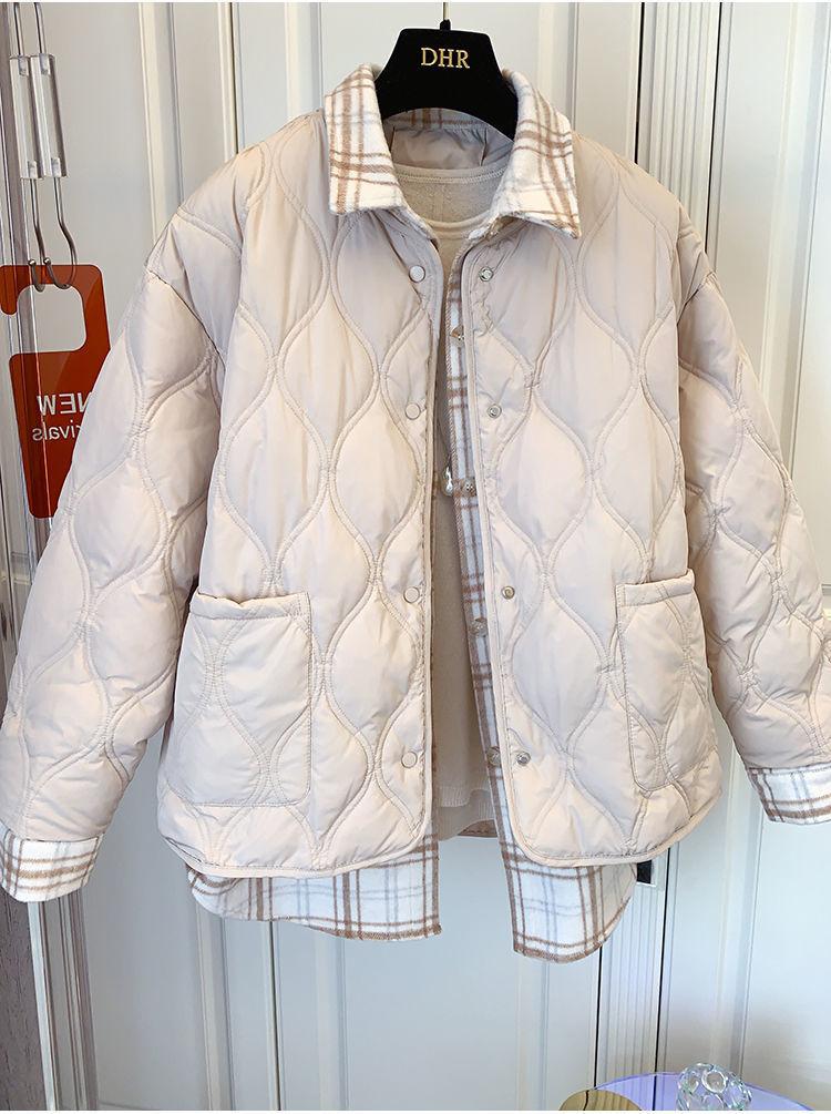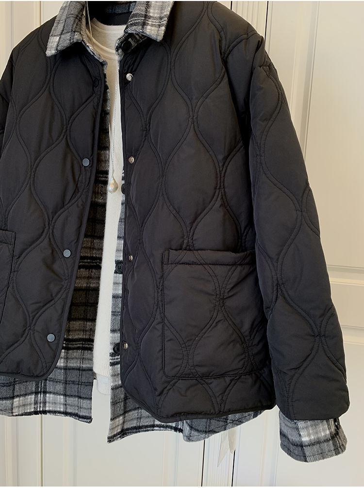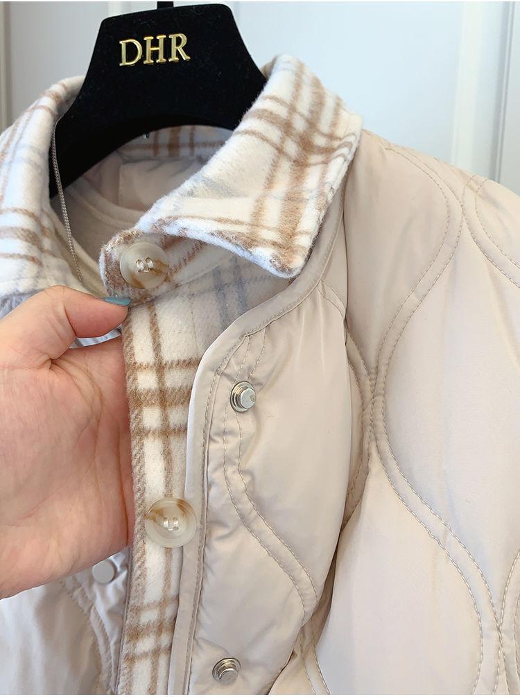 Abrigo de algodón de otoño e invierno nuevo estilo Hong Kong grueso suelto estudiante costura retro camisa a cuadros falso abrigo de algodón de dos piezas mujeres
