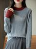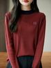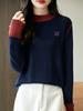 Otoño e Invierno Nuevo Suéter de Punto de Cuello Medio Alto en Color de Contraste Top de Lana Peinada Suéter de Manga Larga Bordado Estilo Occidental Camisa Base para Mujer