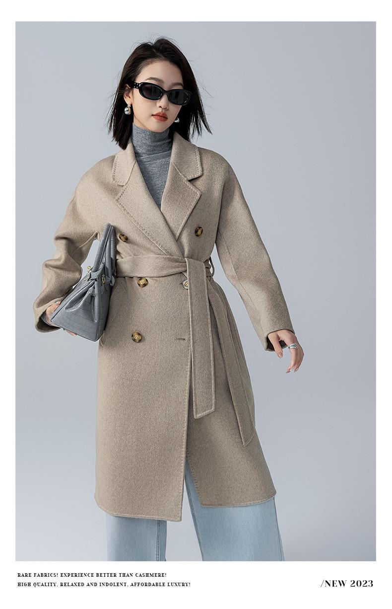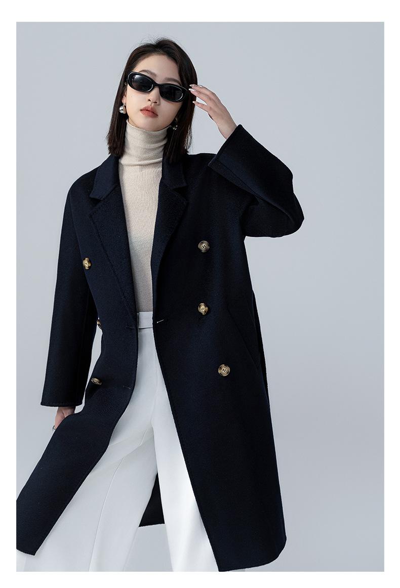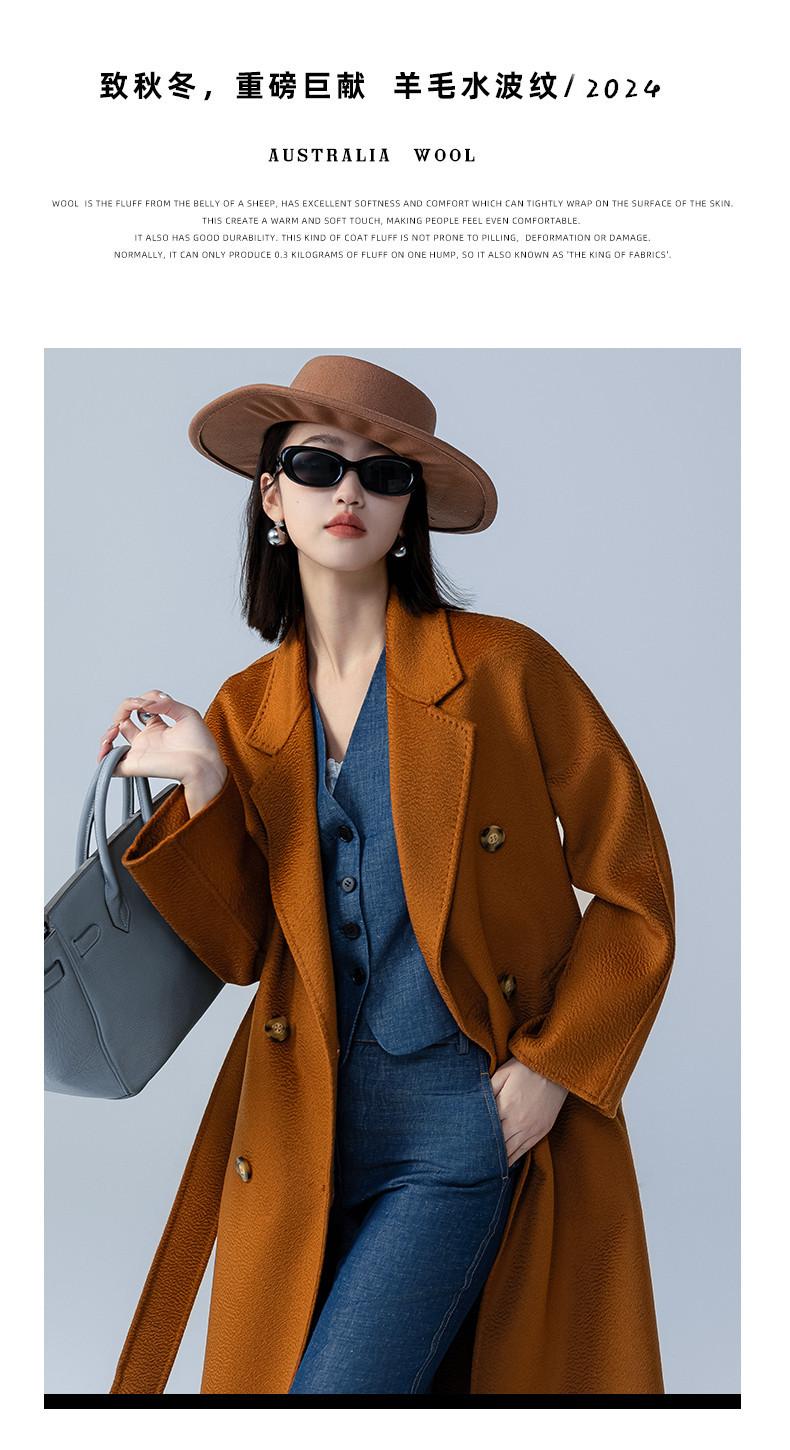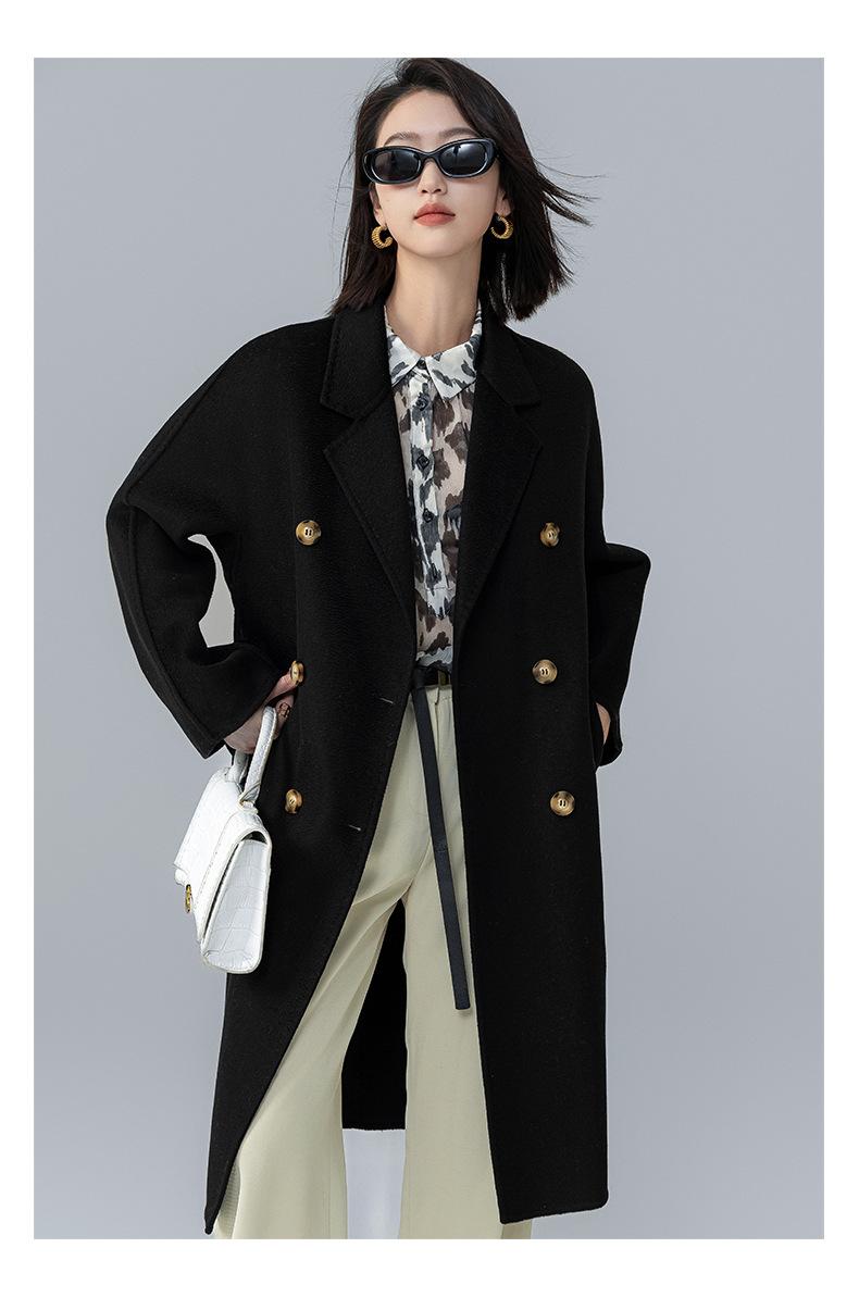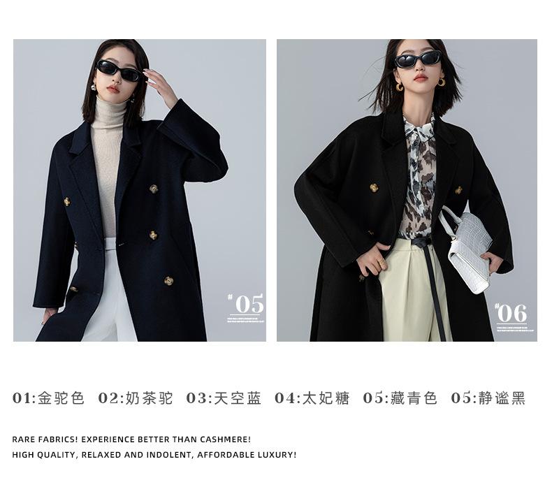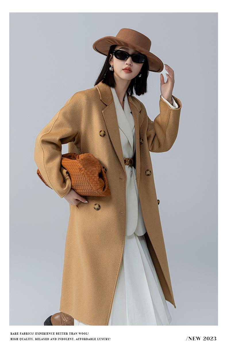 24 nuevos abrigos de lana de doble botonadura, gruesos y de longitud media, abrigos de cachemir con ondulación de agua de doble cara para mujer